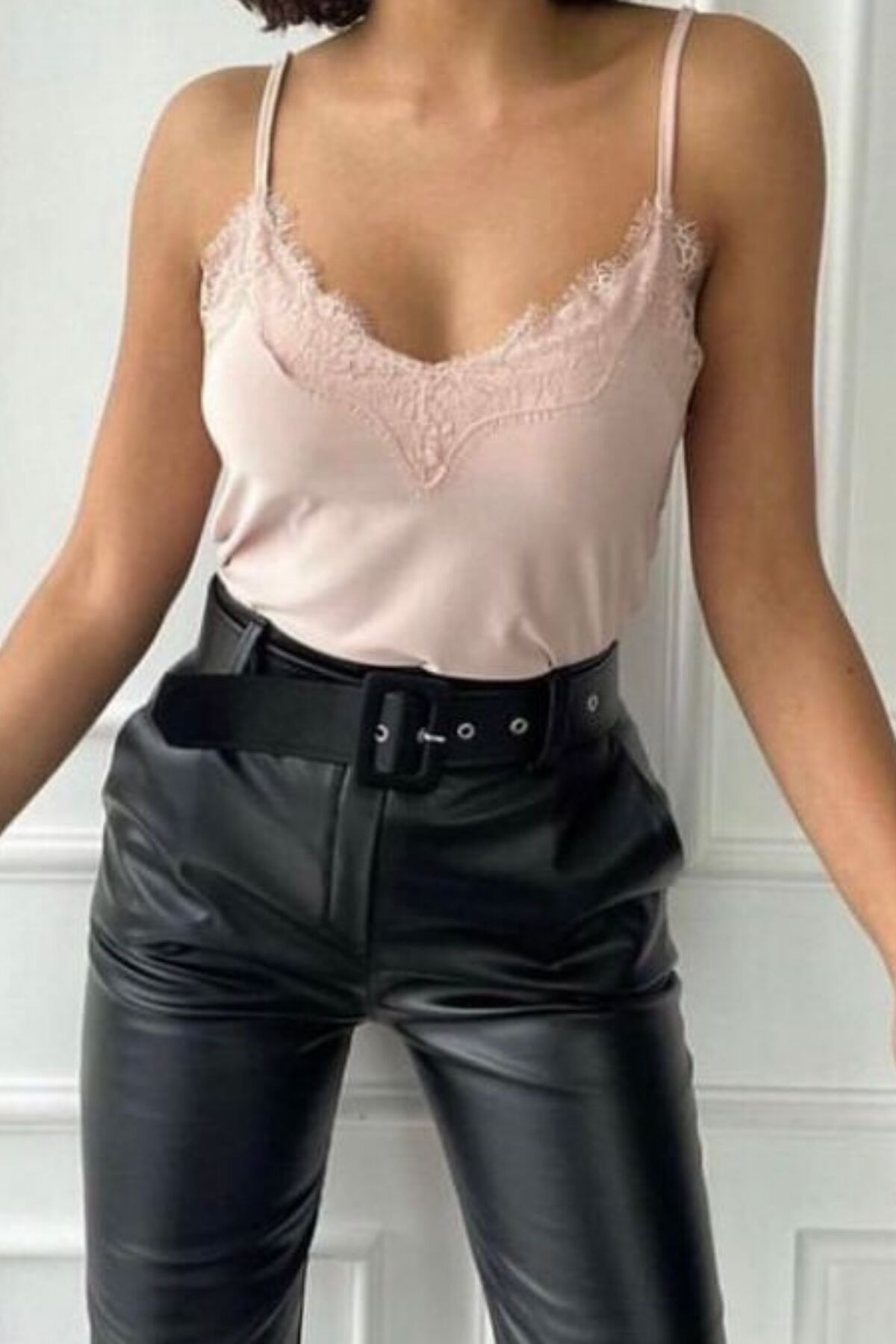 Şık ve zarif tasarımlarından biri olan dantel Yaka Askılı sandy Kadın Bluz,