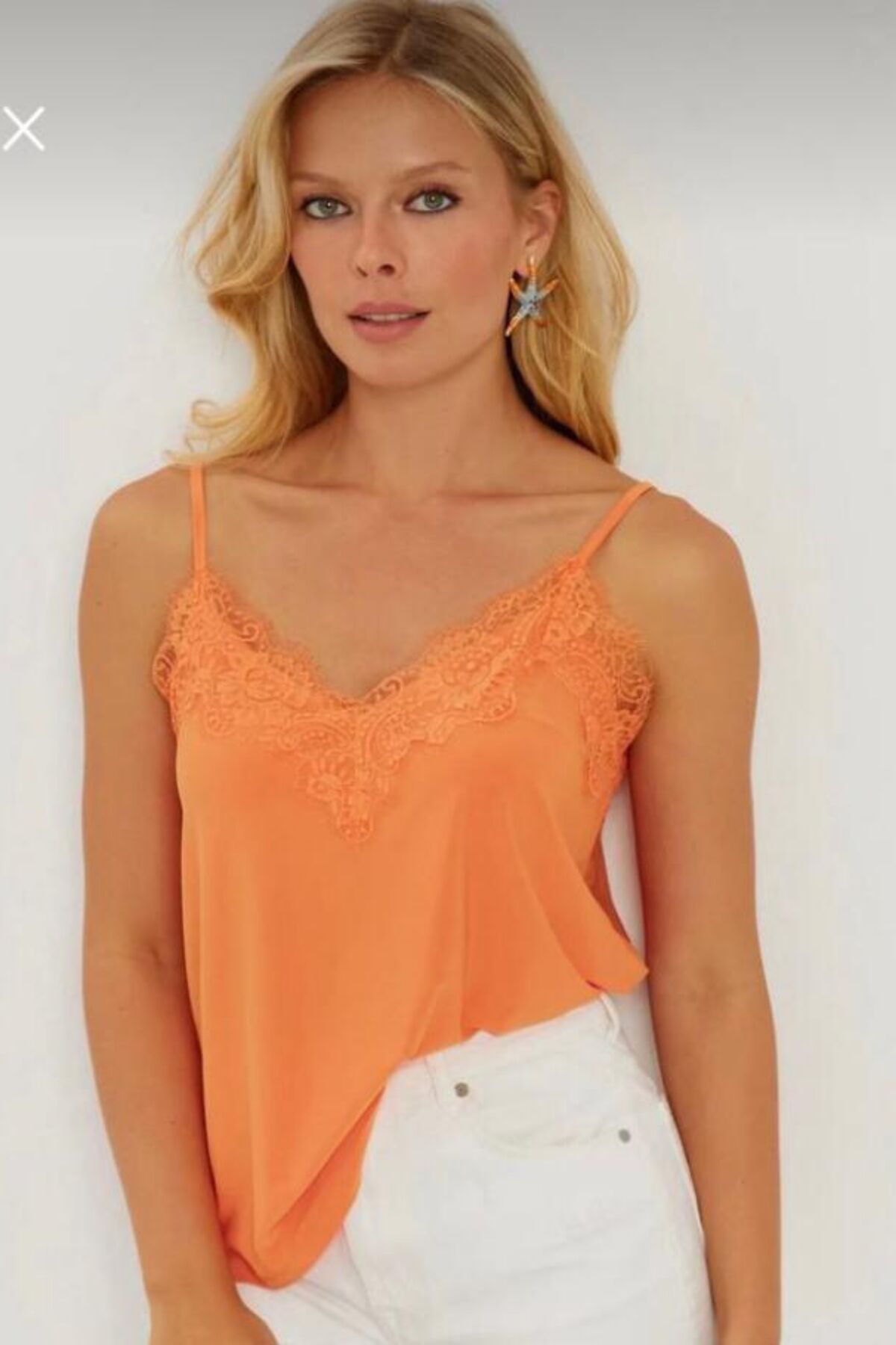 Balenbi Kadın Dantel Detaylı İp Askılı Sandy Bluz 1070 S - Turuncu