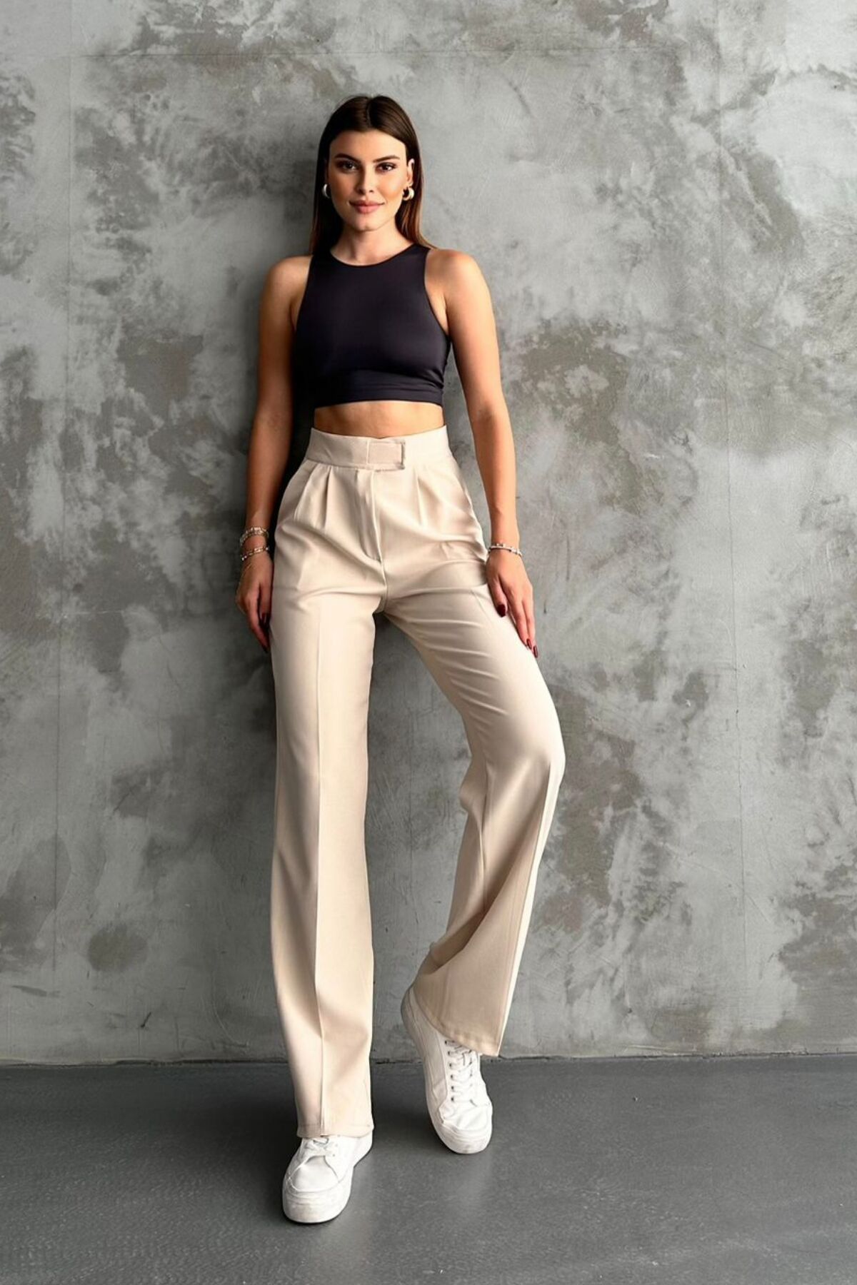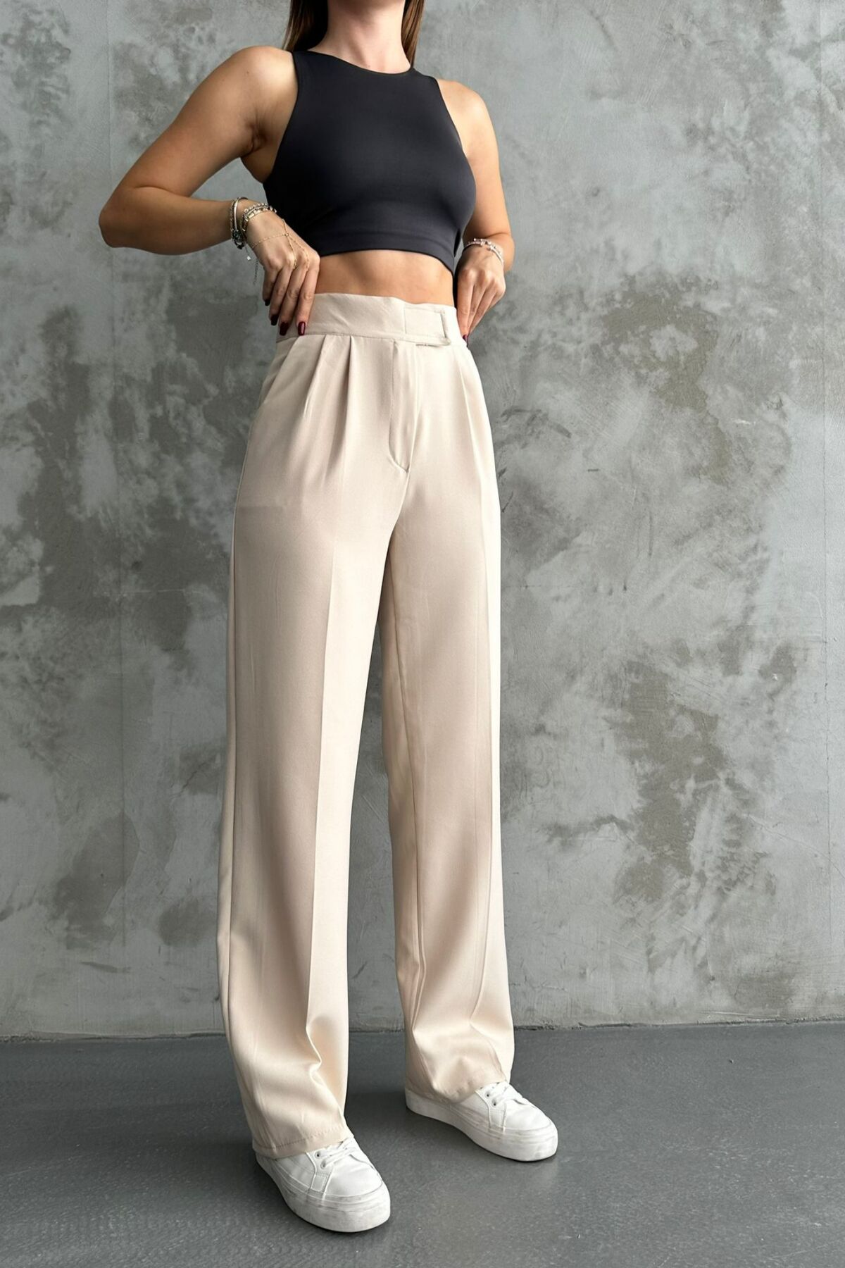 Balenbi Kadın Double Krep Likralı Cırt Kapama Palazzo Pantolon 1103 - Rahatlık ve şıklığı bir arada sunan palazzo pantolon, günlük kullanım için idealdir.; - Esnek yapısı sayesinde hareket özgürlüğü sağlar ve gün boyu konforlu bir deneyim sunar.; - Krep dokuma tipi ile hem dayanıklı hem de yumuşak bir hissiyat verir.; - Çift cep detayı pratik kullanım imkanı tanırken, astarsız tasarımı modern bir görünüm kazandırır.; - %91 polyester ve %9 elestan karışımından oluşan materyali esnekliği arttırarak vücut hatlarınıza mükemmel uyum sağlar.; - Kolay bakım avantajlarıyla 30 derecede makinede yıkama imkanına sahiptir; beyazlatıcı ve kurutucu kullanmadan tersten ütüleyebilirsiniz.; - Her mevsime uygun olan bu pantolon, tüm sezonlarda rahatlıkla tercih edilebilir.; - Sade ve düz deseniyle kolayca kombinlenebilir; farklı üst giyim parçalarıyla zahmetsizce stil oluşturmanızı sağlar.; - Bol paça kesimi sayesinde geniş bir siluet sunarken, monogram kapama detayıyla zarif bir bitiş sağlar.; - Kemersiz tasarımıyla minimalizmi ön plana çıkaran bu pantolon, her ortamda şık duruşunu korur.; - Esnek yapısıyla gün içindeki aktivitelerinizde size eşlik ederken, cool & comfort persona'sını yansıtır.; - Yetişkinler için özel olarak tasarlanmış olup, her yaş grubundaki kadınların gardrobunda yerini almayı hak eder.; - Türkiye'de üretilmiş olmasıyla kalite standartlarına bağlı kalarak piyasaya sunulmuştur.;
