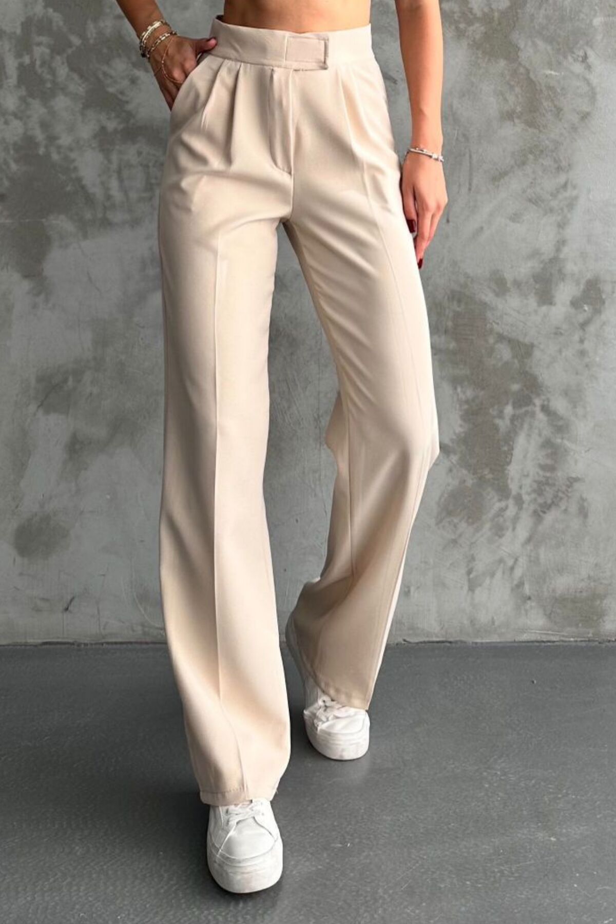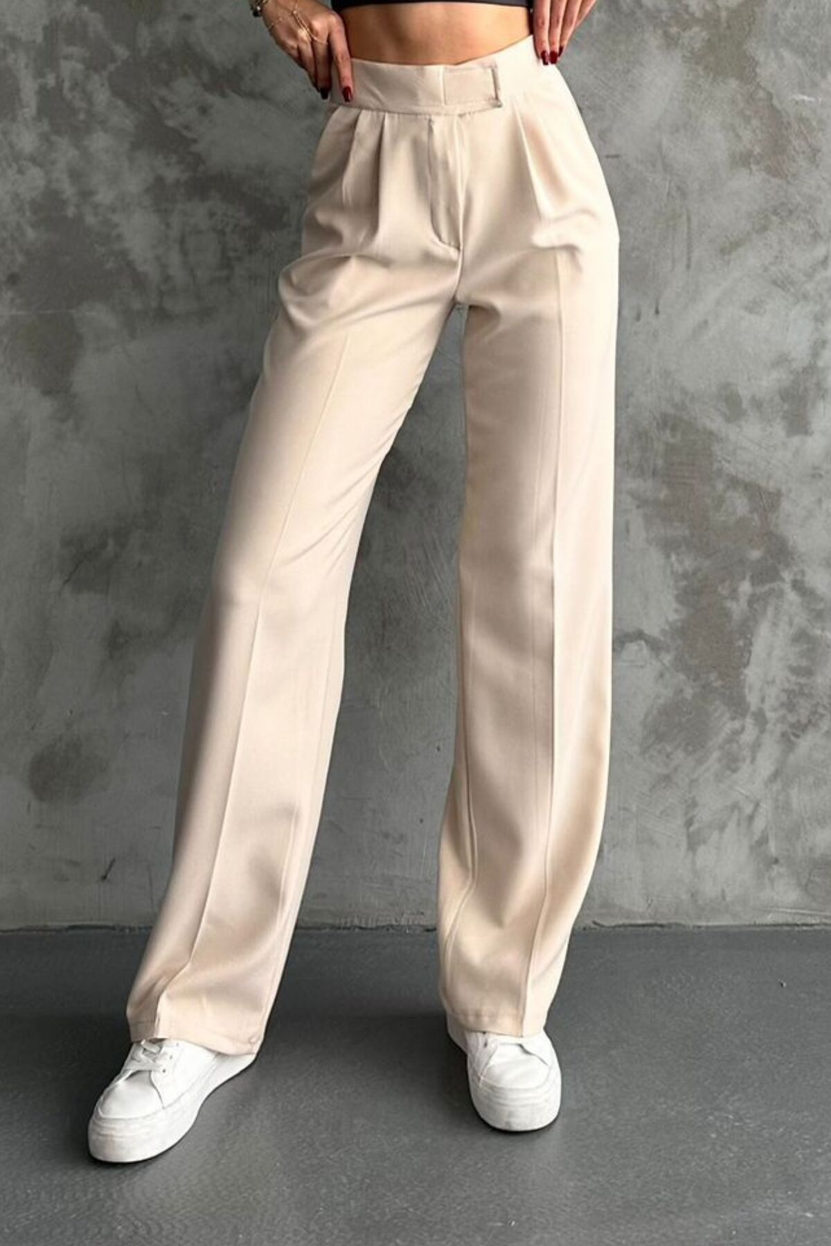 Balenbi Kadın Double Krep Likralı Cırt Kapama Palazzo Pantolon 1103 44 - Bej