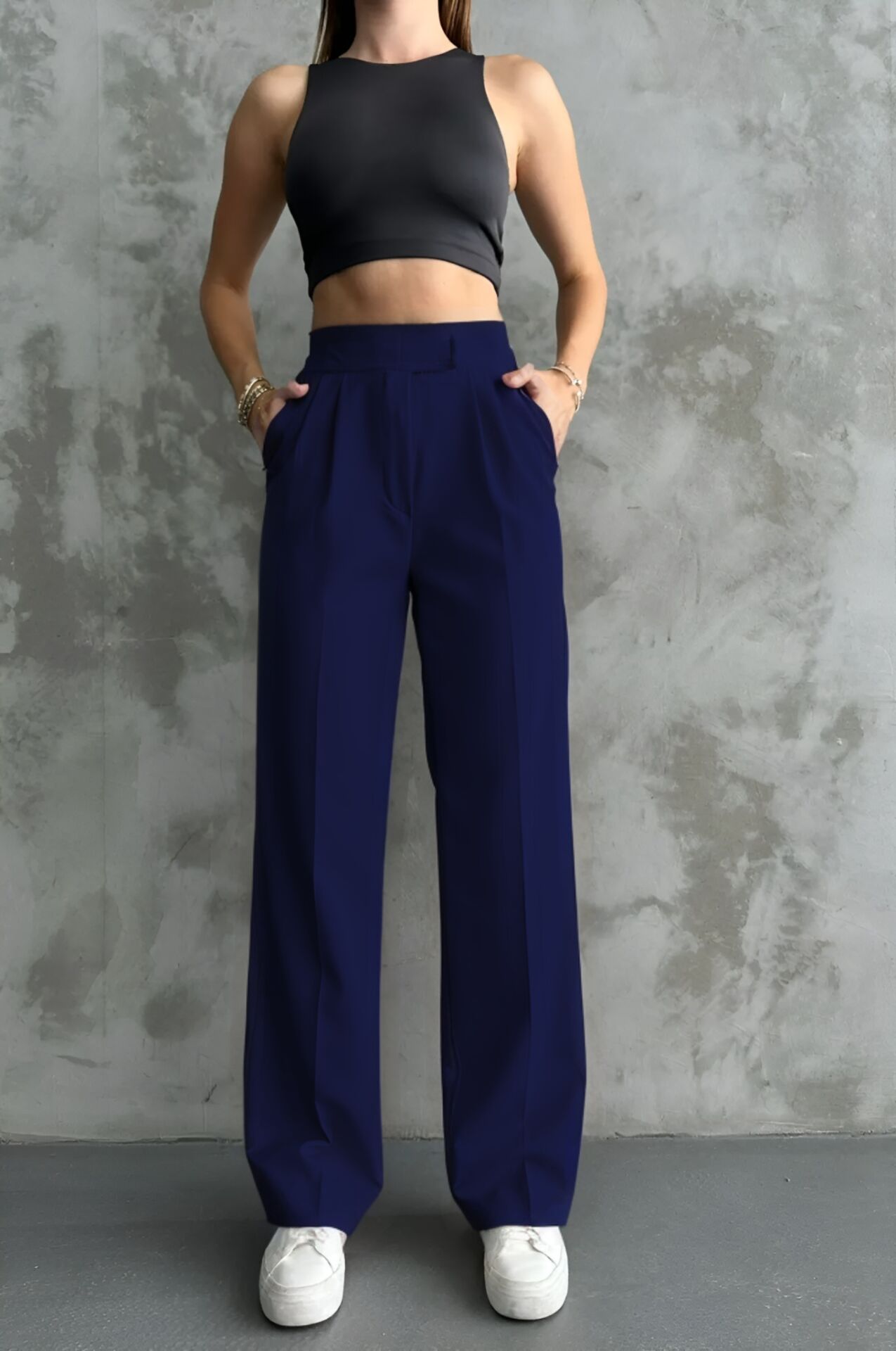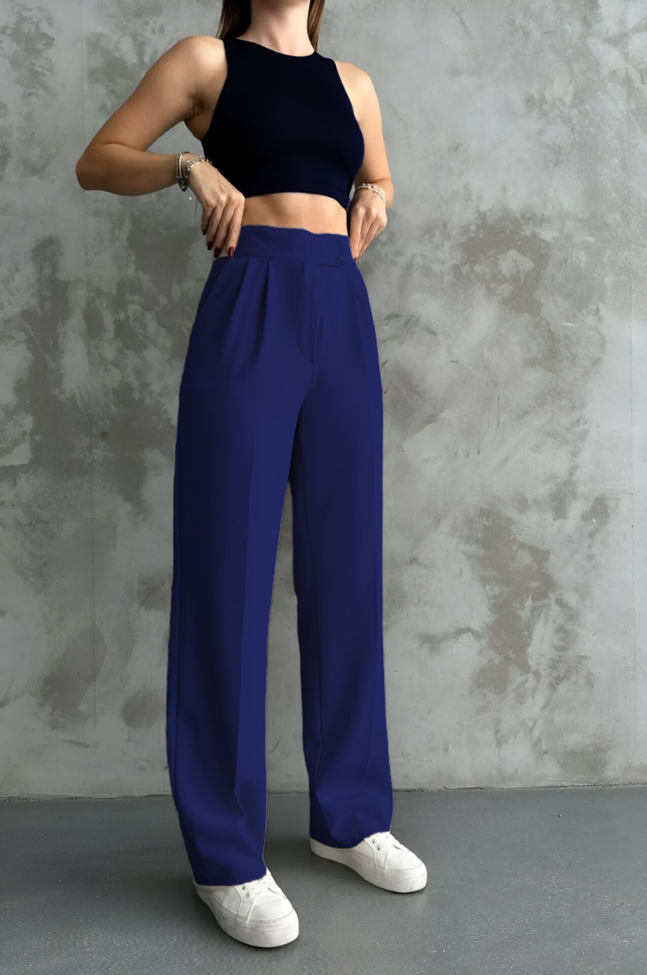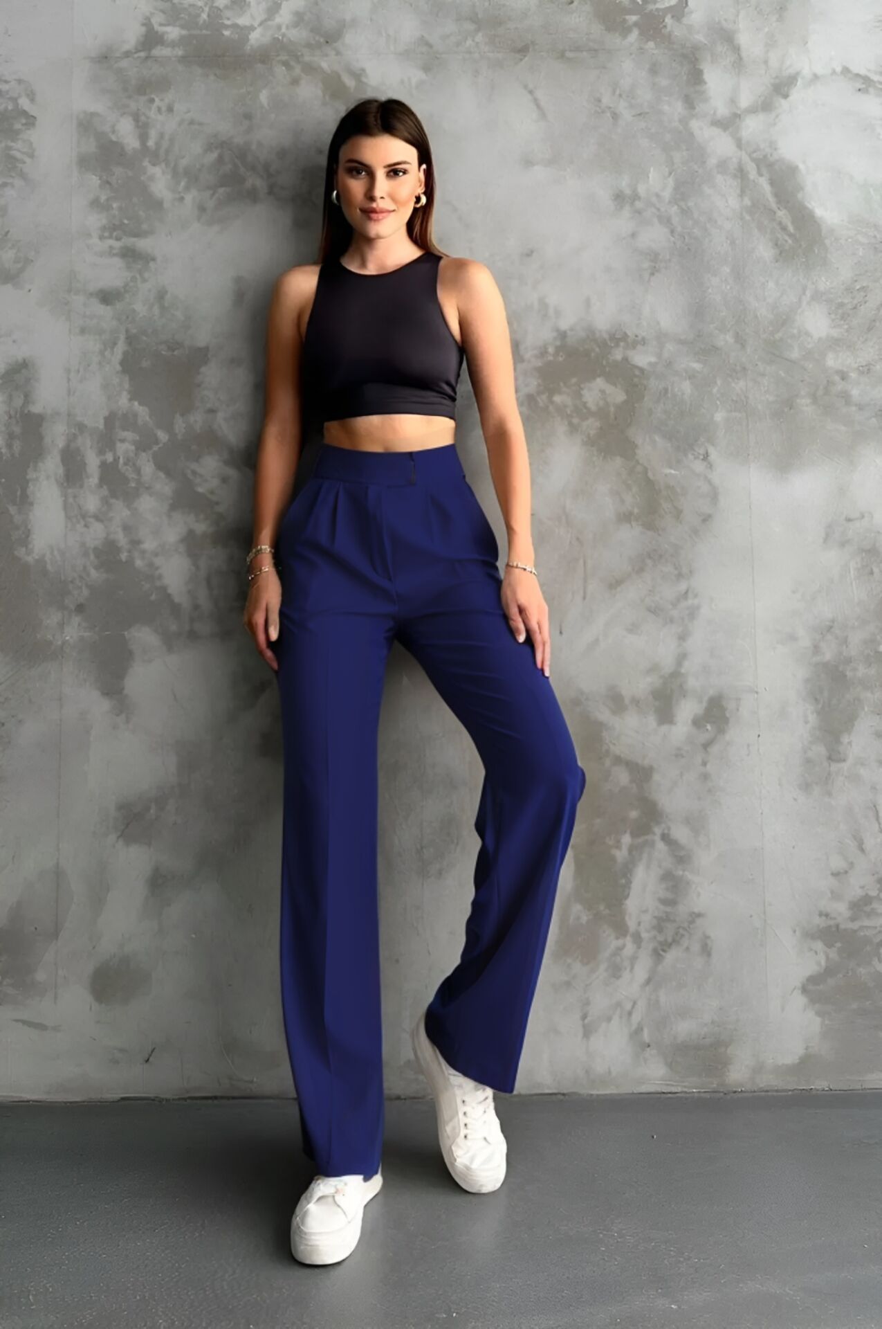 Balenbi Kadın Double Krep Likralı Cırt Kapama Palazzo Pantolon 1103 44 - Lacivert