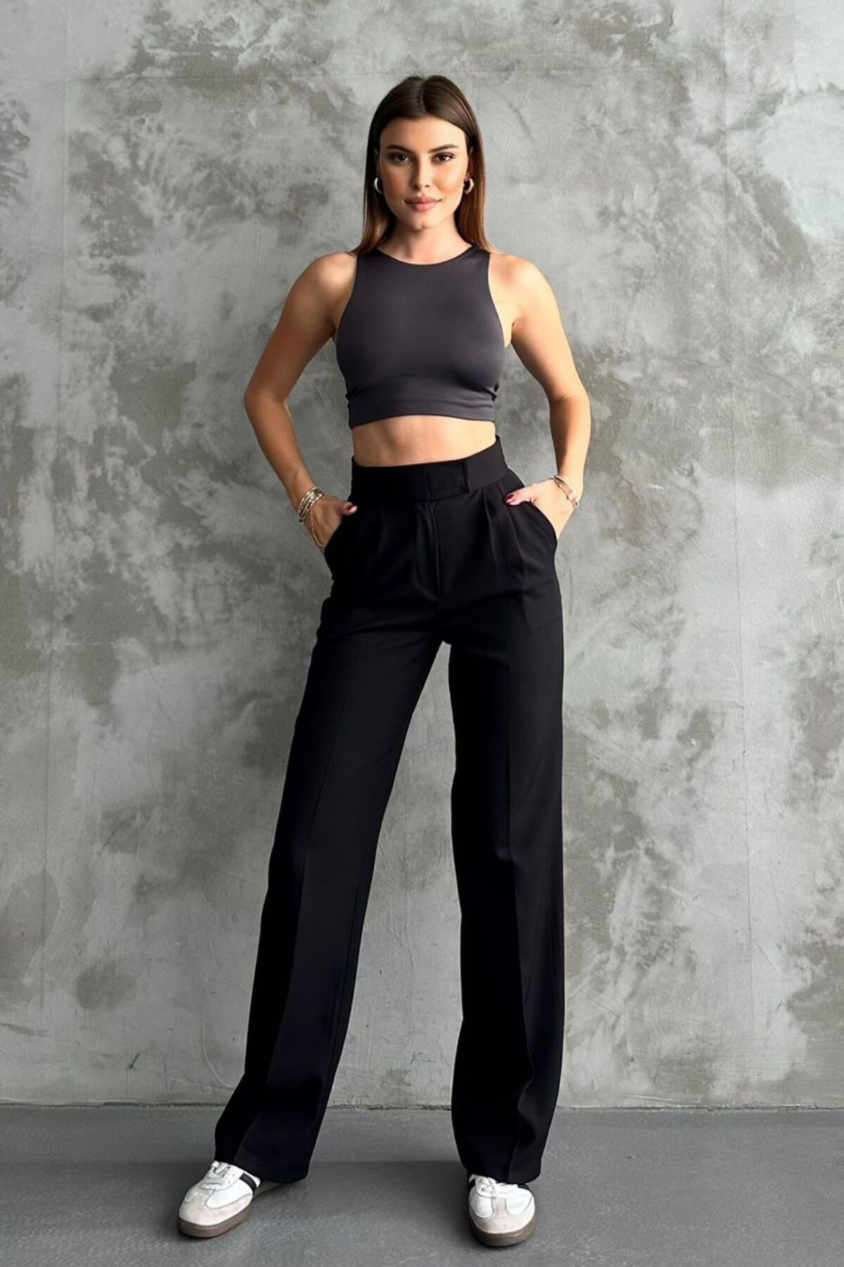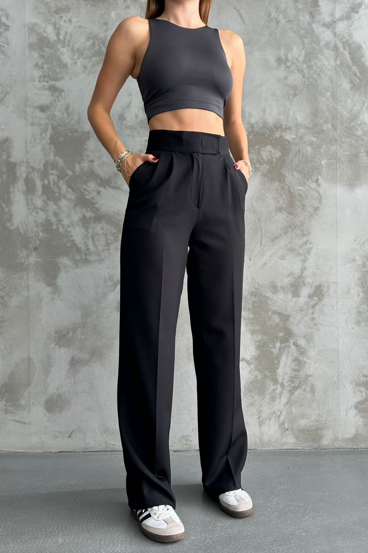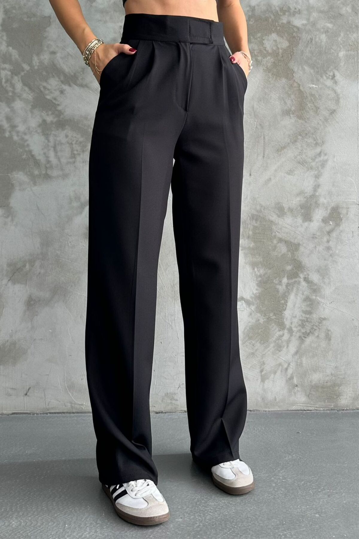 Balenbi Kadın Double Krep Likralı Cırt Kapama Palazzo Pantolon 1103 - Rahatlık ve şıklığı bir arada sunan palazzo pantolon, günlük kullanım için idealdir.; - Esnek yapısı sayesinde hareket özgürlüğü sağlar ve gün boyu konforlu bir deneyim sunar.; - Krep dokuma tipi ile hem dayanıklı hem de yumuşak bir hissiyat verir.; - Çift cep detayı pratik kullanım imkanı tanırken, astarsız tasarımı modern bir görünüm kazandırır.; - %91 polyester ve %9 elestan karışımından oluşan materyali esnekliği arttırarak vücut hatlarınıza mükemmel uyum sağlar.; - Kolay bakım avantajlarıyla 30 derecede makinede yıkama imkanına sahiptir; beyazlatıcı ve kurutucu kullanmadan tersten ütüleyebilirsiniz.; - Her mevsime uygun olan bu pantolon, tüm sezonlarda rahatlıkla tercih edilebilir.; - Sade ve düz deseniyle kolayca kombinlenebilir; farklı üst giyim parçalarıyla zahmetsizce stil oluşturmanızı sağlar.; - Bol paça kesimi sayesinde geniş bir siluet sunarken, monogram kapama detayıyla zarif bir bitiş sağlar.; - Kemersiz tasarımıyla minimalizmi ön plana çıkaran bu pantolon, her ortamda şık duruşunu korur.; - Esnek yapısıyla gün içindeki aktivitelerinizde size eşlik ederken, cool & comfort persona'sını yansıtır.; - Yetişkinler için özel olarak tasarlanmış olup, her yaş grubundaki kadınların gardrobunda yerini almayı hak eder.; - Türkiye'de üretilmiş olmasıyla kalite standartlarına bağlı kalarak piyasaya sunulmuştur.;