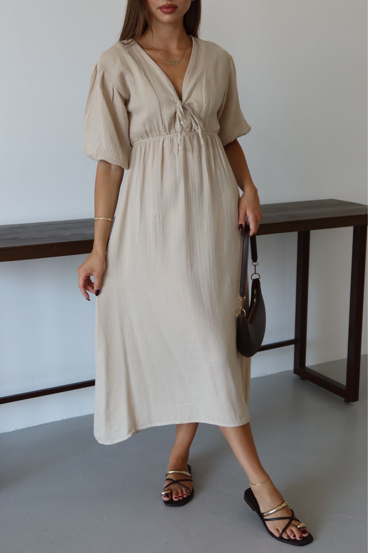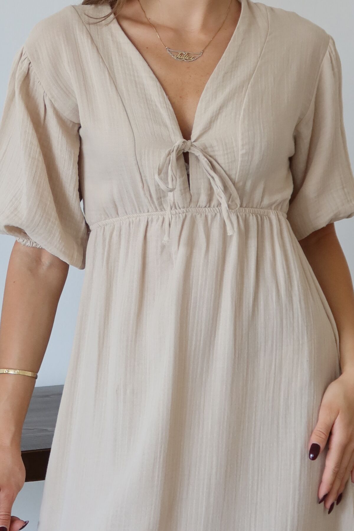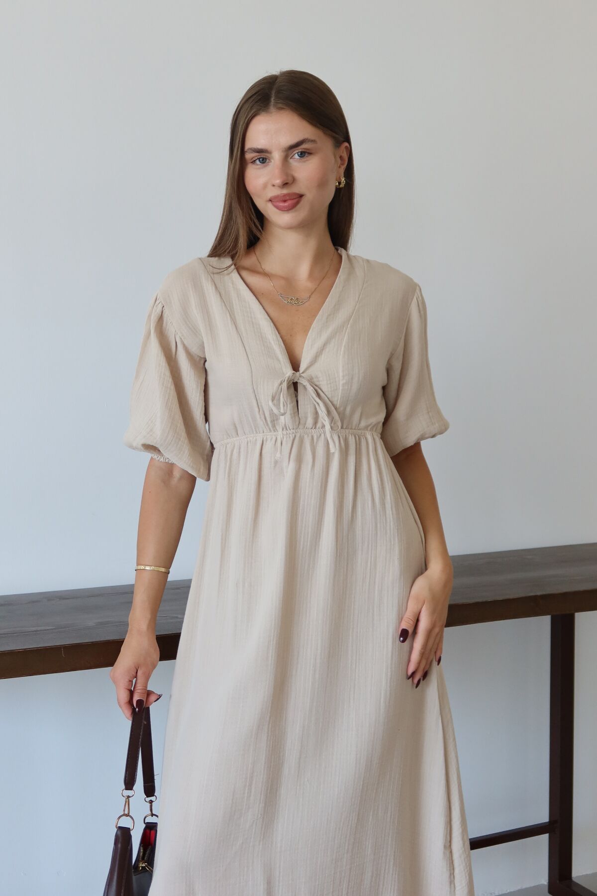 Balenbi Kadın Hafif Transparan Basic Önden Bağlamalı Müslin Elbise 1105 M - Bej