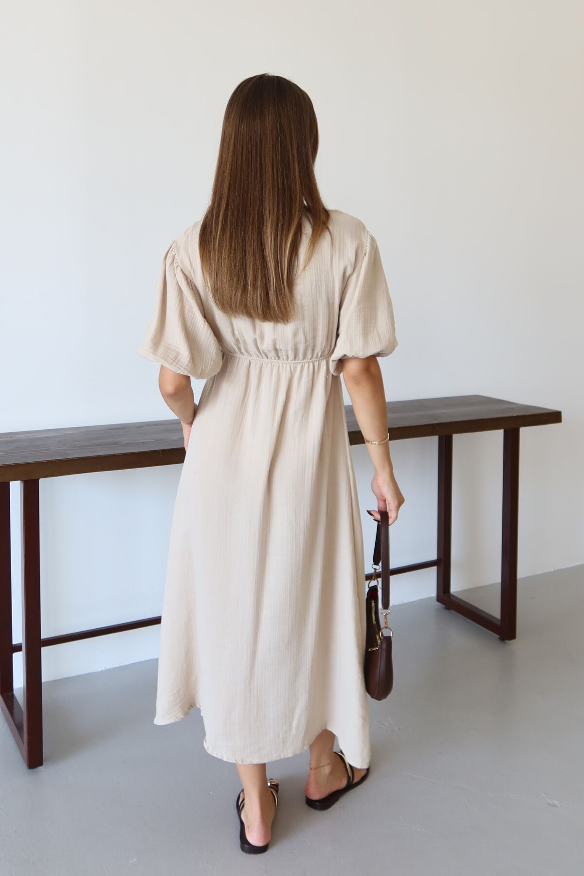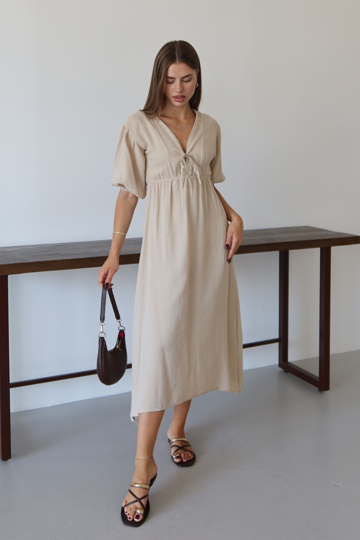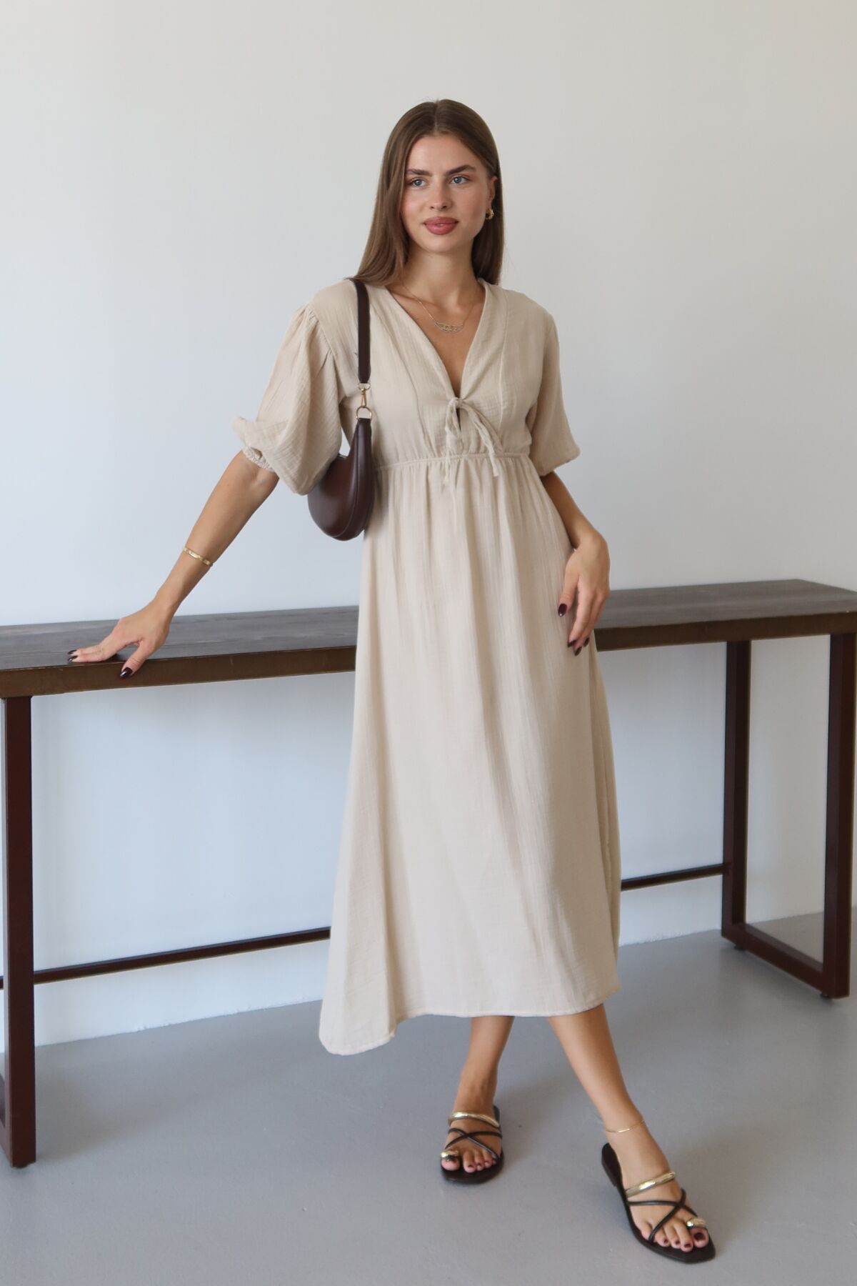 Balenbi Kadın Hafif Transparan Basic Önden Bağlamalı Müslin Elbise 1105 M - Bej