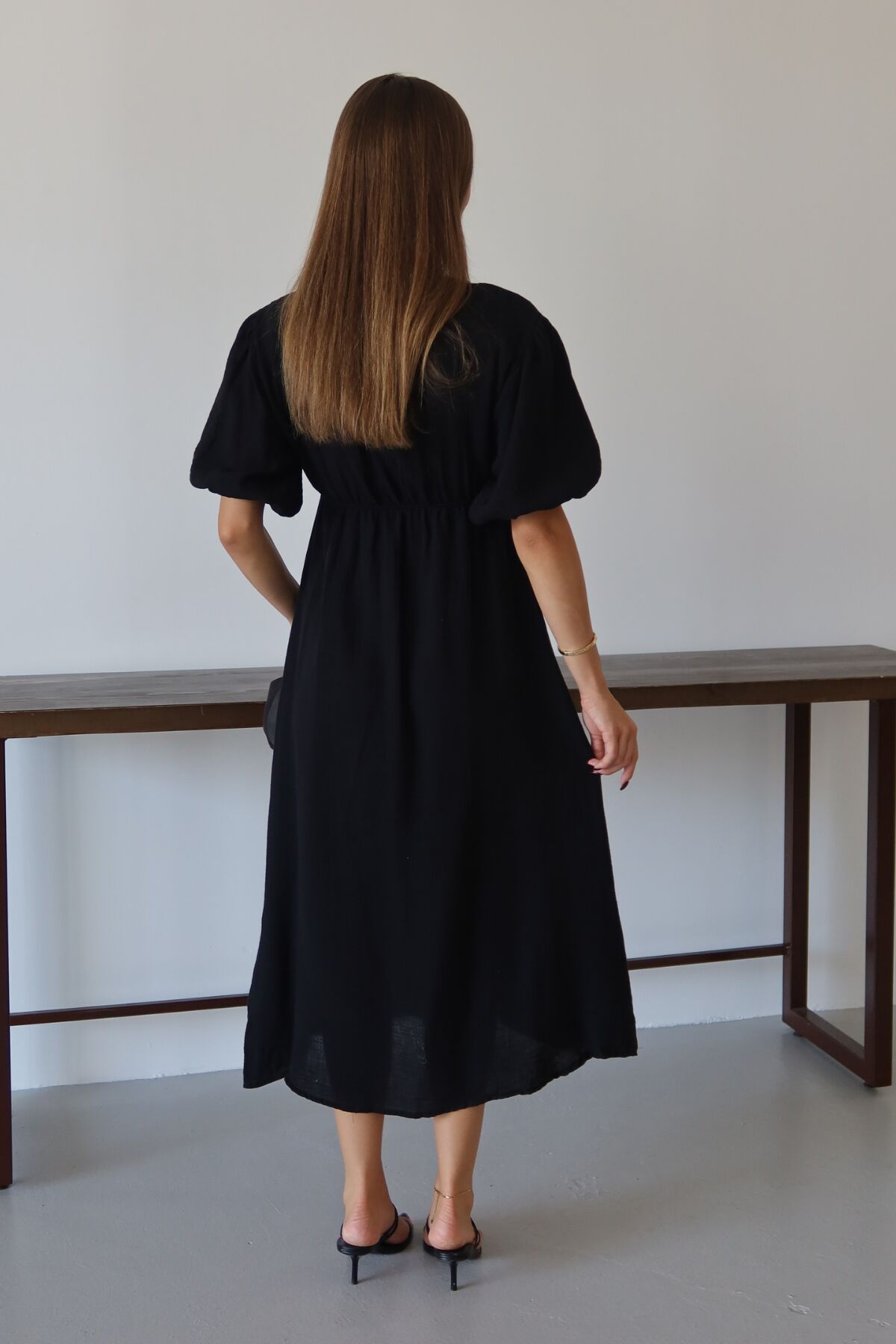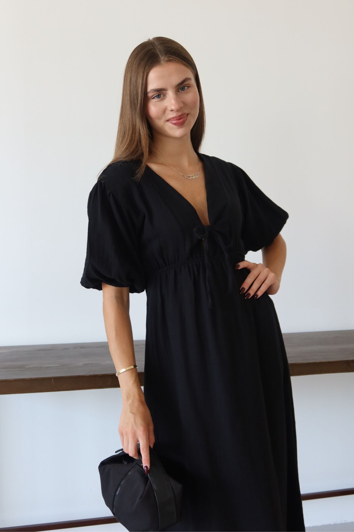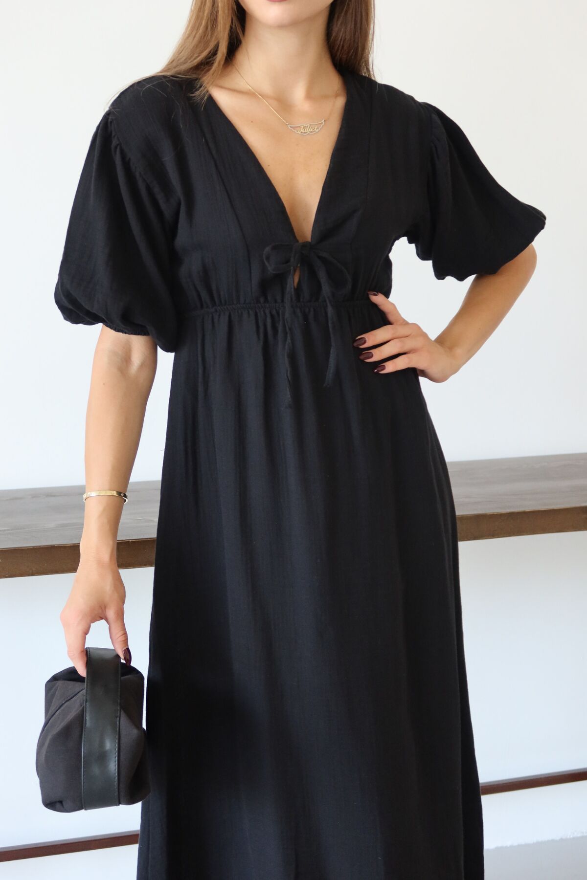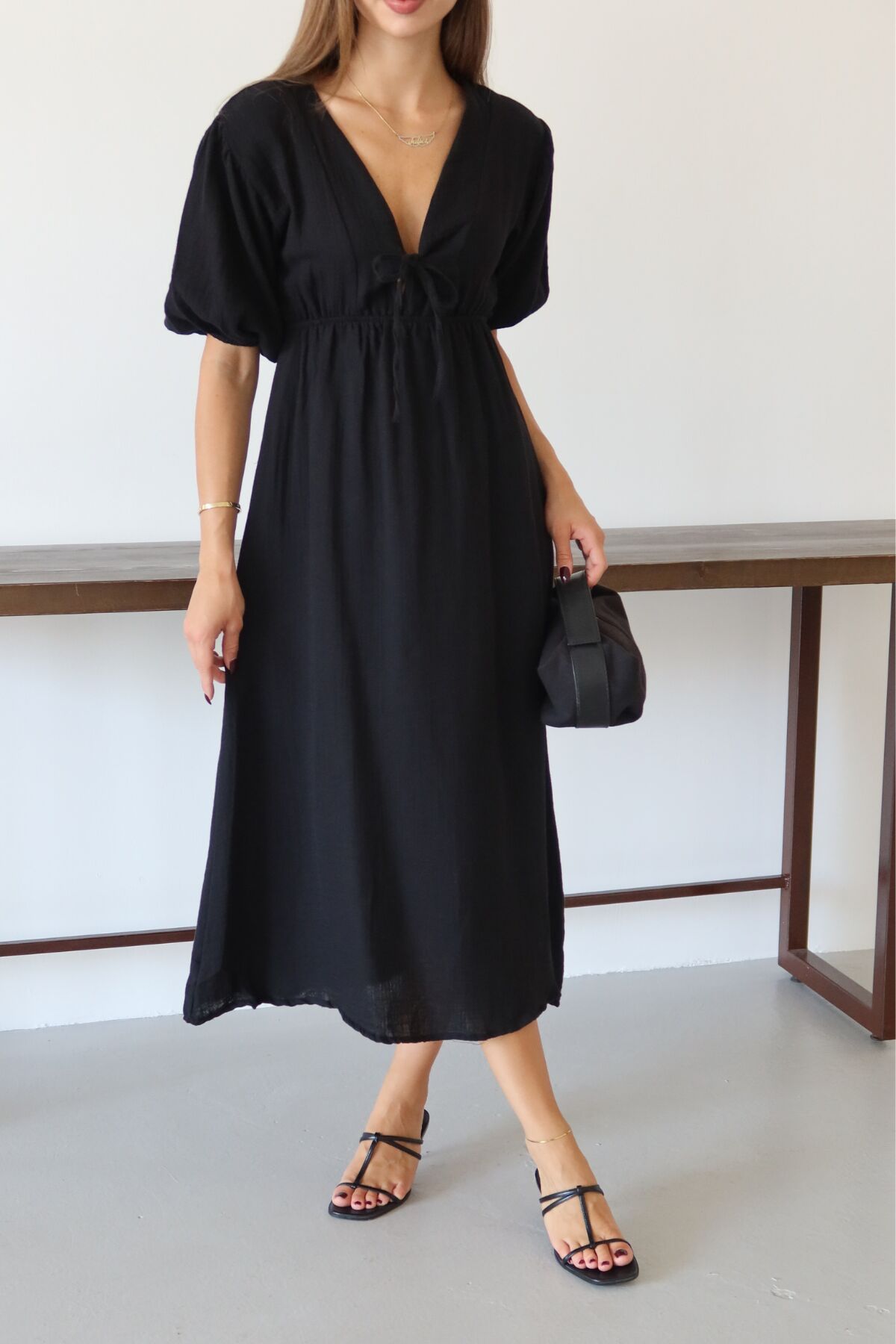 Balenbi Kadın Hafif Transparan Basic Önden Bağlamalı Müslin Elbise 1105 M - Siyah