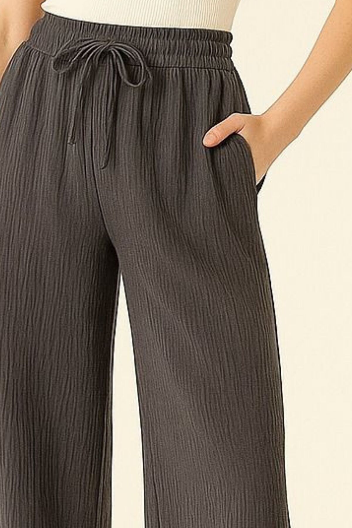 Balenbi Kadın Hafif Transparan Beli Lastikli Palazzo Müslin Pantolon 1096 42 - Antrasit