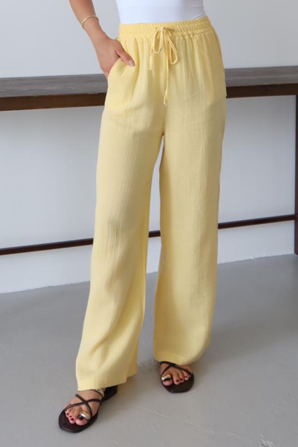 Balenbi Kadın Hafif Transparan Beli Lastikli Palazzo Müslin Pantolon 1096 42 - Sarı