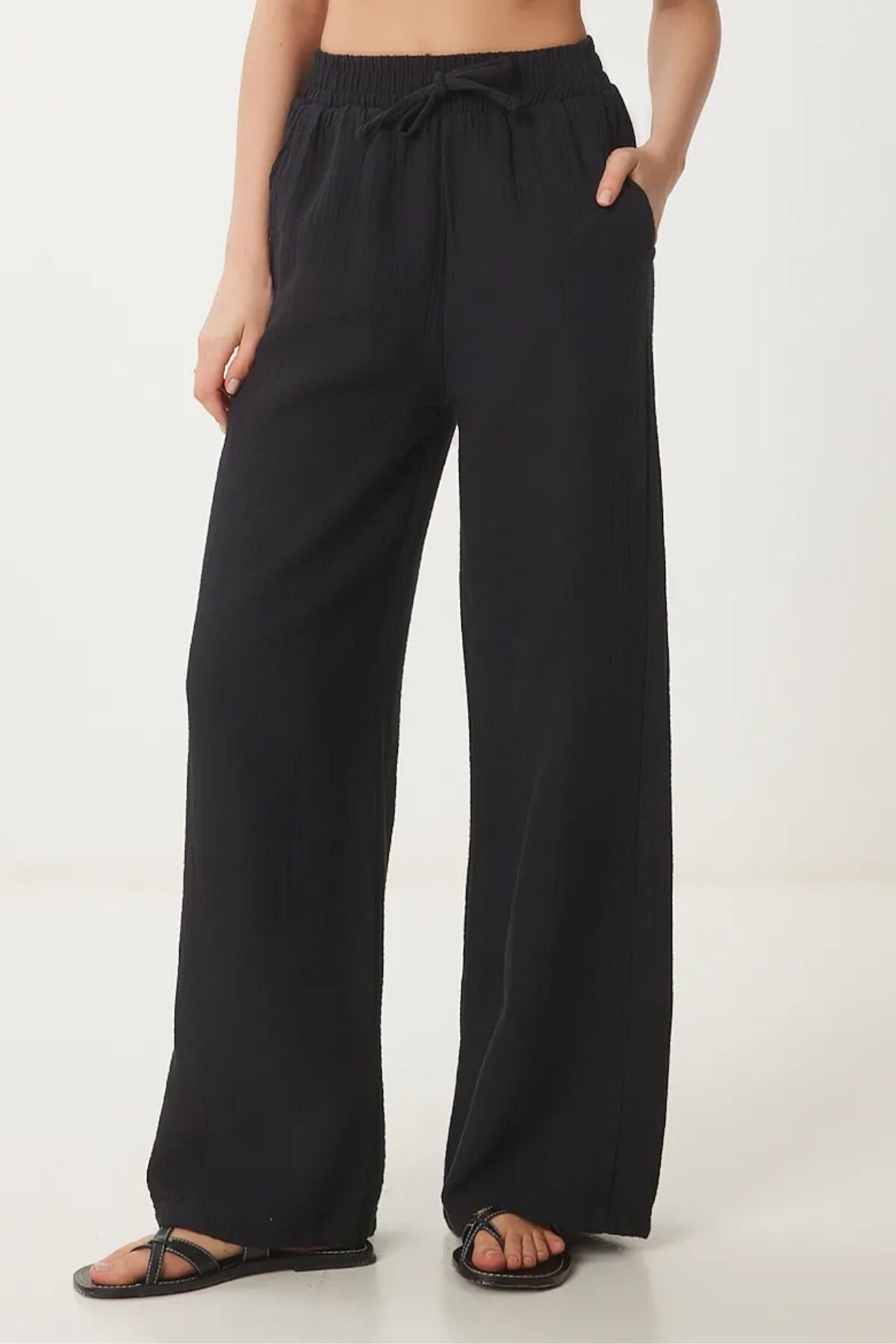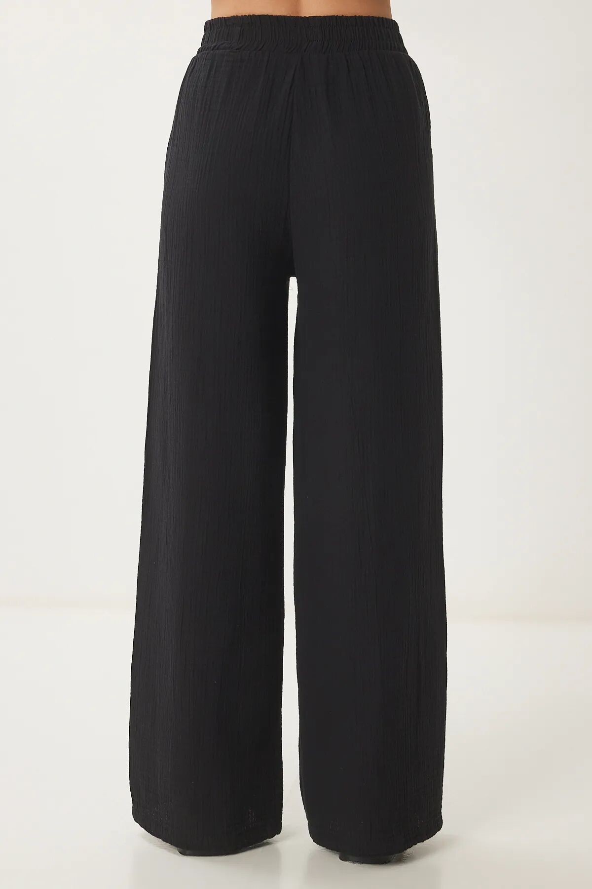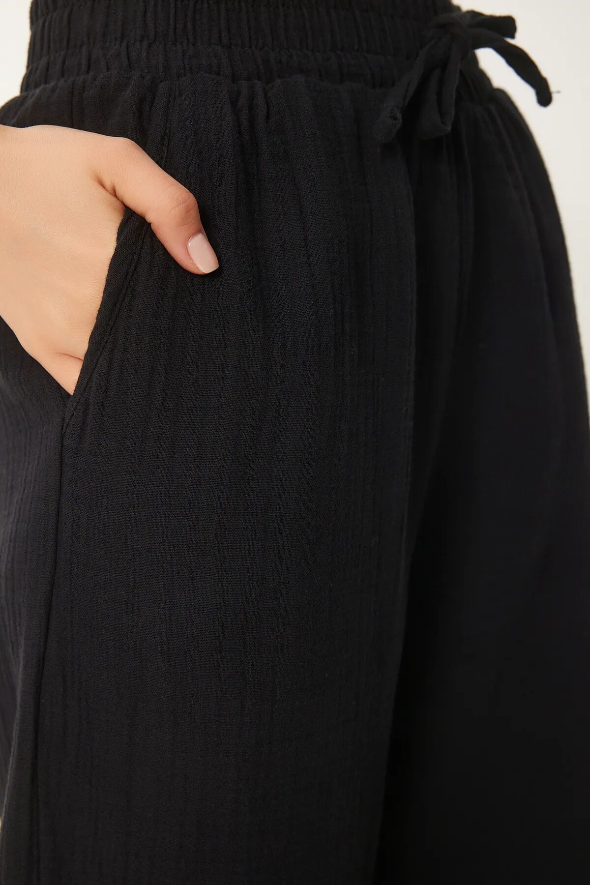 Balenbi Kadın Hafif Transparan Beli Lastikli Palazzo Müslin Pantolon 1096 42 - Siyah