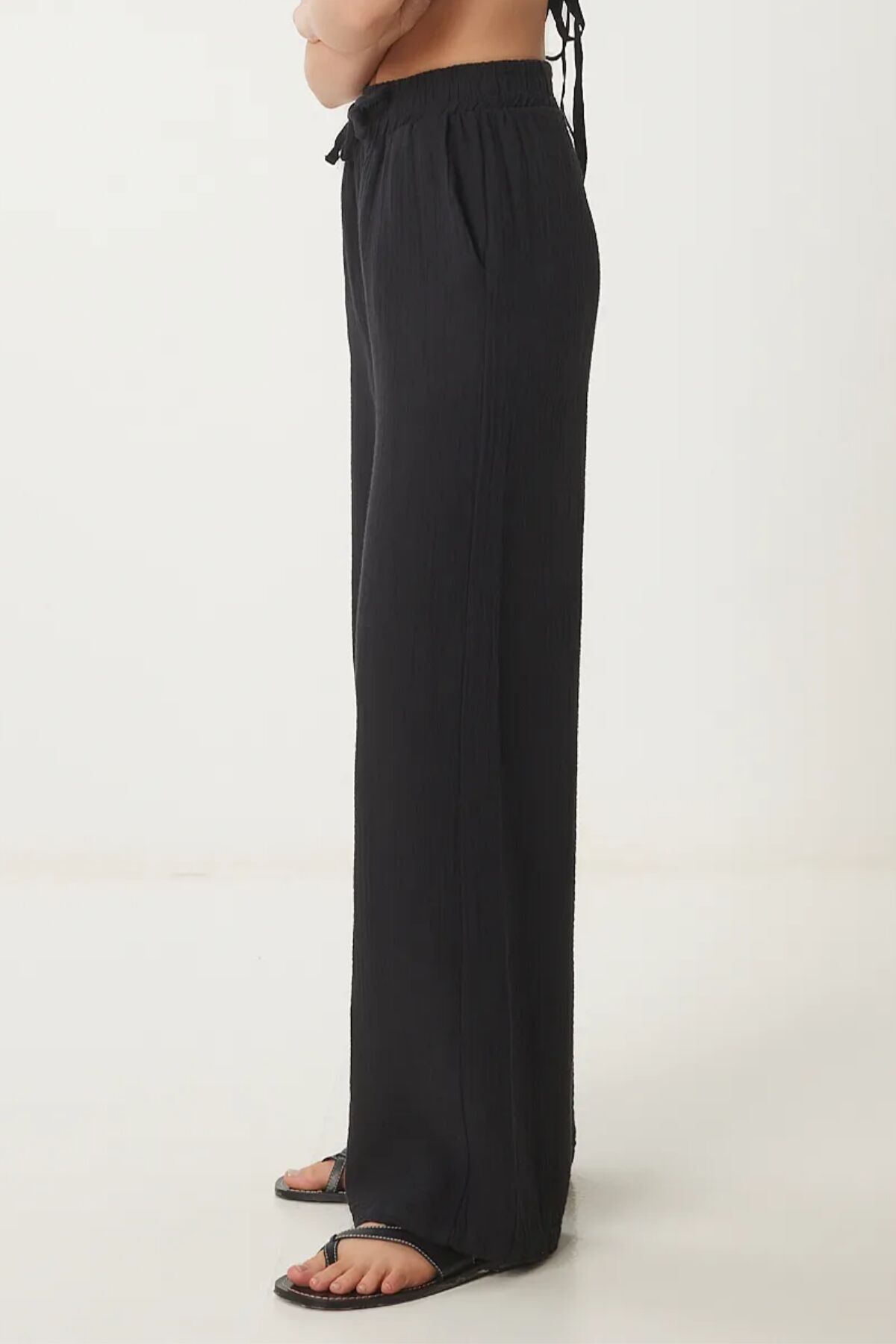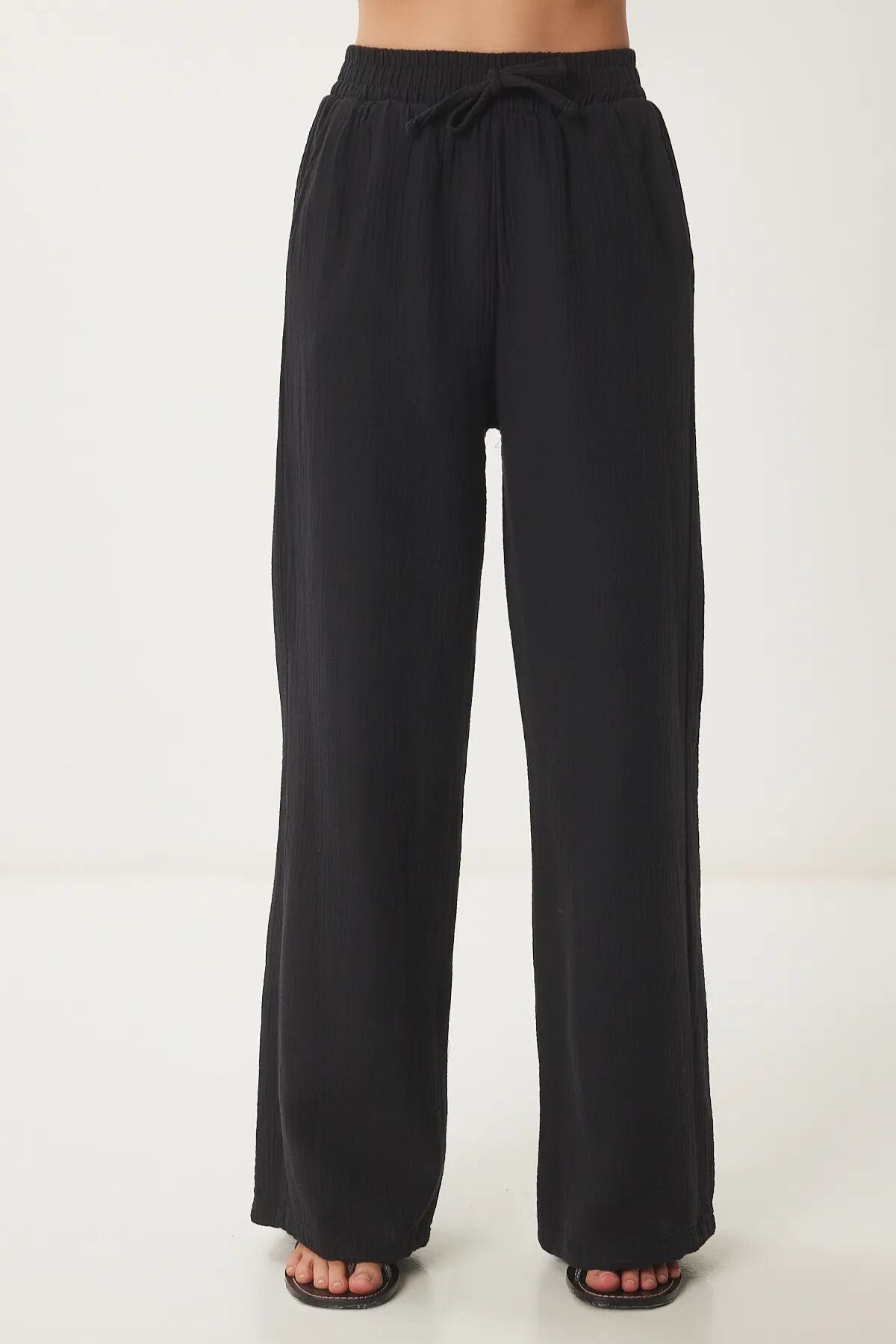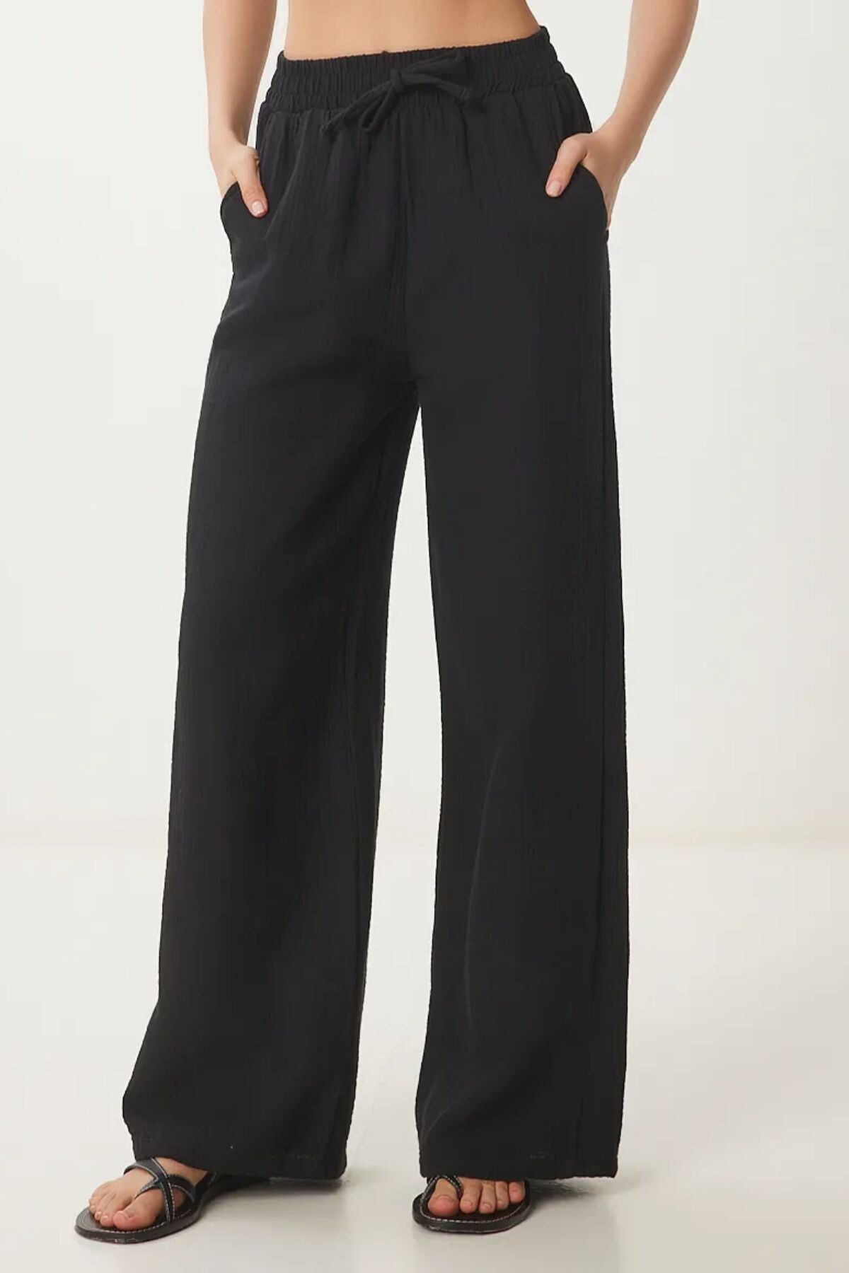 Balenbi Kadın Hafif Transparan Beli Lastikli Palazzo Müslin Pantolon 1096 42 - Siyah