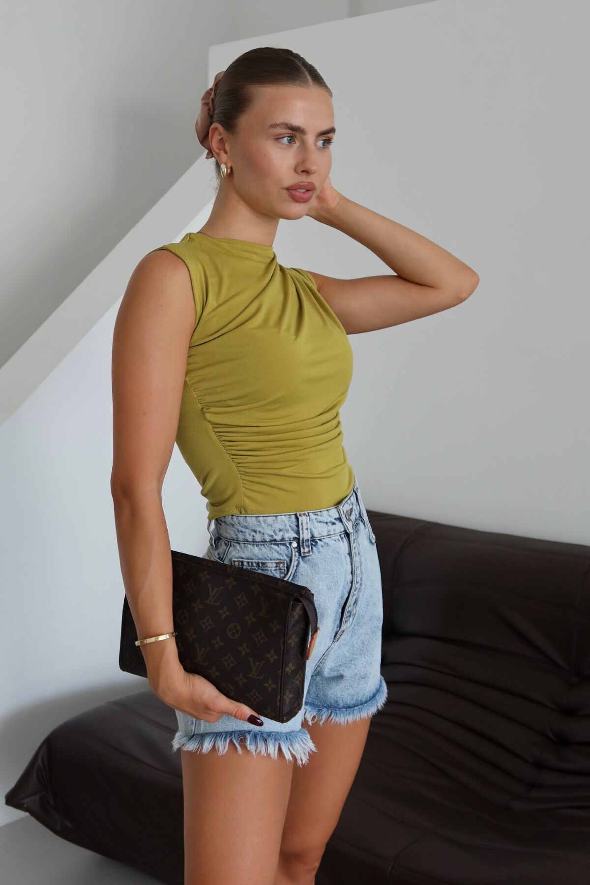 Balenbi Kadın Kolsuz Büzgü Detaylı Basic Sandy Bluz 1102 S - Oliv
