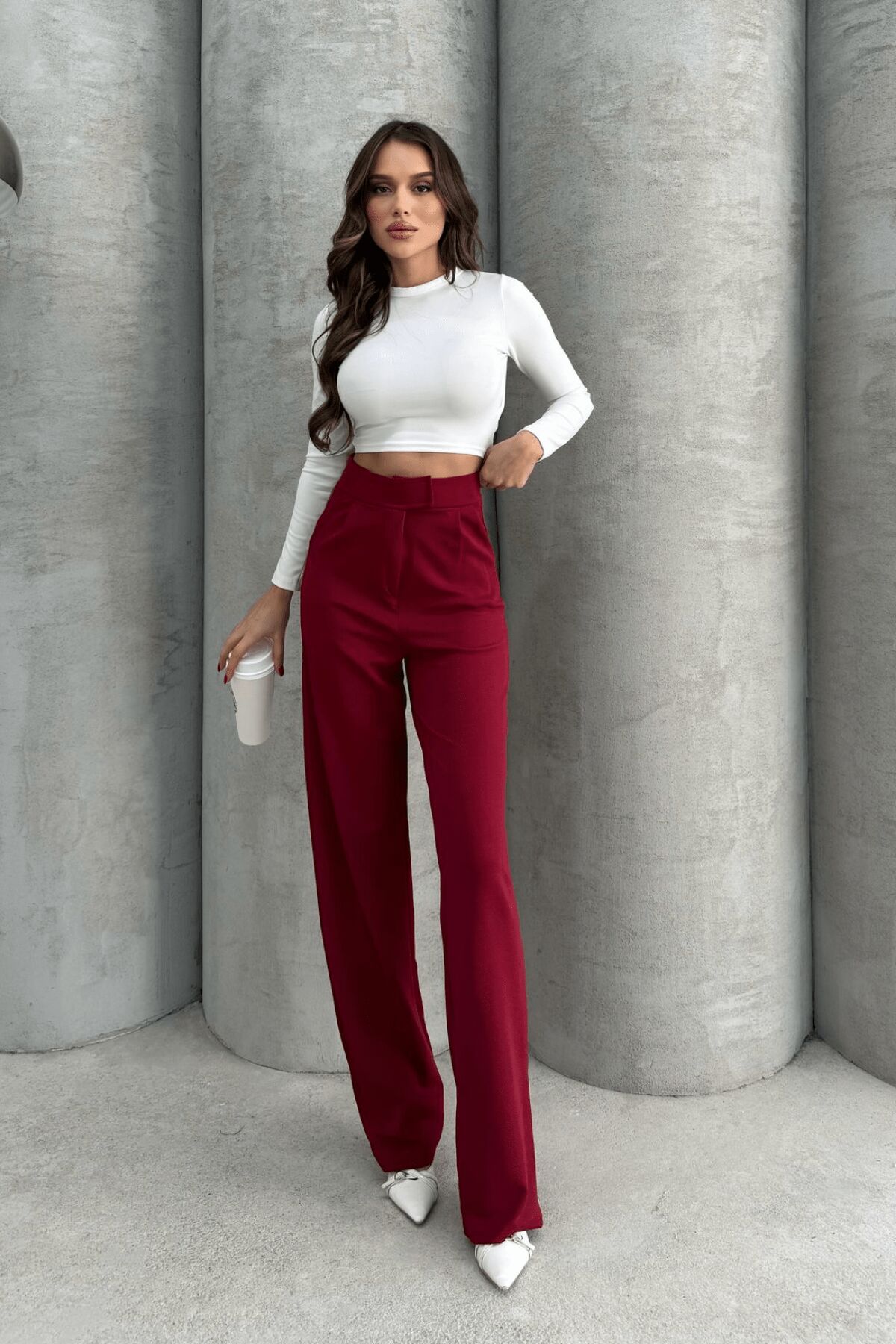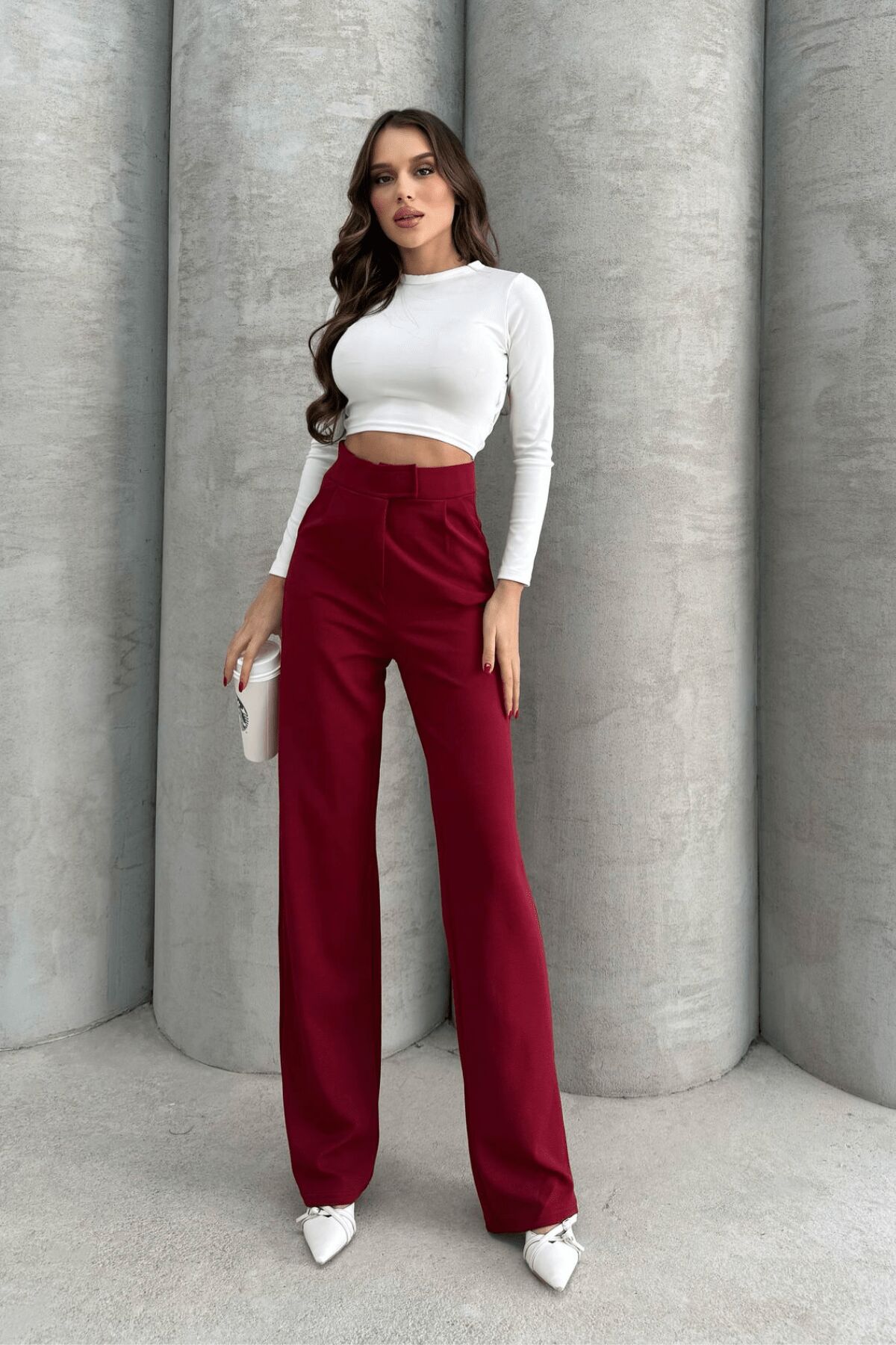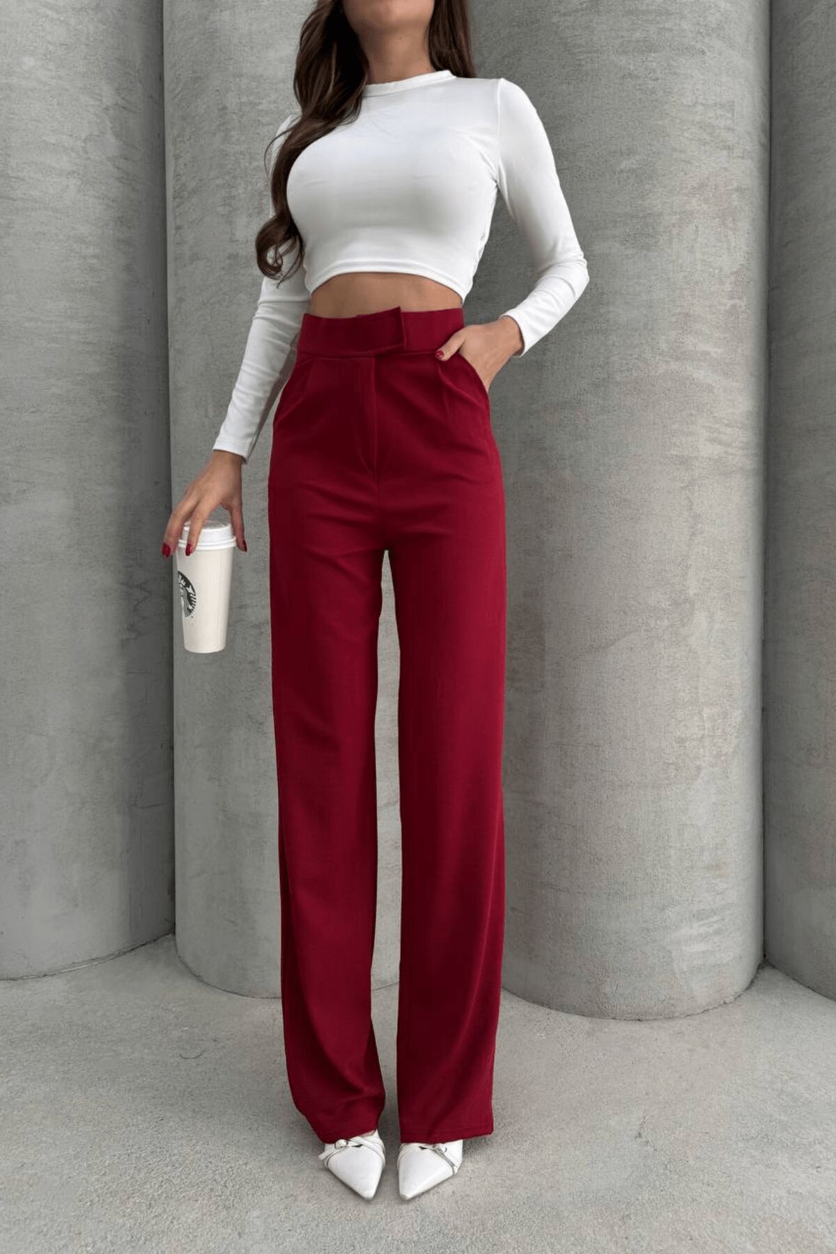 Balenbi Kadın Likralı Cırt Kapama Palazzo Pantolon 1077 36 - Bordo