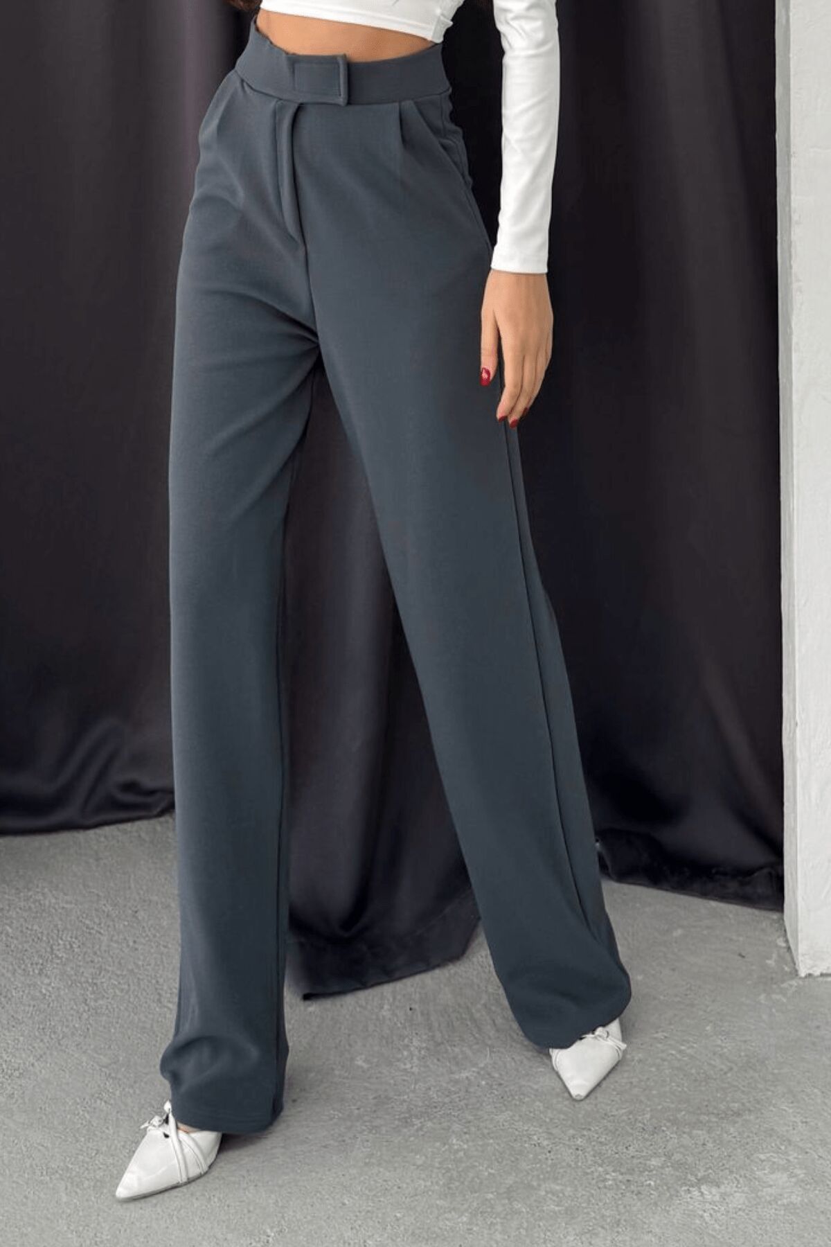 Balenbi Kadın Likralı Cırt Kapama Palazzo Pantolon 1077 36 - Füme