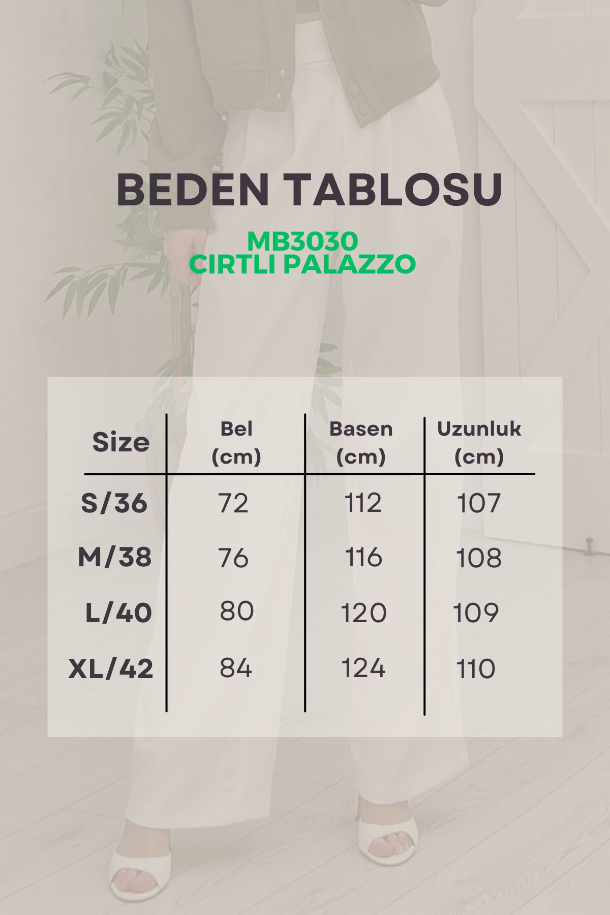 Balenbi 1077 Kadın Likralı Cırt Kapama Palazzo Pantolon Balenbi 1077 Yüksek Bel Likralı Cırt Kapama Palazzo Kadın Pantolon, rahatlığı ve şıklığı bir arada sunar.; ; Esnek likralı kumaşı sayesinde hareket özgürlüğü sağlarken, bol kesimiyle de konforlu bir deneyim sunar.; ; Yüksek bel tasarımı ile vücuda mükemmel şekilde oturur ve her bedene uyum sağlar.; ; Cırt kapama detayı sayesinde pratik bir şekilde giyip çıkarabilirsiniz.; ; Ayrıca cepli olması da kullanışlılık katıyor.; ; Bu palazzo pantolon, Balenbi kalitesiyle tasarlanmış olup, tarzınızı ve rahatlığınızı bir arada tutmayı hedefler.;
