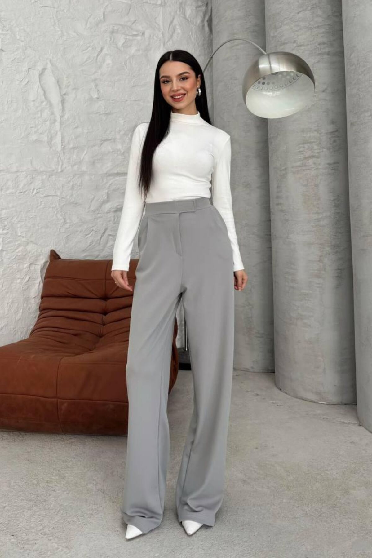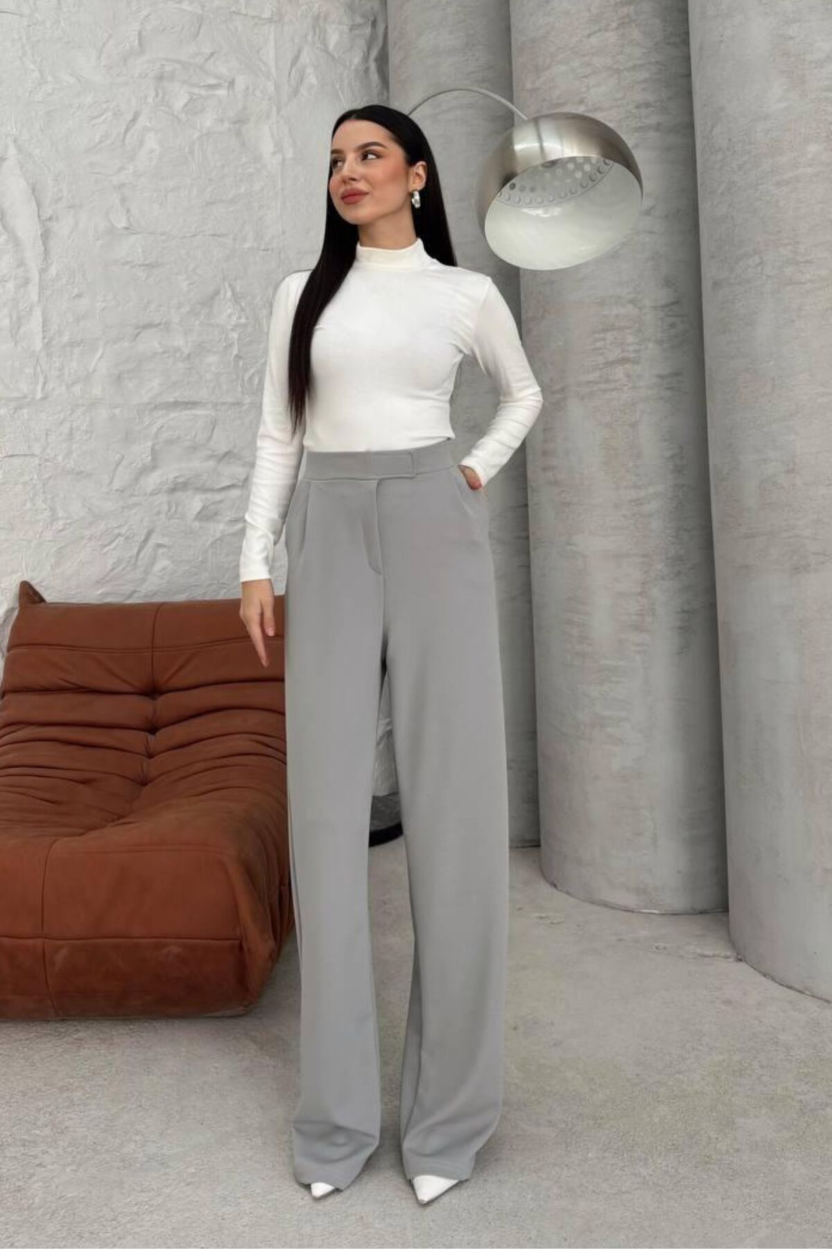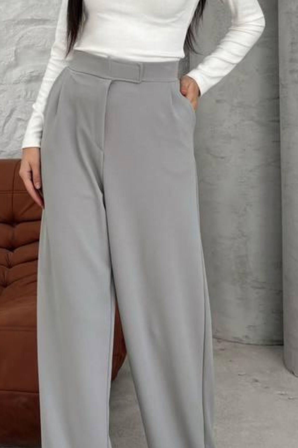 Balenbi Kadın Likralı Cırt Kapama Palazzo Pantolon 1077 34 - Gri