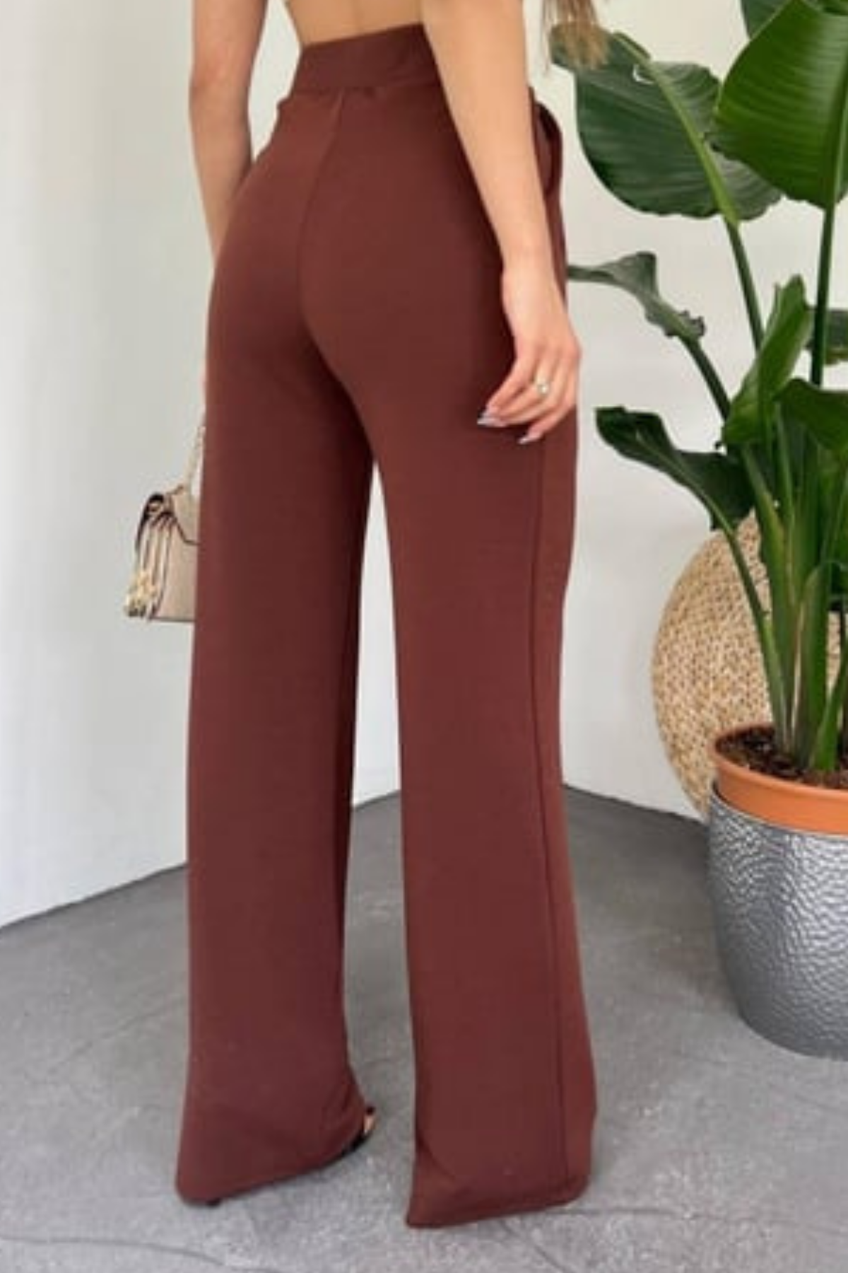 Balenbi Kadın Likralı Cırt Kapama Palazzo Pantolon 1077 36 - Kahverengi