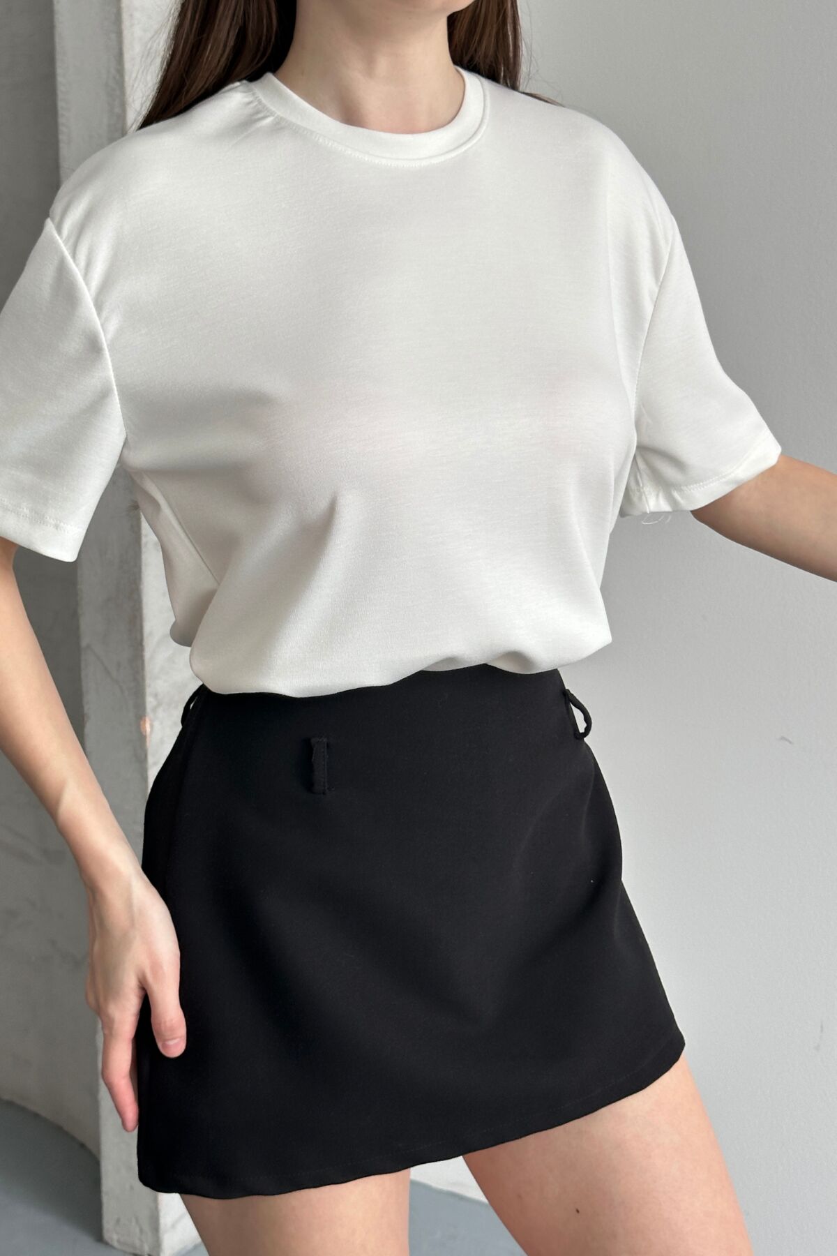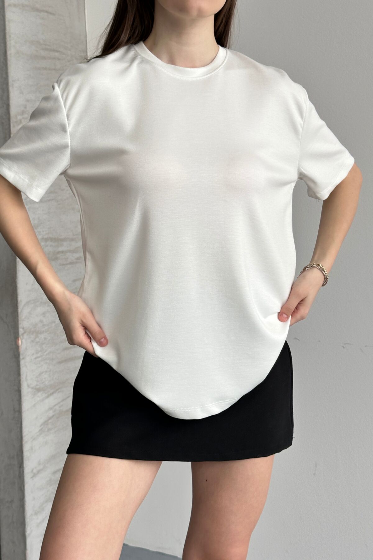 Balenbi Kadın Modal Bisiklet Yaka Basic Yarım Kollu T-Shirt 1211