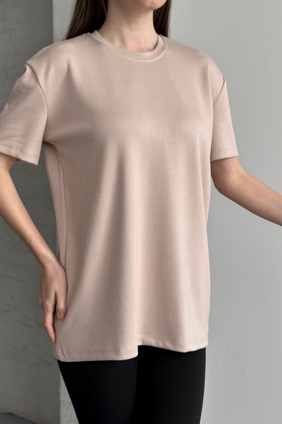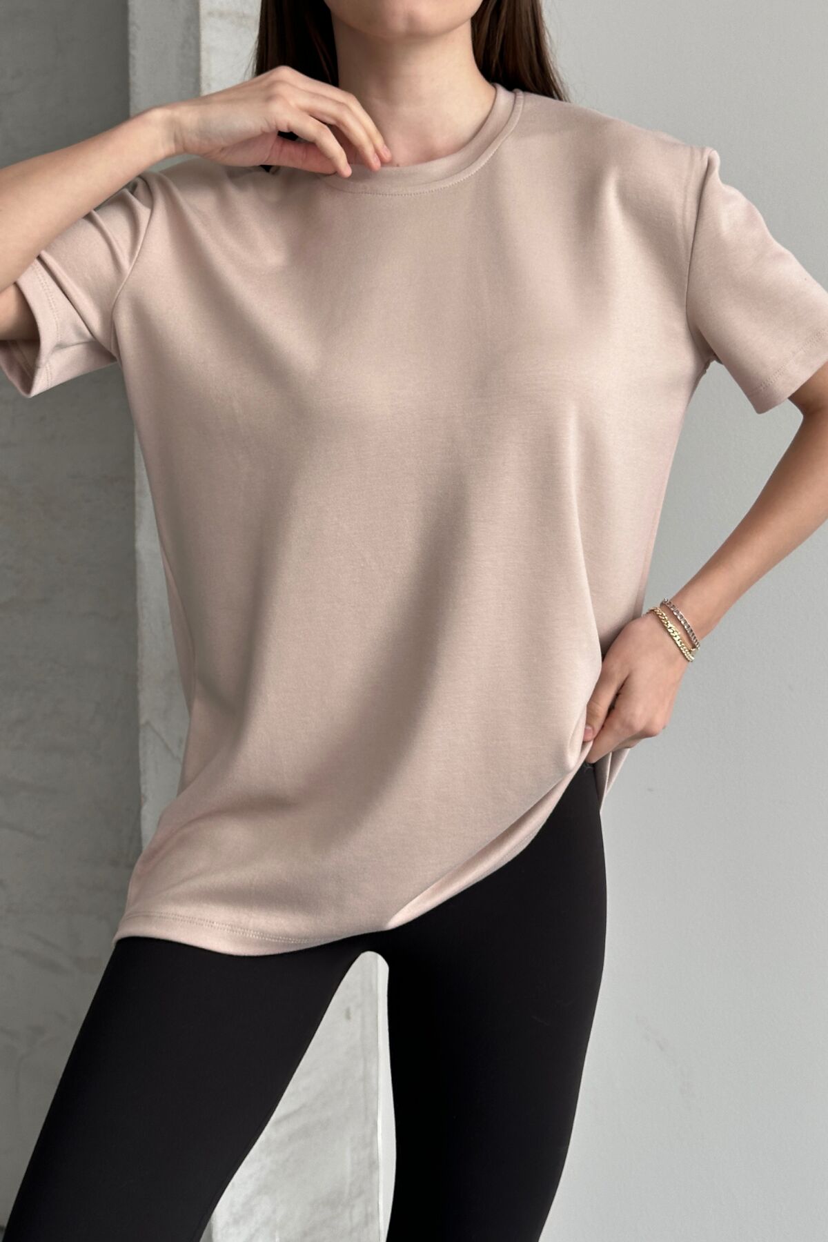 Balenbi Kadın Modal Bisiklet Yaka Basic Yarım Kollu T-Shirt 1211 L - Bej