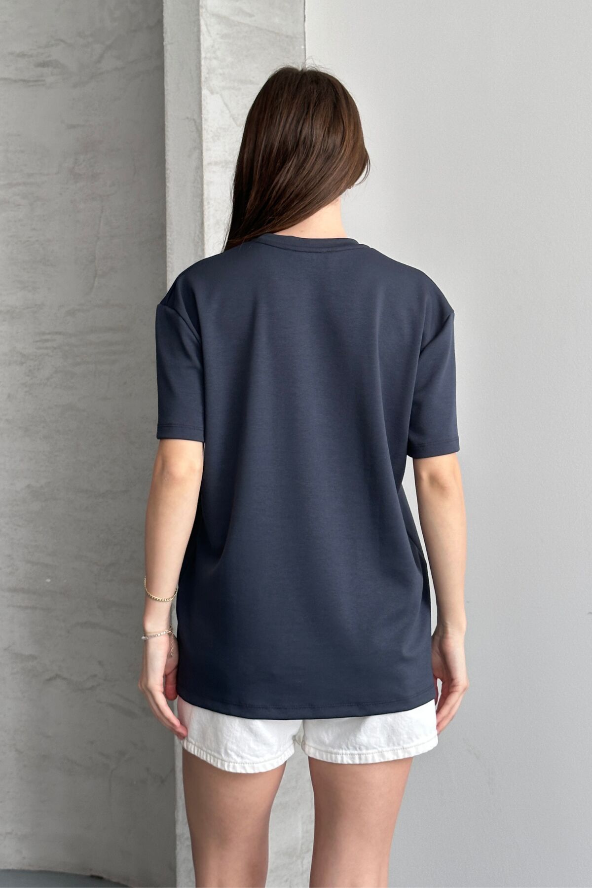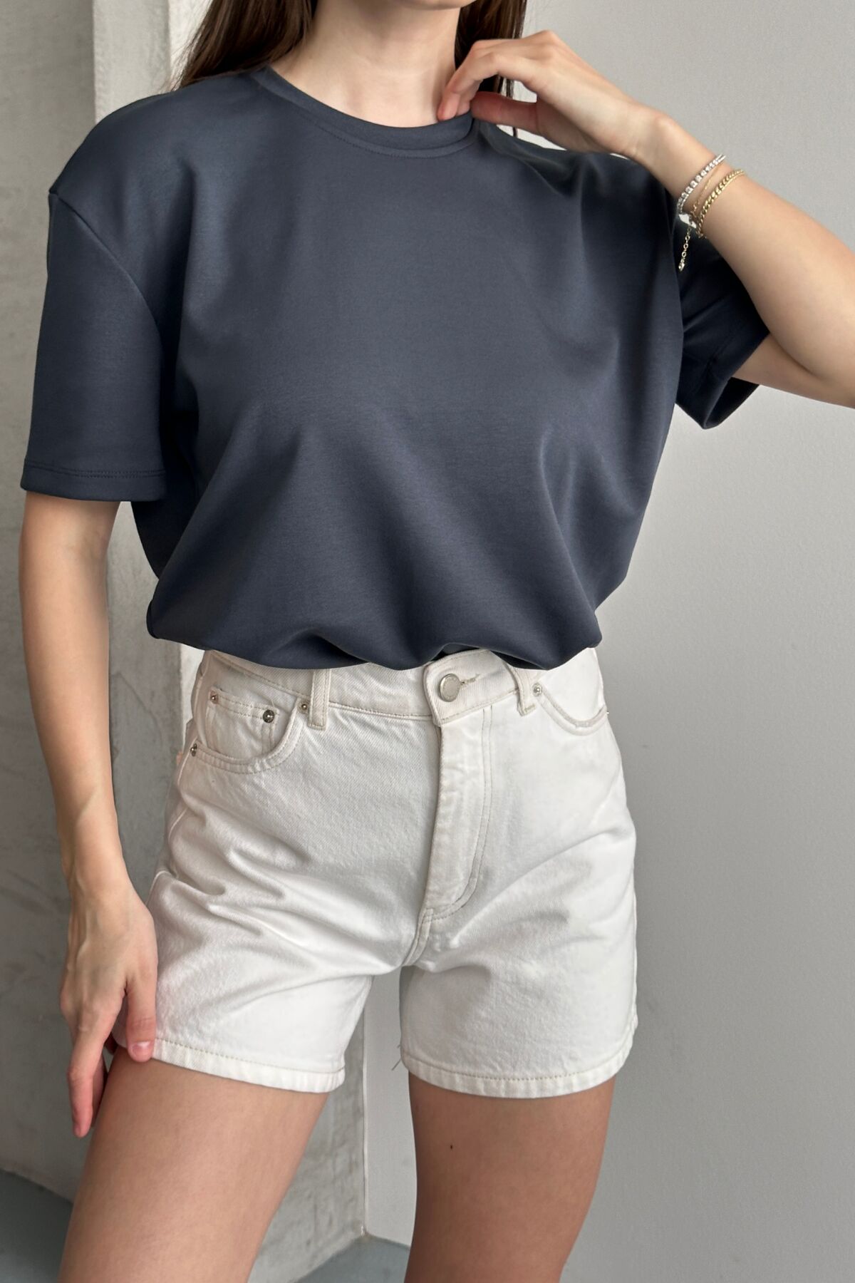 Balenbi Kadın Modal Bisiklet Yaka Basic Yarım Kollu T-Shirt 1211 XL - Füme
