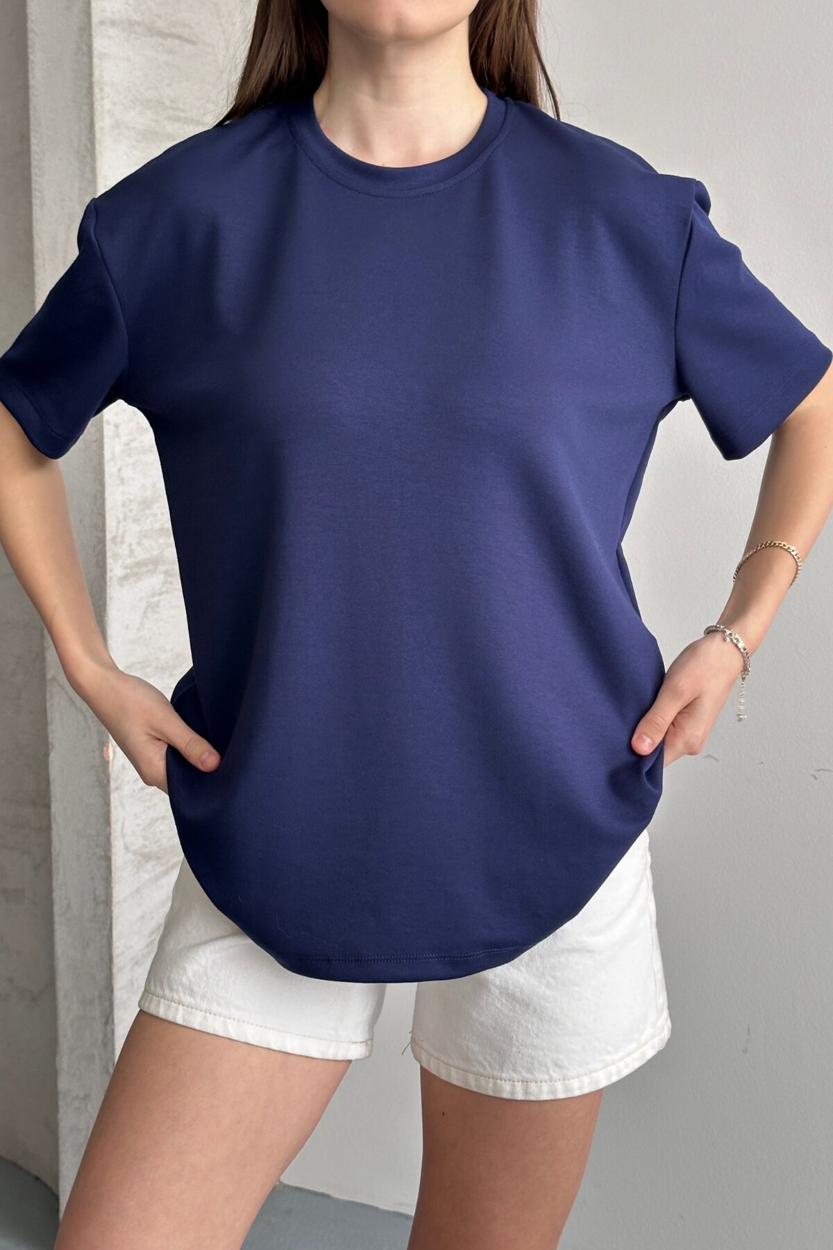 Balenbi Kadın Modal Bisiklet Yaka Basic Yarım Kollu T-Shirt 1211 XL - Lacivert