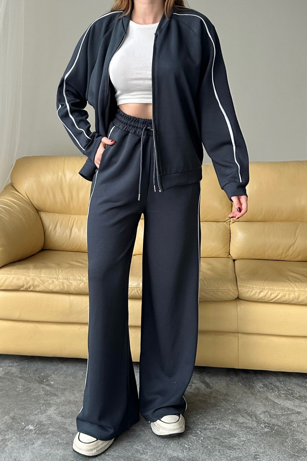 Balenbi Kadın Modal Kumaş Çift Biyeli Fermuarlı Takım 1127 S - Antrasit