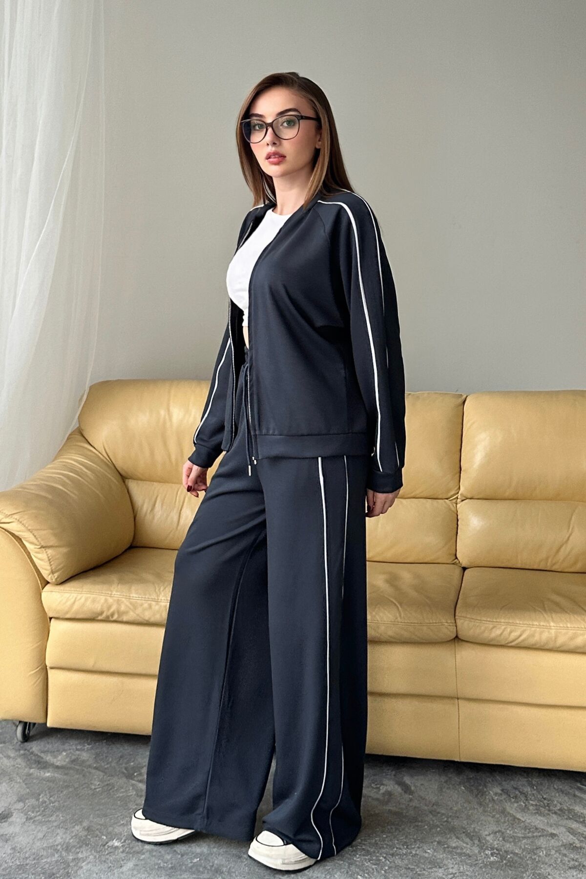 Balenbi Kadın Modal Kumaş Çift Biyeli Hakim Yaka Takım 1127 - Hakim yaka tasarımı ile modern ve şık bir görünüm sunar.; - Fermuarlı yapısı sayesinde kolayca giyilip çıkarılabilir ve pratik kullanım sağlar.; - Çift biyeli detayları ile dikkat çekici bir stil oluşturur.; - Biyeli tasarımı, takımın estetik görünümünü artırırken konforlu bir kullanım sunar.; - Modal kumaşın yumuşak dokusu cildinizle dost, gün boyu rahat etmenizi sağlar.; - Alt-üst takım olarak sunulan bu parça, kombin derdini ortadan kaldırarak şıklığınızı tamamlar.; - Paça tipi ve dokuma tipi hakkında detaylı bilgi verilmemesi, farklı stil tercihlerine hitap eden esnek bir tasarım sunar.; - Kalınlık ve paket içeriği bilgisi verilmemiş olsa da, ürünün kalitesine dair ipuçları vermesi beklenir.; - Bel ve kemer/kuşak durumu hakkında bilgi verilmemesi, farklı vücut tiplerine uyum sağlayabilecek esneklik sunabilir.; - Siluet ve ek özellikler hakkında bilgi verilmemesi, tasarımın özgünlüğünü koruyarak kişisel zevklere hitap eder.; - Baskı/nakış tekniği ve astar durumu hakkında detay verilmemesi, ürünün sade ve zarif bir görünüm sergilemesine olanak tanır.; - Yıkama talimatları ve menşei bilgisi verilmediği için ürünle ilgili genel bir