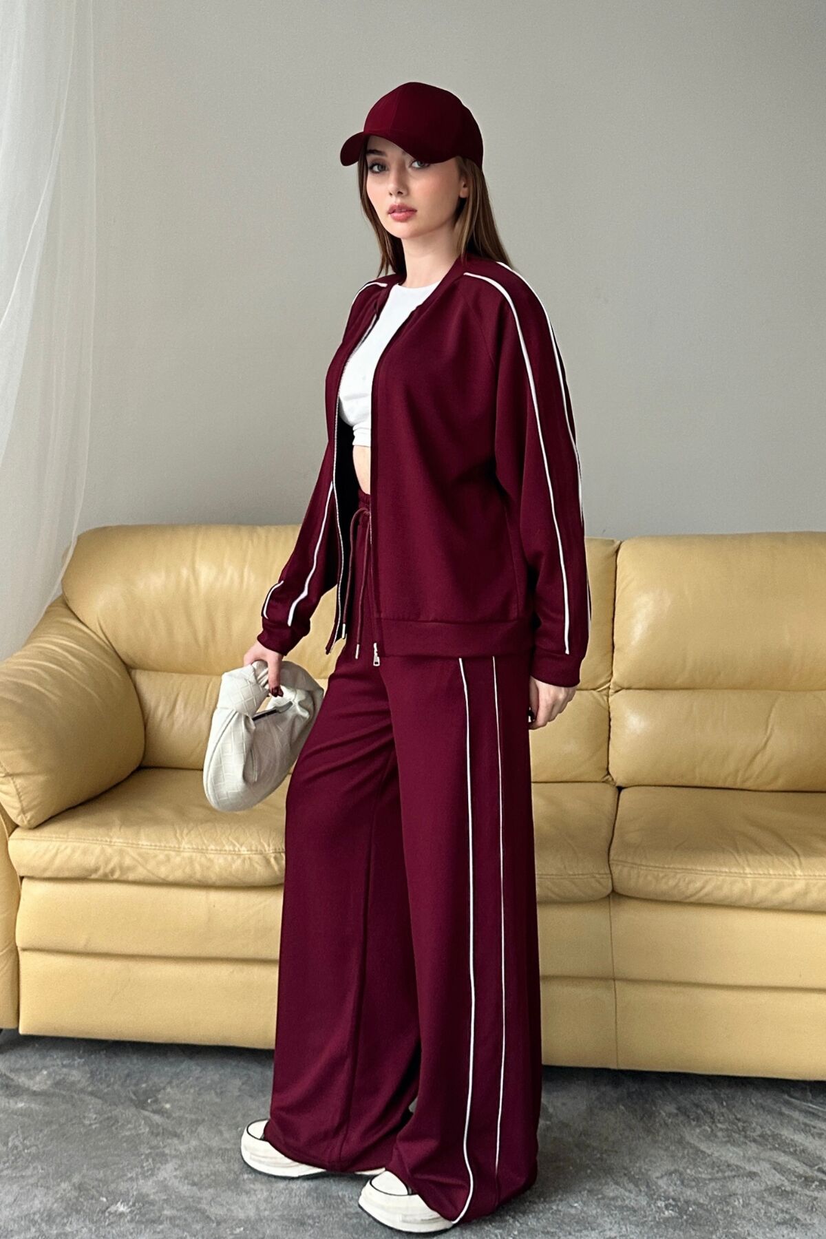Balenbi Kadın Modal Kumaş Çift Biyeli Fermuarlı Takım 1127 S - Bordo