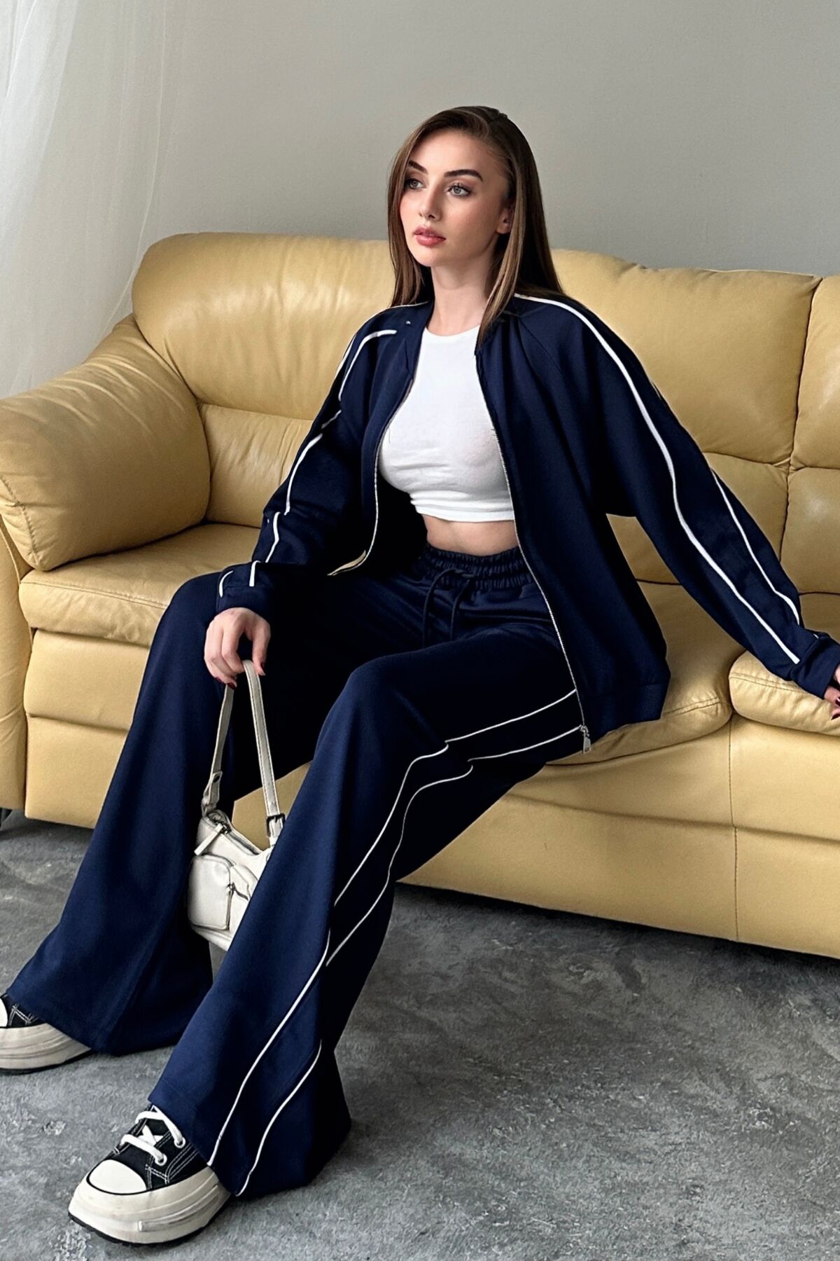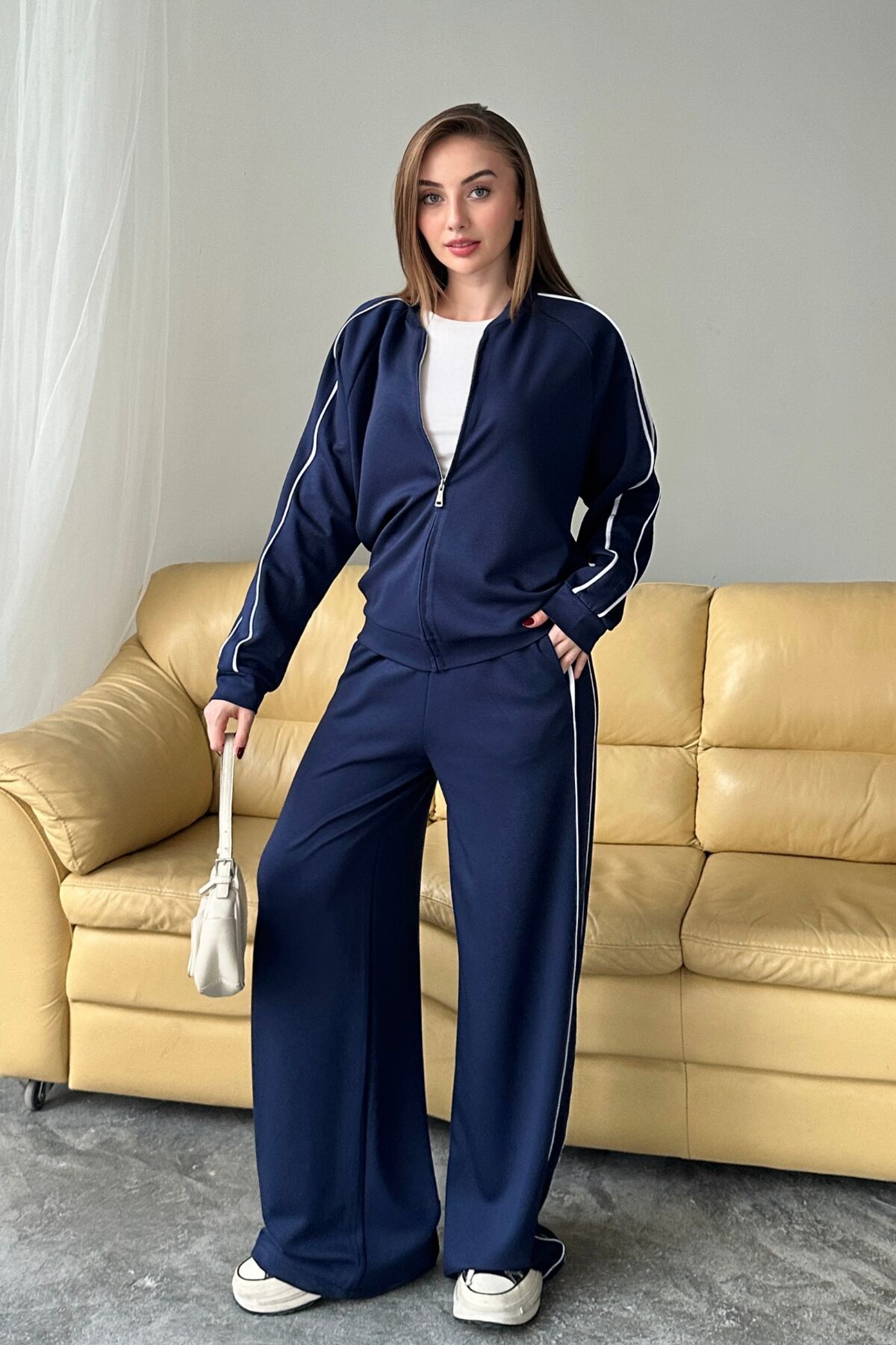 Balenbi Kadın Modal Kumaş Çift Biyeli Hakim Yaka Takım 1127 - Hakim yaka tasarımı ile modern ve şık bir görünüm sunar.; - Fermuarlı yapısı sayesinde kolayca giyilip çıkarılabilir ve pratik kullanım sağlar.; - Çift biyeli detayları ile dikkat çekici bir stil oluşturur.; - Biyeli tasarımı, takımın estetik görünümünü artırırken konforlu bir kullanım sunar.; - Modal kumaşın yumuşak dokusu cildinizle dost, gün boyu rahat etmenizi sağlar.; - Alt-üst takım olarak sunulan bu parça, kombin derdini ortadan kaldırarak şıklığınızı tamamlar.; - Paça tipi ve dokuma tipi hakkında detaylı bilgi verilmemesi, farklı stil tercihlerine hitap eden esnek bir tasarım sunar.; - Kalınlık ve paket içeriği bilgisi verilmemiş olsa da, ürünün kalitesine dair ipuçları vermesi beklenir.; - Bel ve kemer/kuşak durumu hakkında bilgi verilmemesi, farklı vücut tiplerine uyum sağlayabilecek esneklik sunabilir.; - Siluet ve ek özellikler hakkında bilgi verilmemesi, tasarımın özgünlüğünü koruyarak kişisel zevklere hitap eder.; - Baskı/nakış tekniği ve astar durumu hakkında detay verilmemesi, ürünün sade ve zarif bir görünüm sergilemesine olanak tanır.; - Yıkama talimatları ve menşei bilgisi verilmediği için ürünle ilgili genel bir