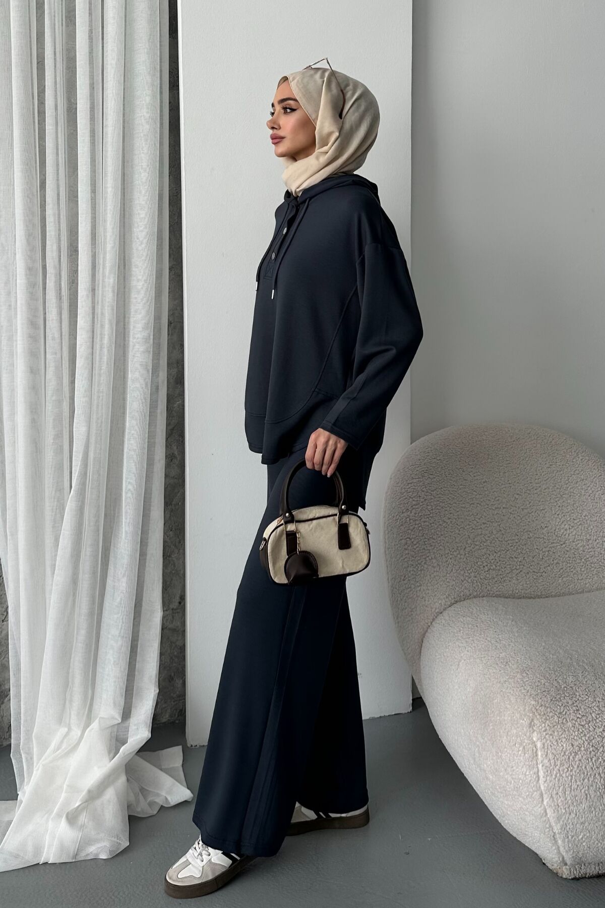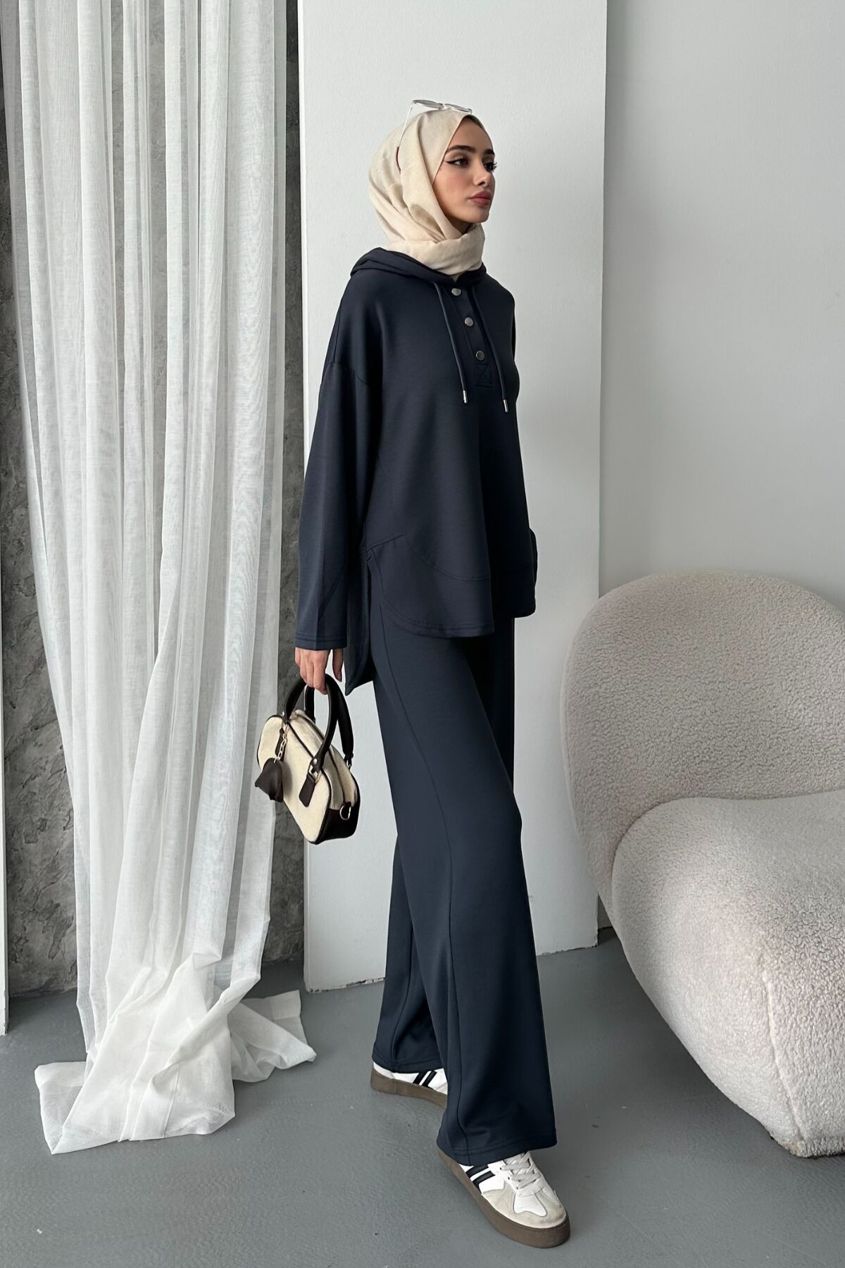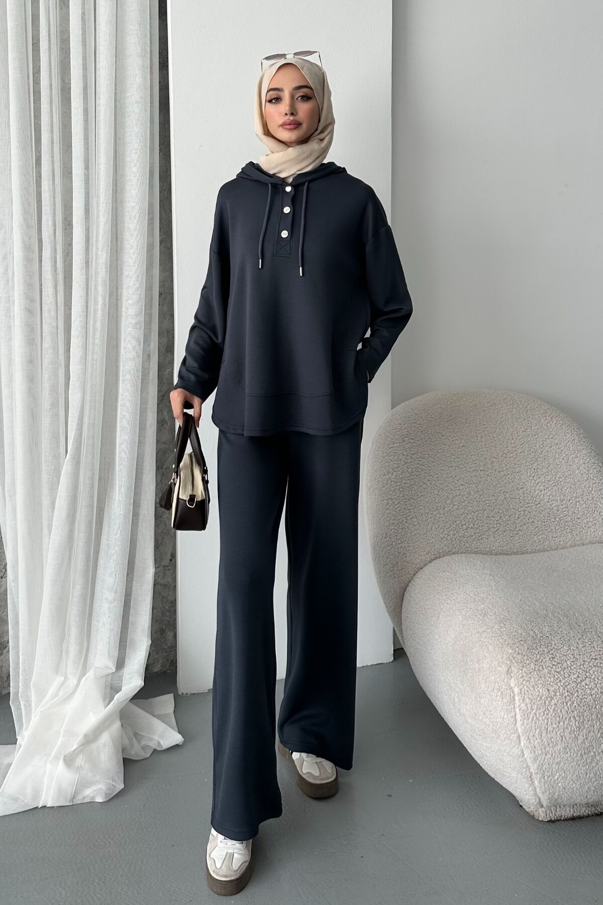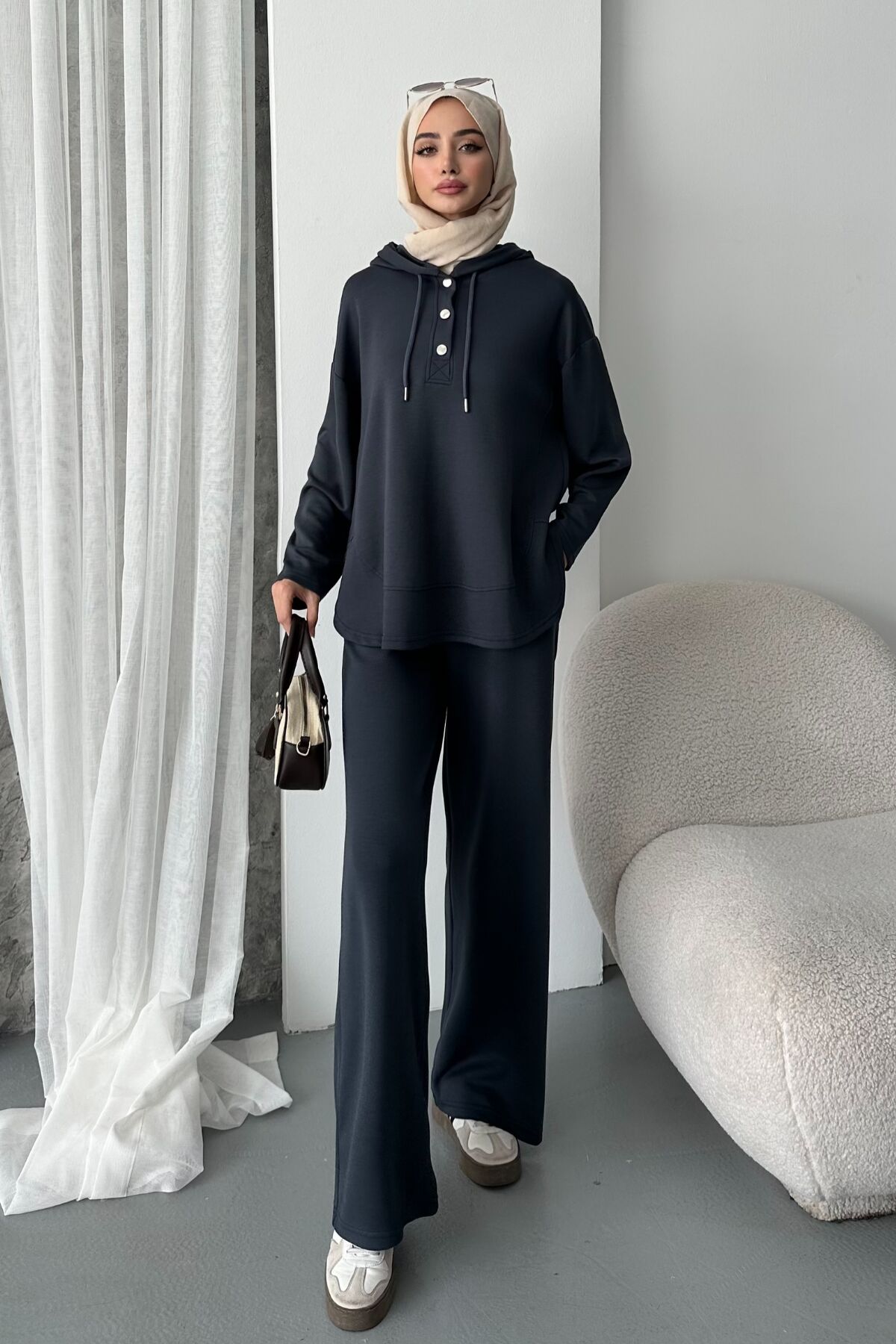 Balenbi Kadın Modal Kumaş Çıtlı Kapüşonlu Oversize Tunik Takım 1119 - Rahat ve özgür hareket imkanı sunan oversize siluet tasarımıyla günlük kullanım için ideal.; - Modal kumaşın yumuşak dokusu, cildinize nazik bir dokunuş sağlar ve konforlu bir deneyim sunar.; - Pratik kullanım için tasarlanmış çıtçıt kapama mekanizması, kolay giyilip çıkarılabilirlik sunar.; - Tunikli pantolonlu alt-üst takım olarak kombinlenebilir, şık ve uyumlu bir görünüm elde etmenizi sağlar.; - Tek parça olarak sunulan bu ürün, minimalist ve şık bir tarz arayanlar için idealdir.;