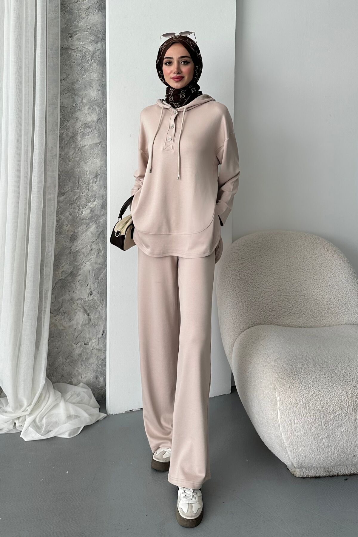 Balenbi Kadın Modal Kumaş Çıtlı Kapüşonlu Oversize Tunik Takım 1119 - Rahat ve özgür hareket imkanı sunan oversize siluet tasarımıyla günlük kullanım için ideal.; - Modal kumaşın yumuşak dokusu, cildinize nazik bir dokunuş sağlar ve konforlu bir deneyim sunar.; - Pratik kullanım için tasarlanmış çıtçıt kapama mekanizması, kolay giyilip çıkarılabilirlik sunar.; - Tunikli pantolonlu alt-üst takım olarak kombinlenebilir, şık ve uyumlu bir görünüm elde etmenizi sağlar.; - Tek parça olarak sunulan bu ürün, minimalist ve şık bir tarz arayanlar için idealdir.;