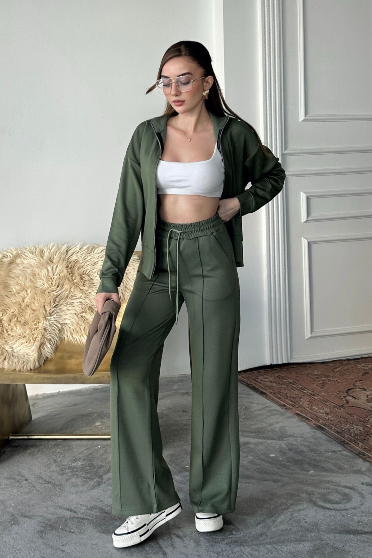 Balenbi Kadın Modal Kumaş Fermuarlı Dik Yaka Takım 1118 2XL - Haki
