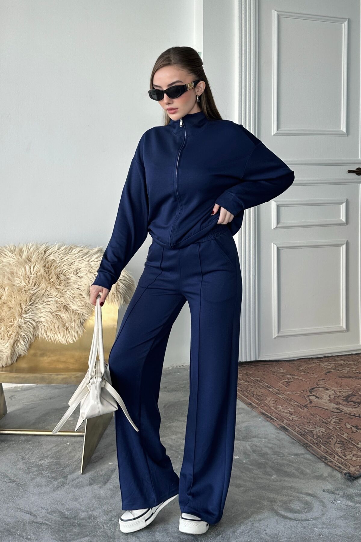 Balenbi Kadın Modal Kumaş Fermuarlı Dik Yaka Takım 1118 S - Lacivert