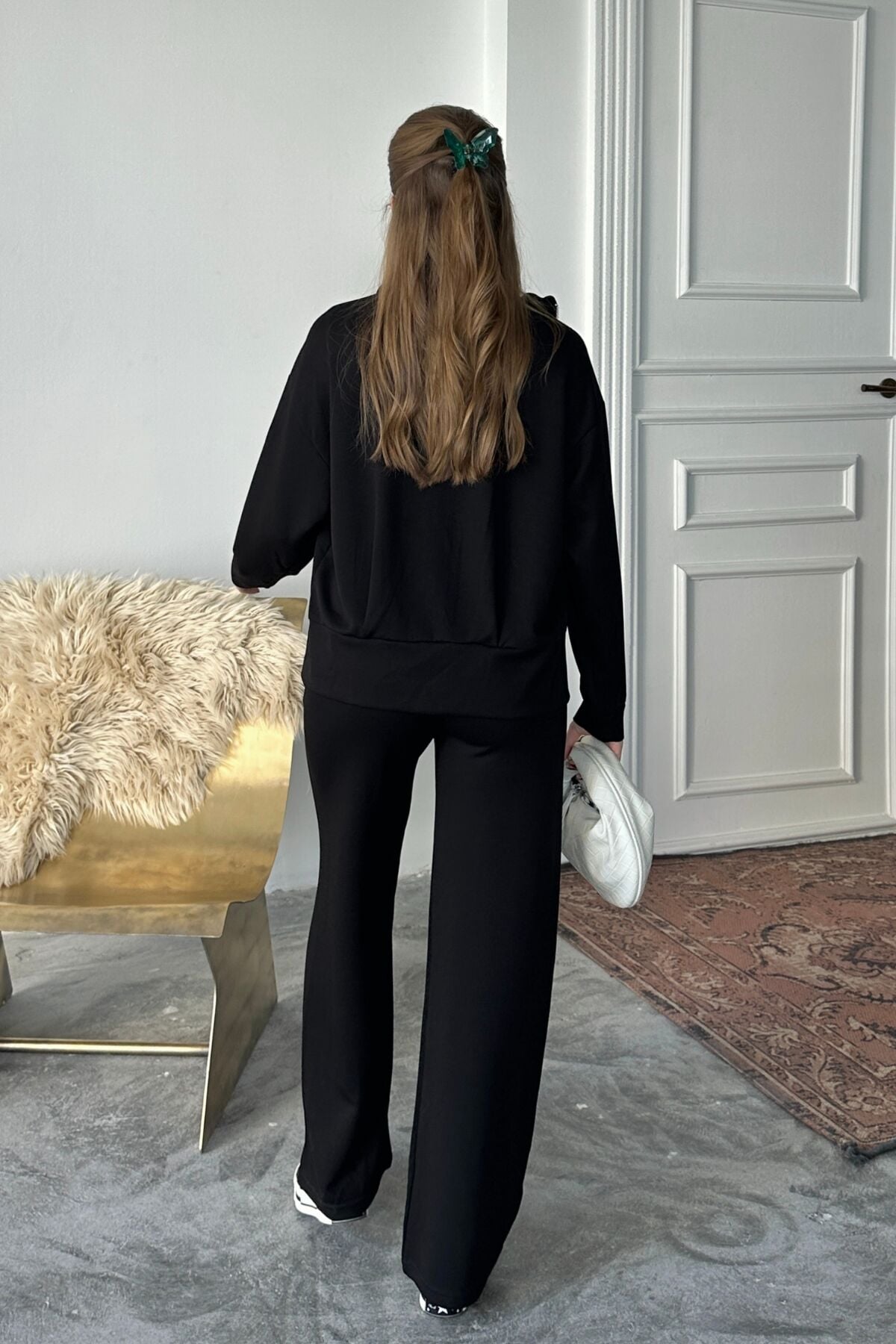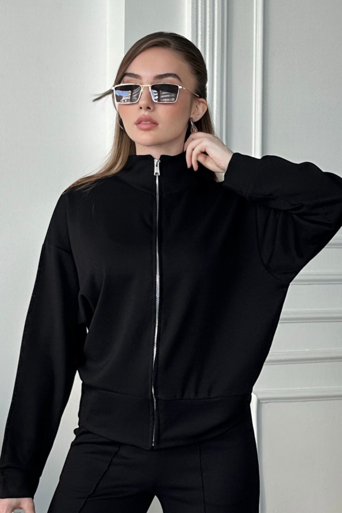 Balenbi Kadın Modal Kumaş Fermuarlı Dik Yaka Takım 1118 L - Siyah