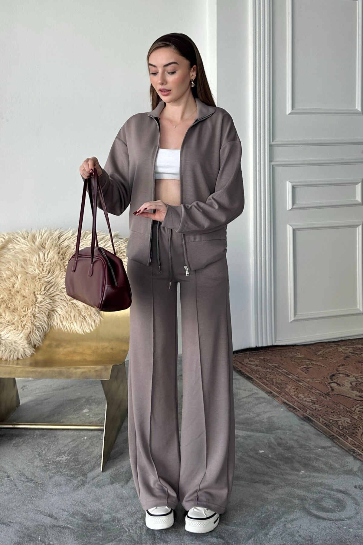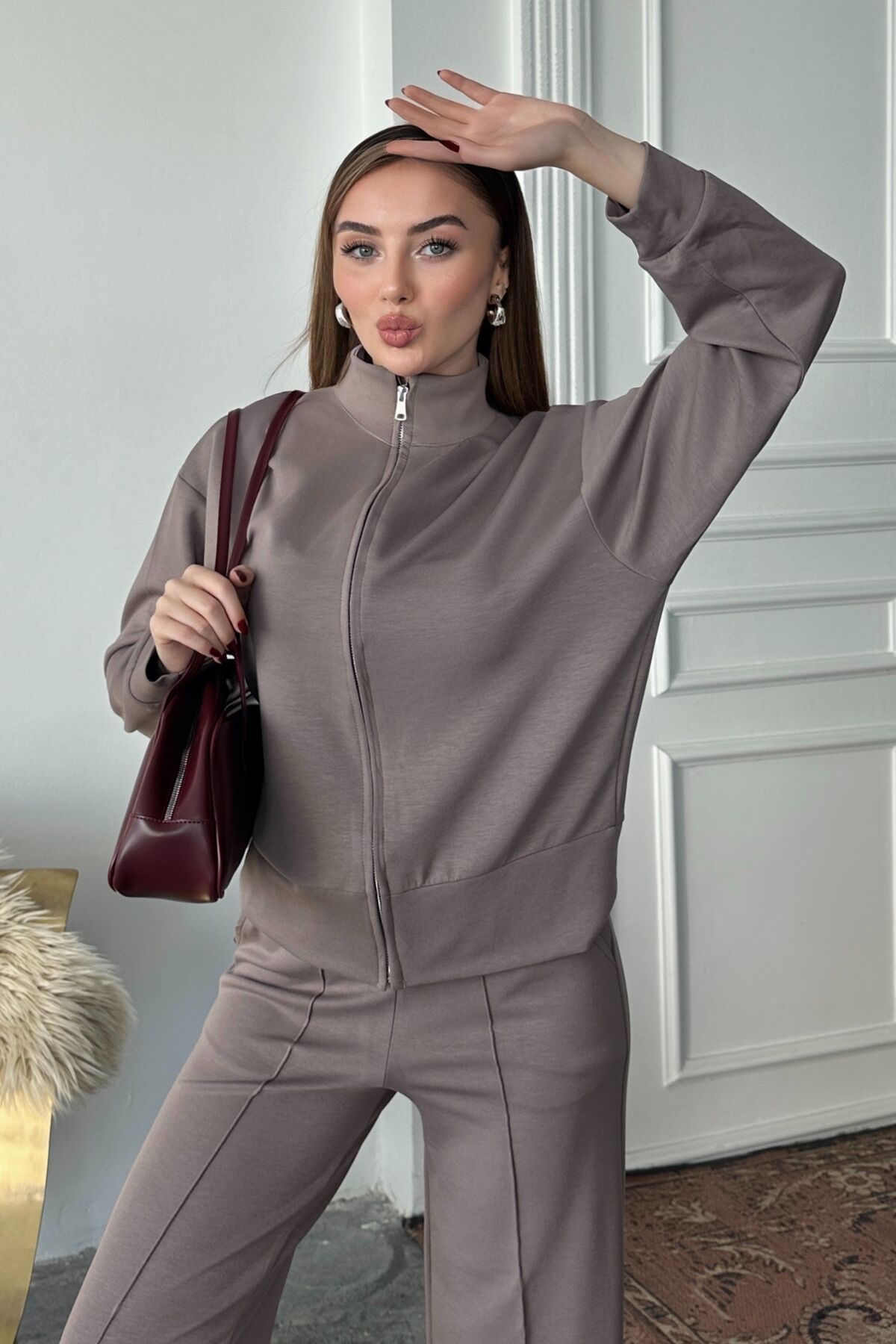Balenbi Kadın Modal Kumaş Fermuarlı Dik Yaka Takım 1118 S - Vizon