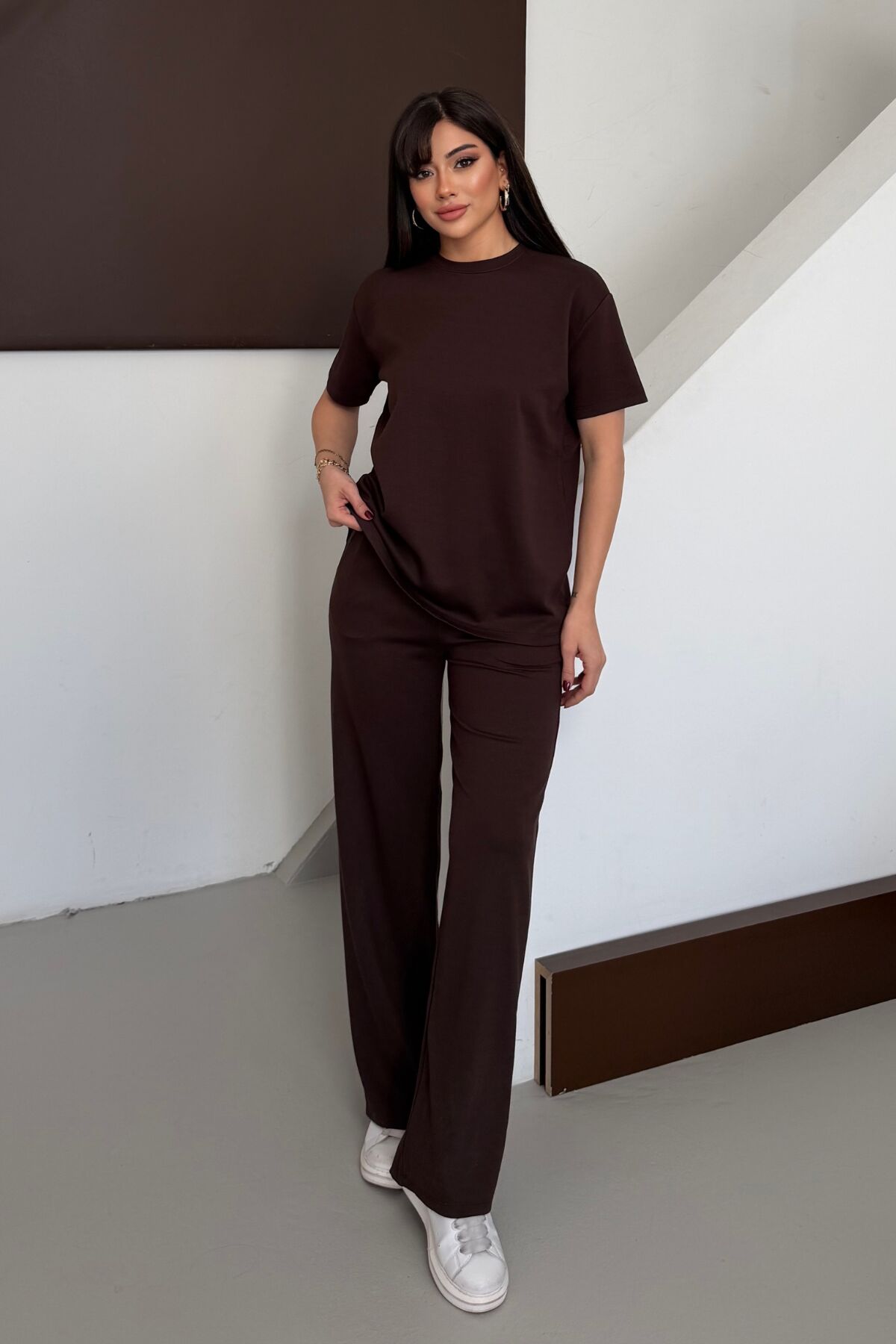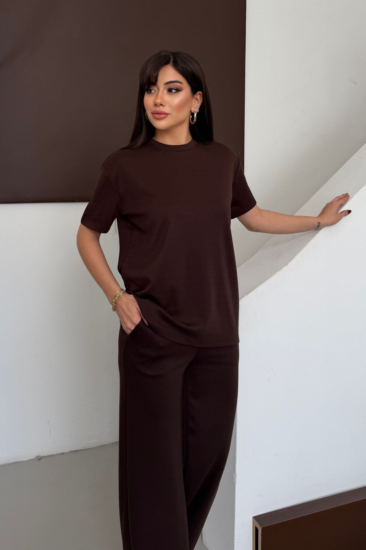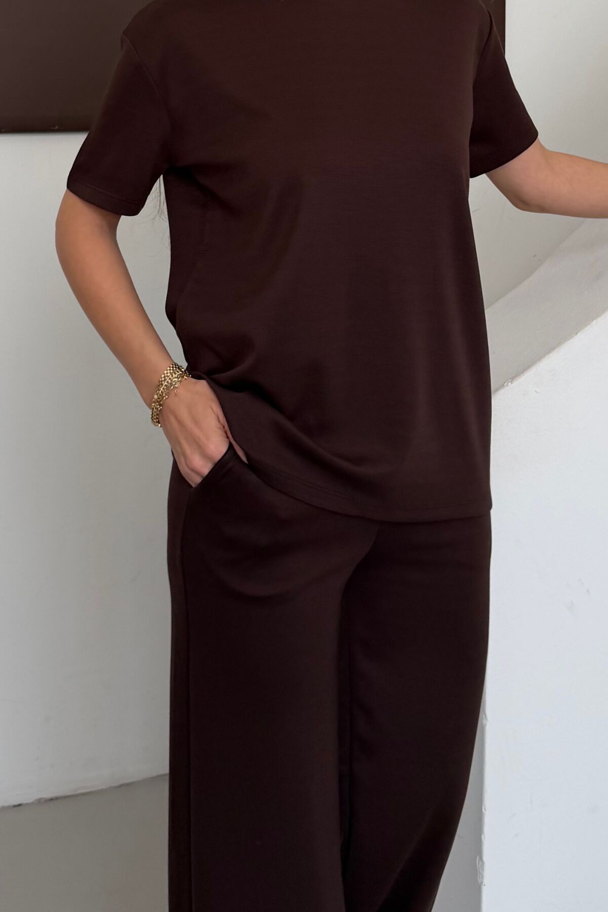 Balenbi Kadın Modal Kumaş Kısa Kollu Eşofman Takımı 1098 L - Acı Kahve