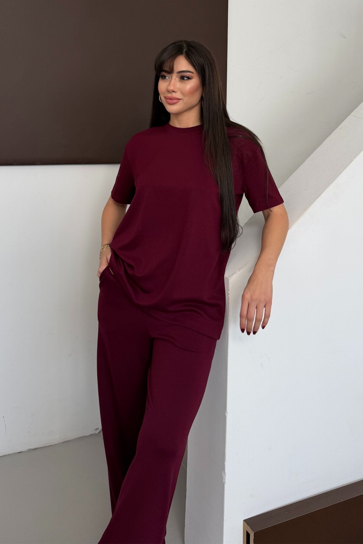 Balenbi Kadın Modal Kumaş Kısa Kollu Eşofman Takımı 1098 XL - Bordo