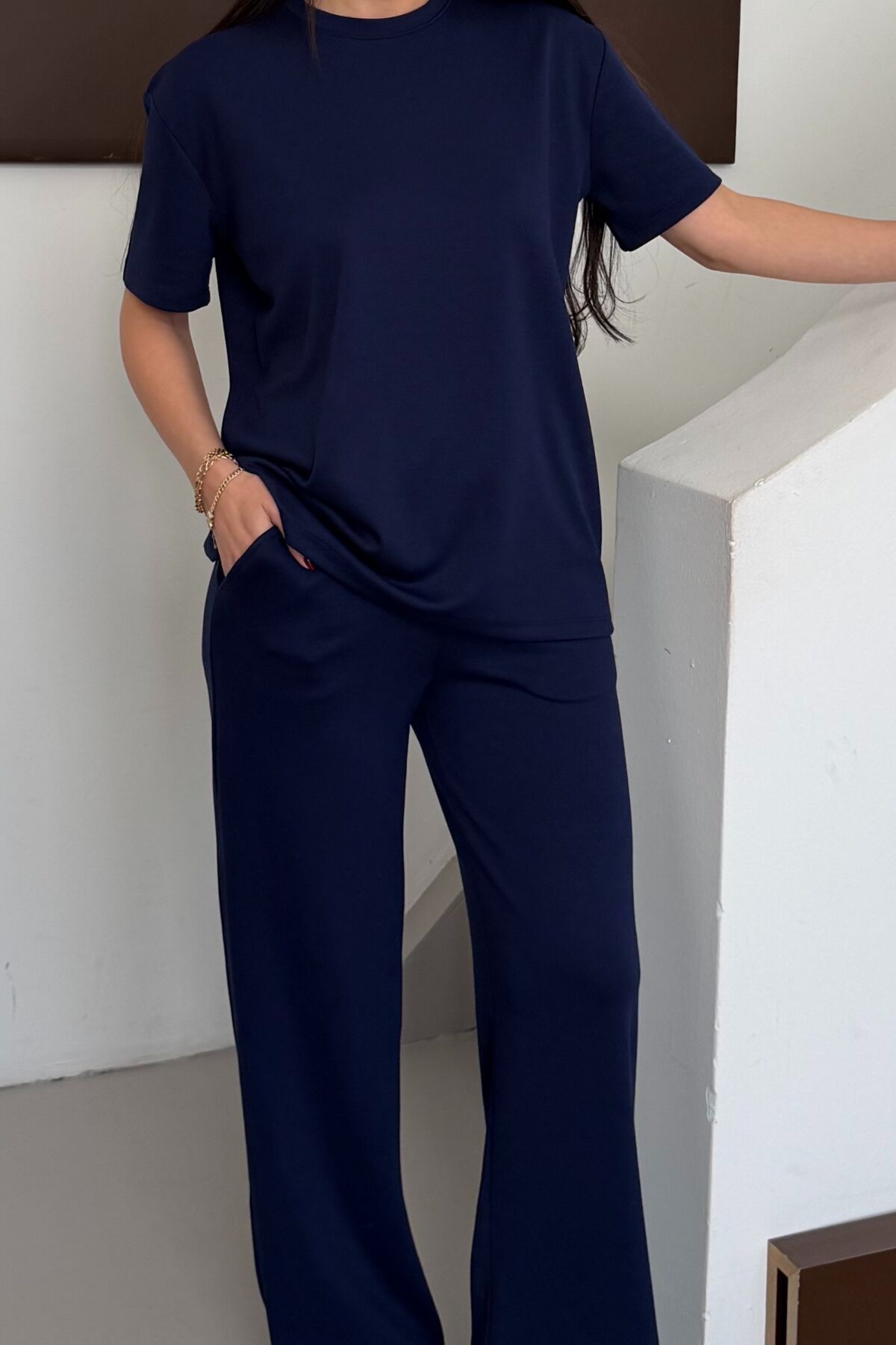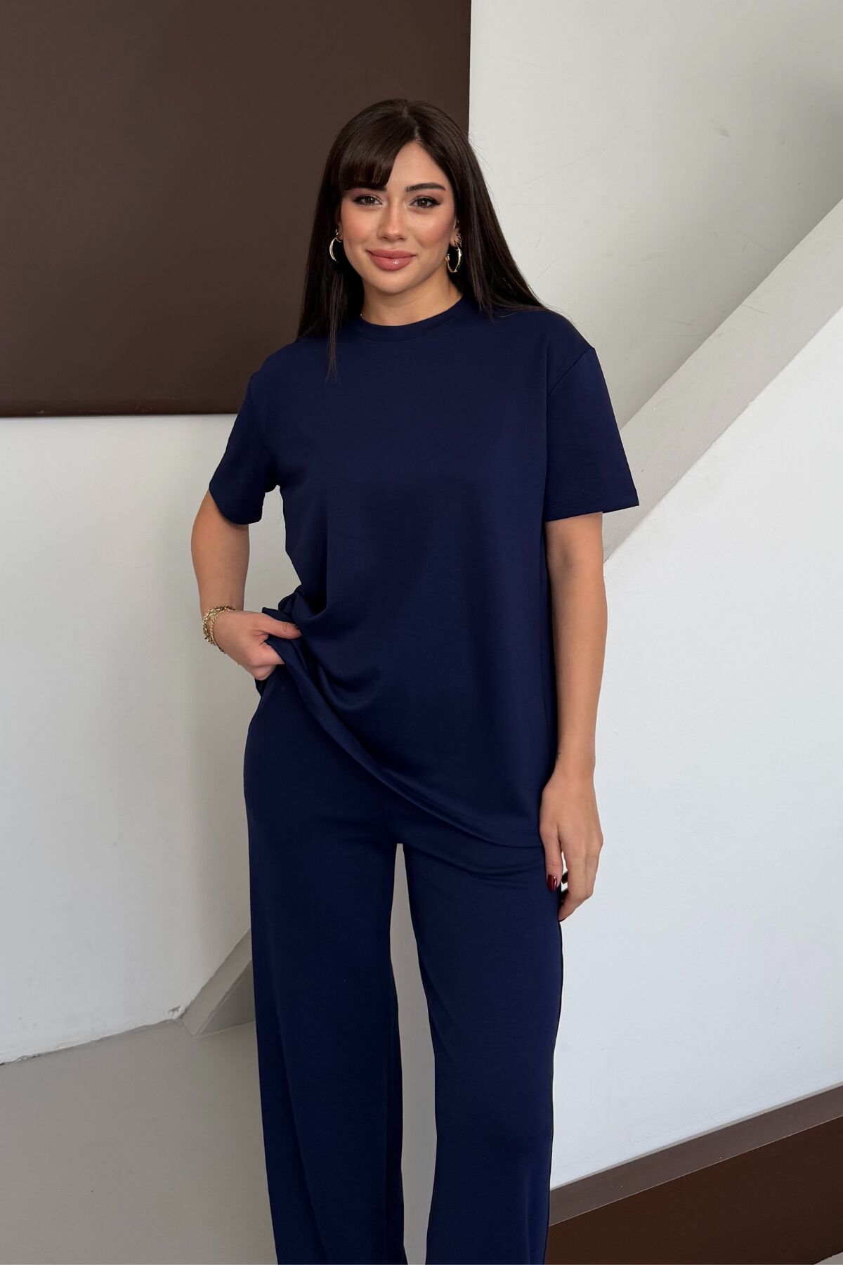 - T-shirt-eşofman alt-üst takımı olarak tasarlanmış olup, sportif şıklığa sahip kombinler yaratmanız için idealdir.