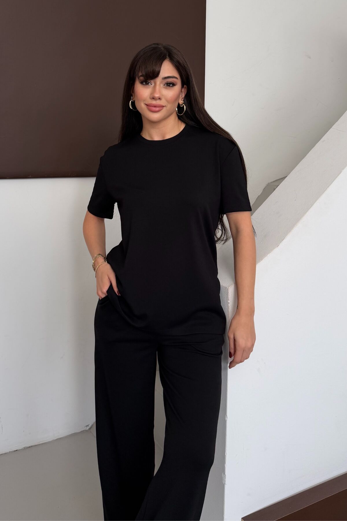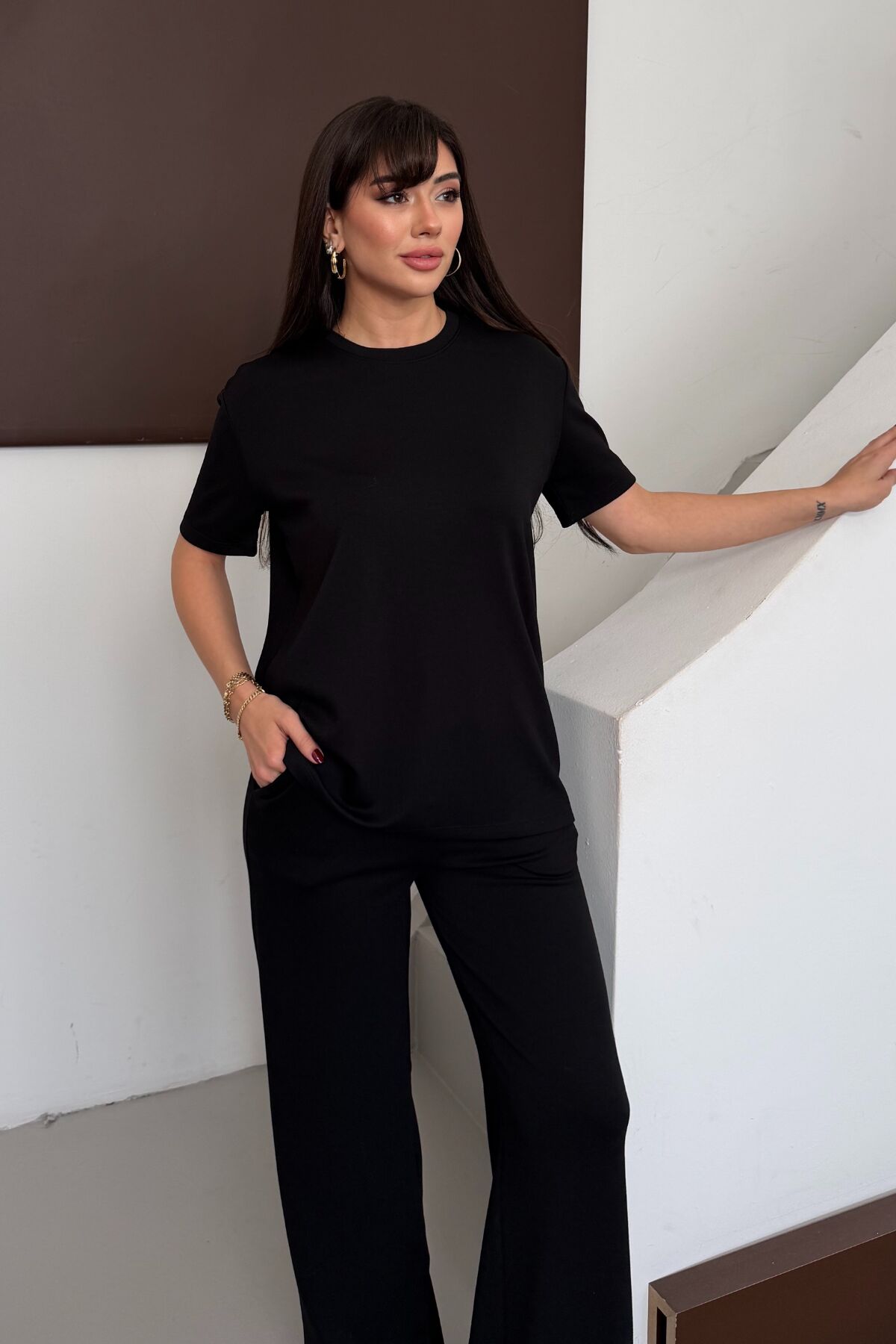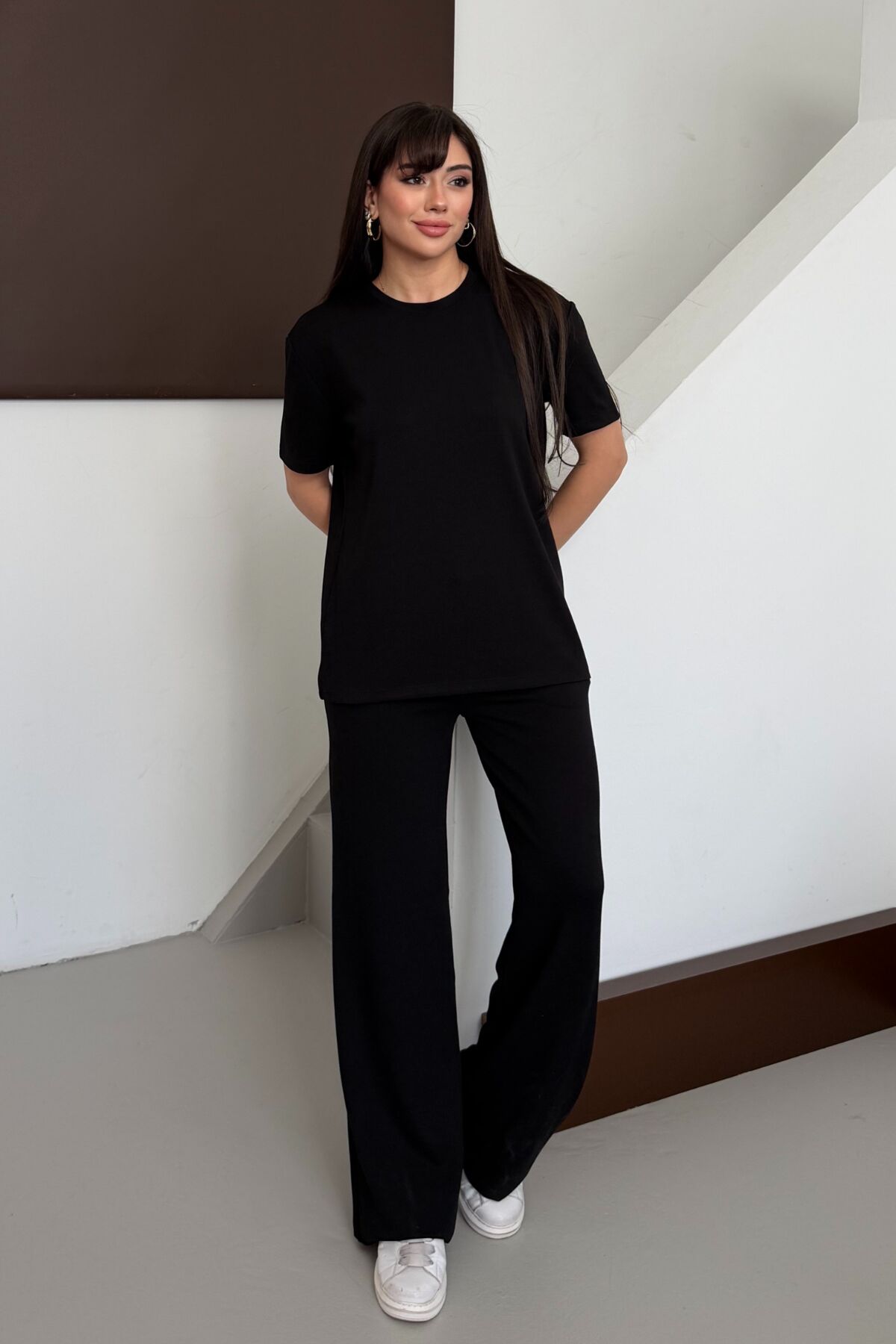 - T-shirt-eşofman alt-üst takımı olarak tasarlanmış olup, sportif şıklığa sahip kombinler yaratmanız için idealdir.