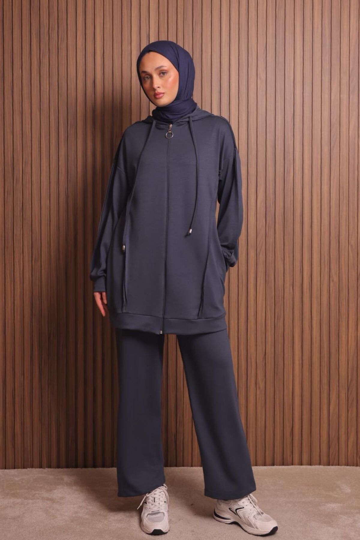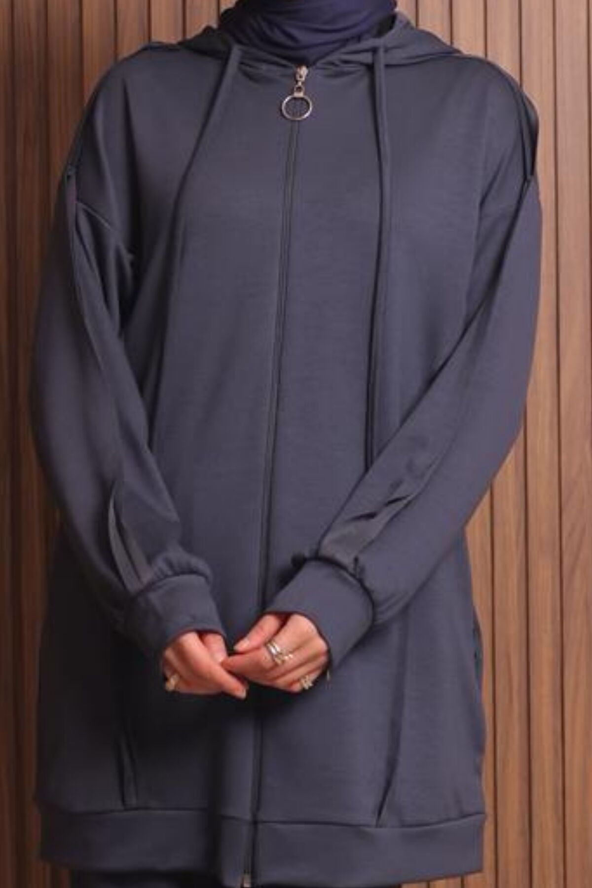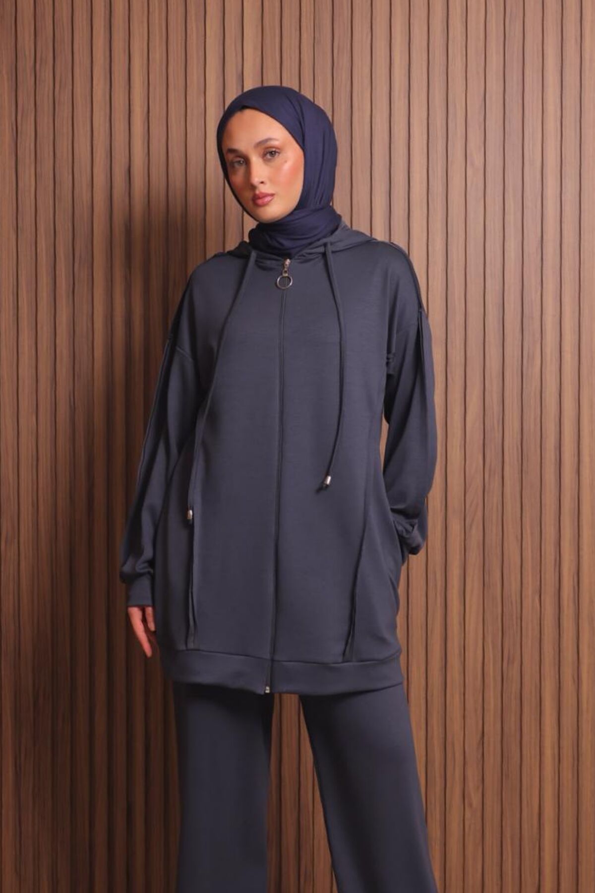 Balenbi Kadın Modal Kumaş Oversize Kapüşonlu Tesettür Takım 1132 L - Antrasit