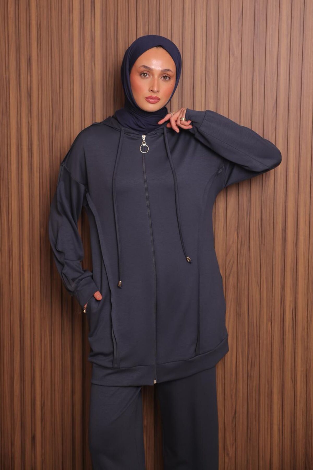 Balenbi Kadın Modal Kumaş Oversize Kapüşonlu Tesettür Takım 1132 - Rahat ve şık bir görünüm için tasarlanmış, oversize kesim tunik ve pantolonlu alt-üst takım.; - Yumuşak dokusuyla konforlu bir kullanım sunan pamuklu materyalden üretilmiştir.; - Tesettür giyim koleksiyonuna özel olarak tasarlanmış, modern ve zarif bir siluet.; - Tek parça halinde gelen bu takım, pratik kullanım sağlar ve kombin derdine son verir.; - Günlük kullanım için idealdir; evde veya dışarıda rahatlıkla tercih edilebilir.; - Standart yıkama talimatlarına uygun şekilde kolayca temizlenebilir.; - Tesettür giyim trendlerine uygun, modern kesimiyle dikkat çeker.;