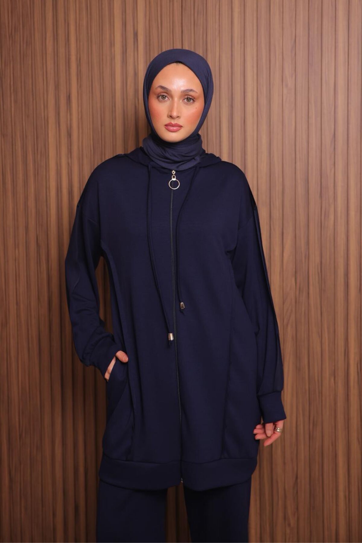 Balenbi Kadın Modal Kumaş Oversize Kapüşonlu Tesettür Takım 1132 M - Lacivert
