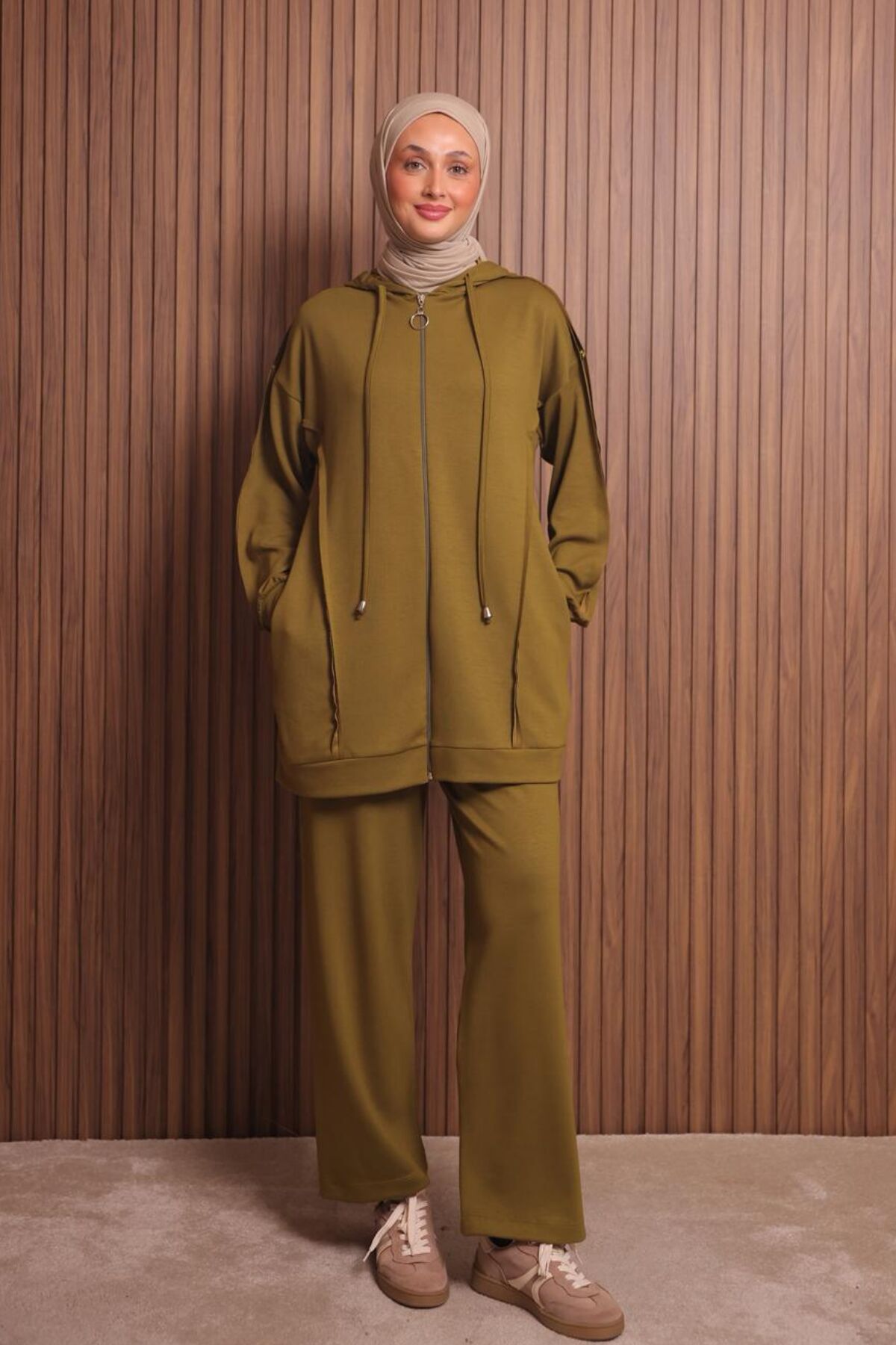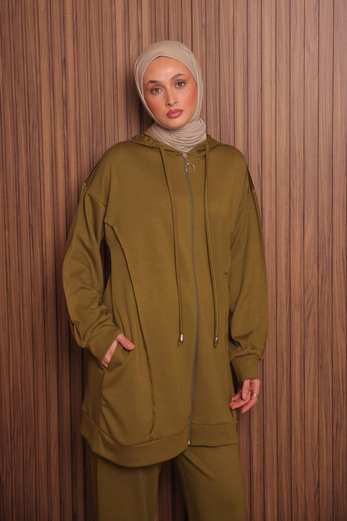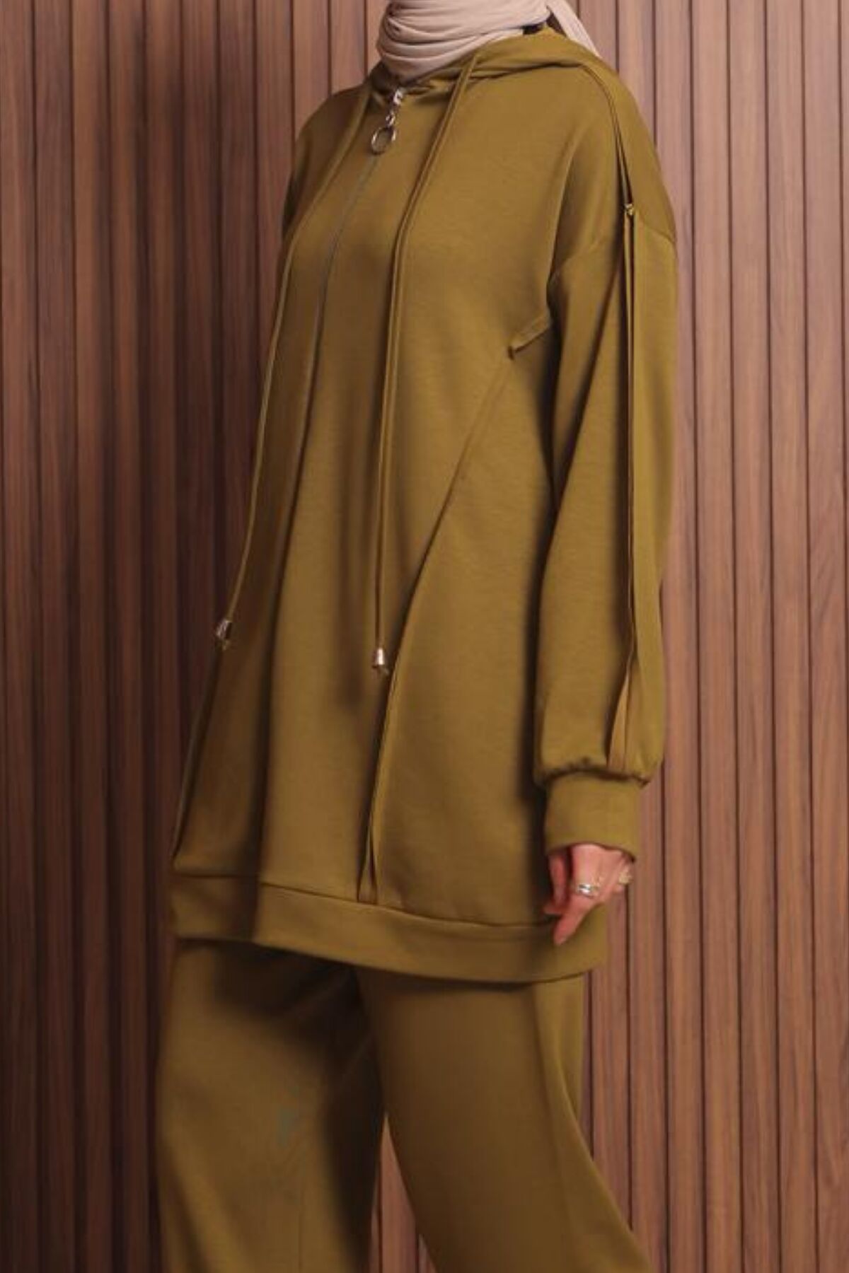 Balenbi Kadın Modal Kumaş Oversize Kapüşonlu Tesettür Takım 1132 XL - Oliv