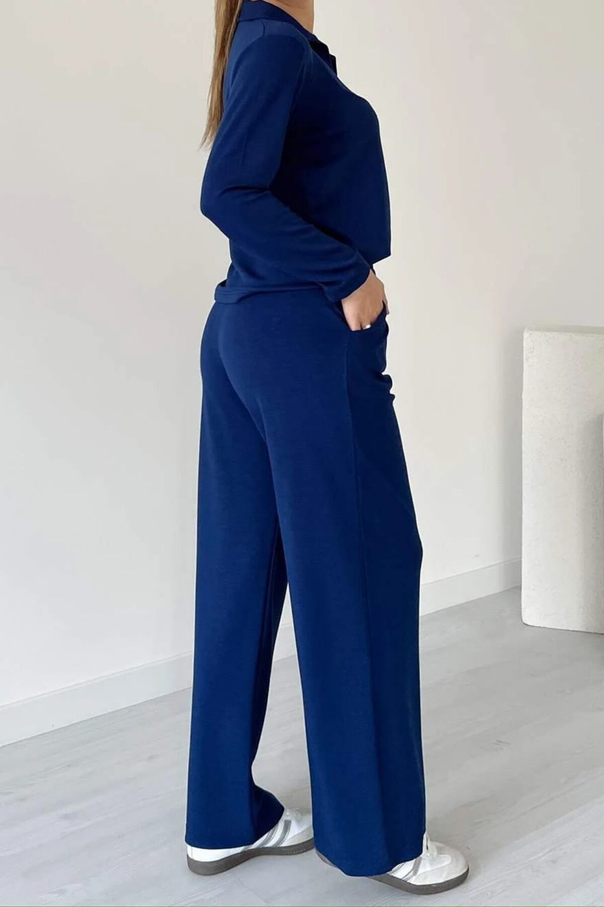 Balenbi Kadın Modal Kumaş Polo Yaka Uzun Kollu Takım 1126 S - Lacivert