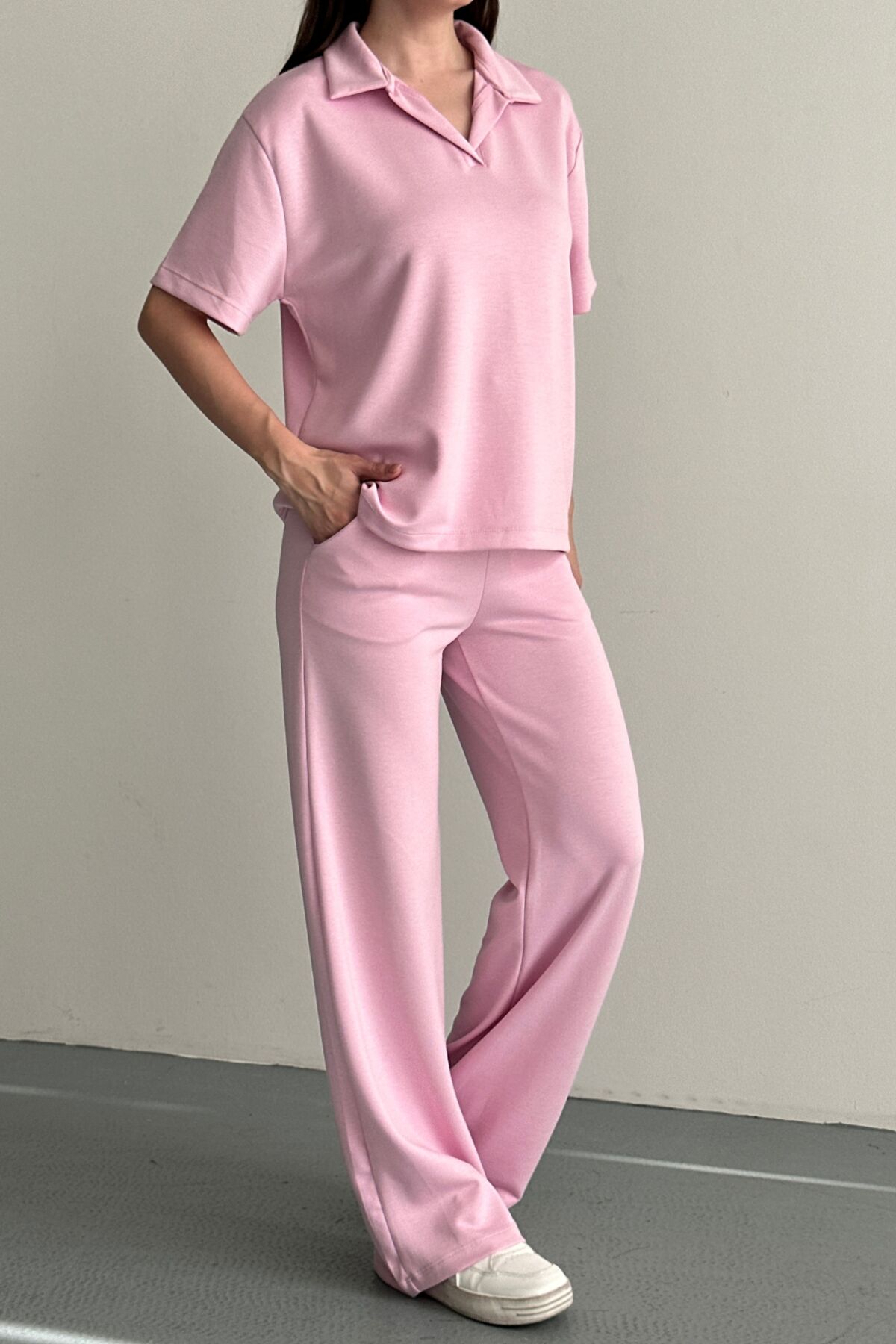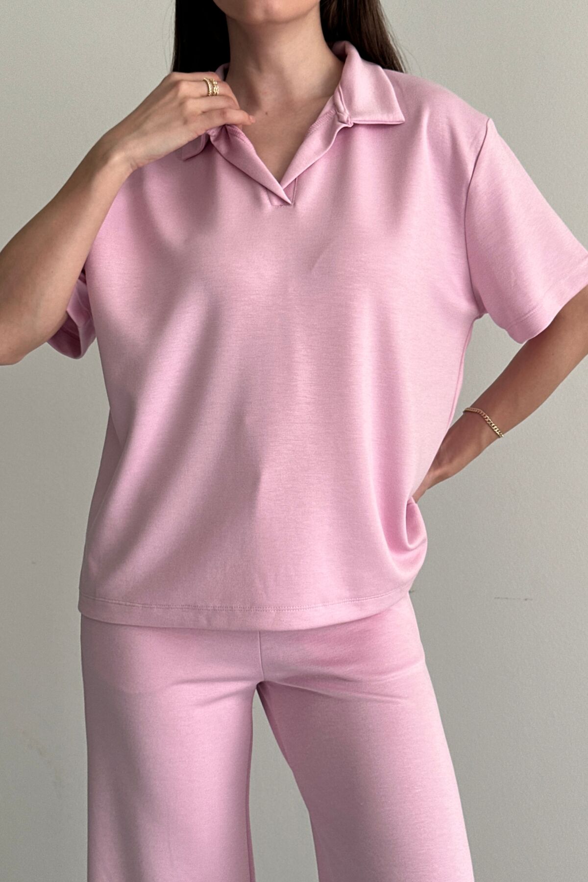 Balenbi Kadın Modal Kumaş Yarım Kollu Polo Yaka Eşofman Takımı 1210 S - Pembe