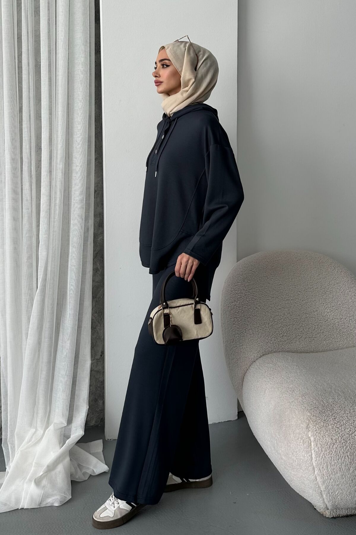 Balenbi Kadın Modal Penye Oversize Kapüşonlu Tesettür Tunik Takım 1108 - Rahatlık ve şıklığı bir arada sunan oversize kapüşonlu tunik takım, günlük kullanım için idealdir.; - Cep detayları ile fonksiyonel bir tasarım sunarken, çift cepli yapısı pratik eşyalarınız için kolay erişim sağlar.; - Orta kalınlıkta modal penye kumaşı sayesinde mevsim geçişlerinde konforlu bir deneyim yaşatır.; - Kapüşonlu yaka tipi ile hem stil sahibi görünmenizi hem de soğuktan korunmanızı sağlar.; - Full fermuar kapama özelliğiyle kolayca giyilip çıkartılabilir; pratik kullanım sunar.; - Bel kısmındaki lastik detayı sayesinde rahat bir oturuşa sahip olup vücut hatlarınıza uyum sağlar.; - İki parçadan oluşan set içeriğiyle bütünsel bir kombin imkanı tanır; tunik-pantolon ikilisiyle tamamlanan bu takım, casual ortamlarda şıklığınızı korumanızda yardımcı olur.; - Sürdürülebilirlik açısından dikkat çekmese de, dayanıklı malzemelerden üretilmiştir; uzun süreli kullanım vaad eder.; - Baskısız deseniyle sade ve zamansız bir tarz sergilerken, düz renk seçeneğiyle farklı aksesuarlarla kolayca kombinlenebilir.; - Her sezon tercih edebileceğiniz bu tunik takımı, geniş paça pantolonuyla modern bir siluet oluşturur.; - Yıkama talimatlarına uygun şekilde bakımı yapıldığında formunu koruyarak ilk günkü gibi kalacaktır.;
