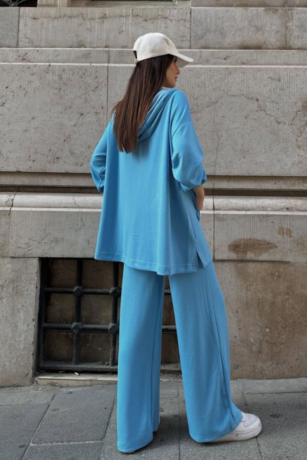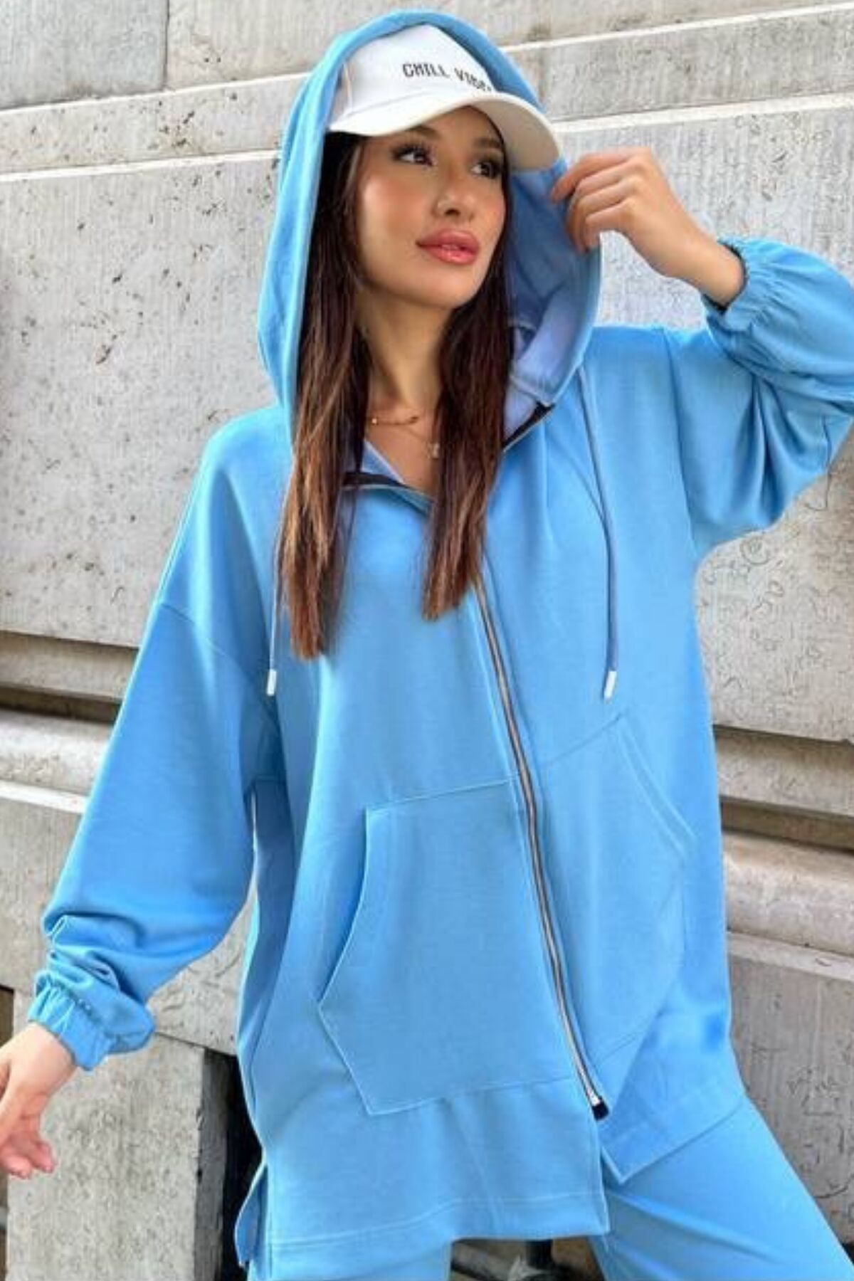 Balenbi Kadın Modal Penye Oversize Kapüşonlu Tesettür Tunik Takım 1108 S - Mavi