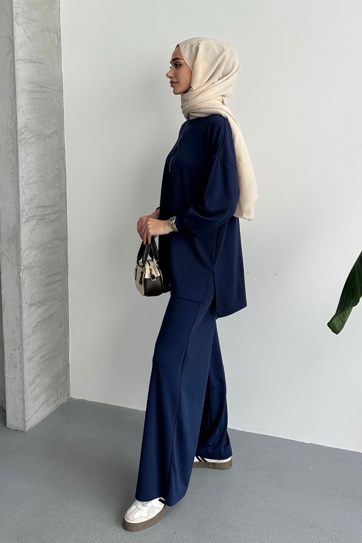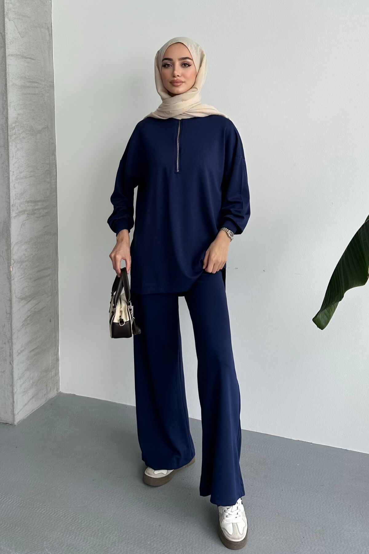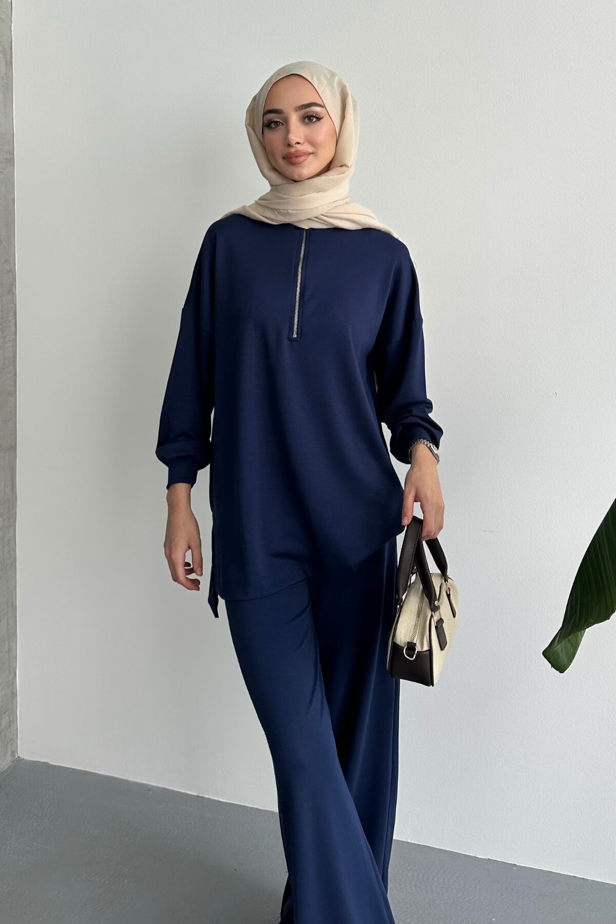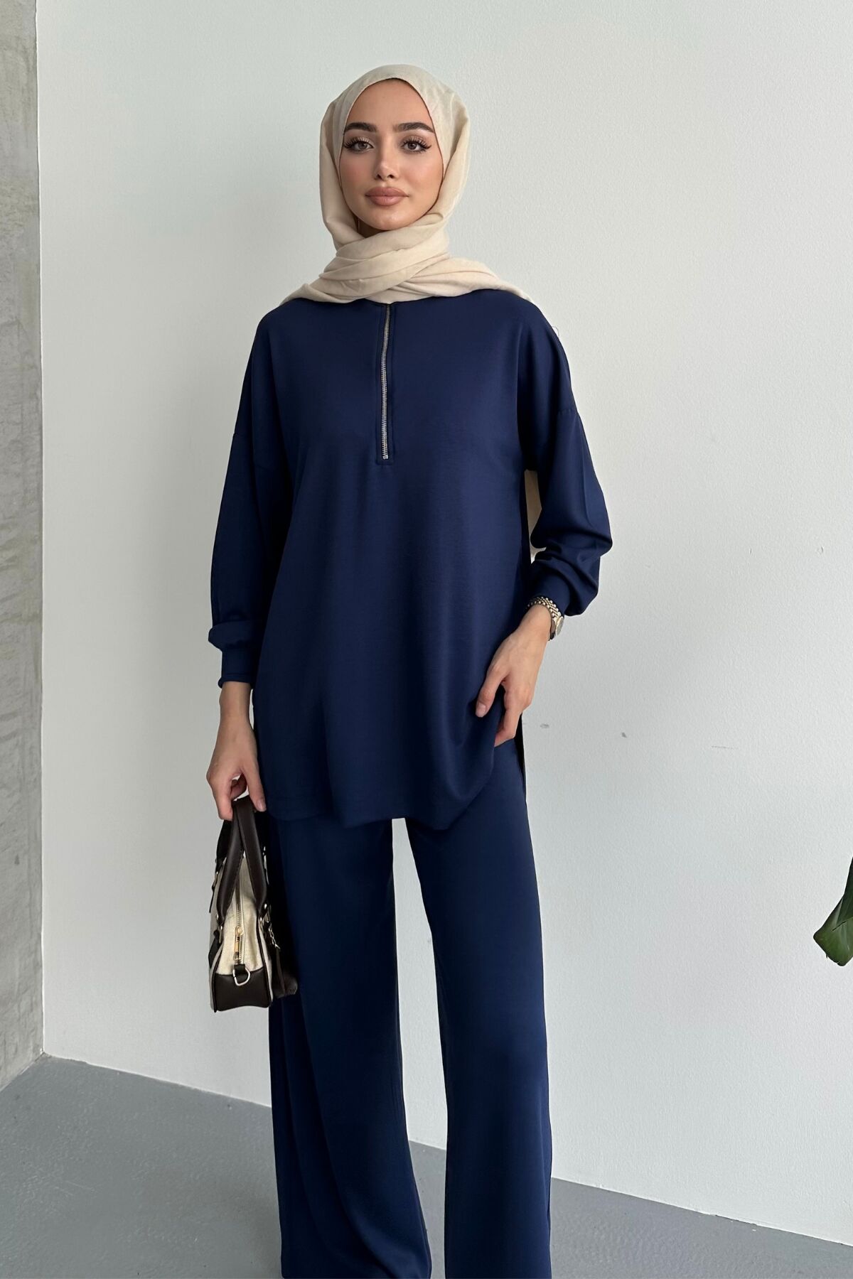 Balenbi Kadın Modal Oversize Metal Fermuar Tesettür Tunik Takım 1117 S - Lacivert