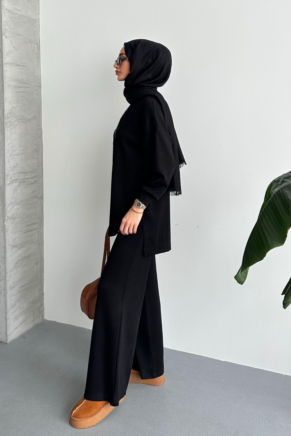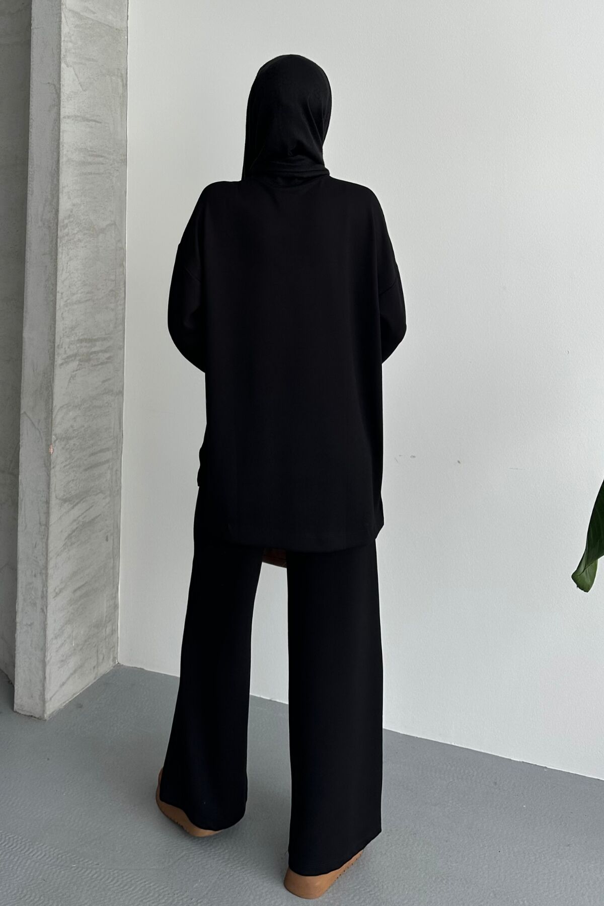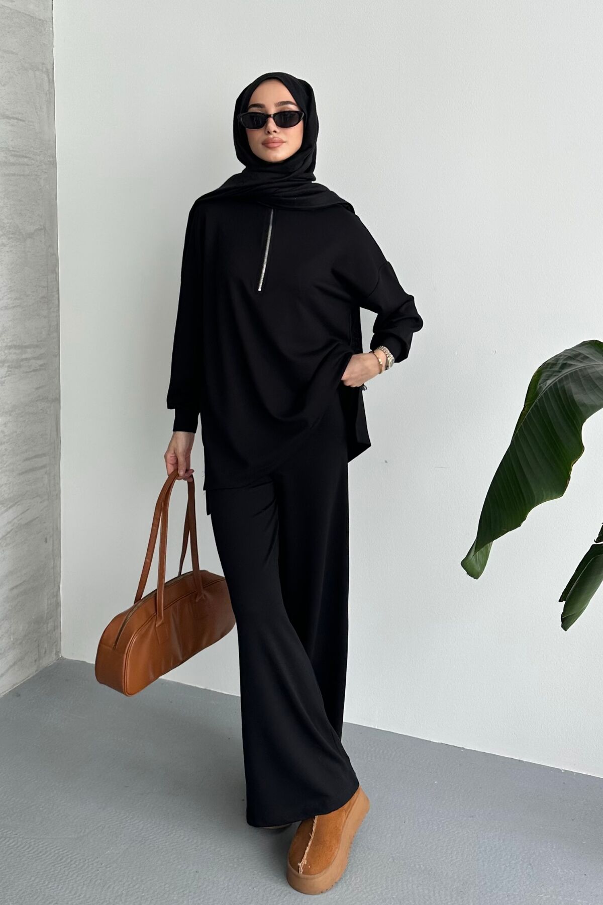 Balenbi Kadın Modal Penye Oversize Metal Fermuar Tesettür Tunik Takım 1117