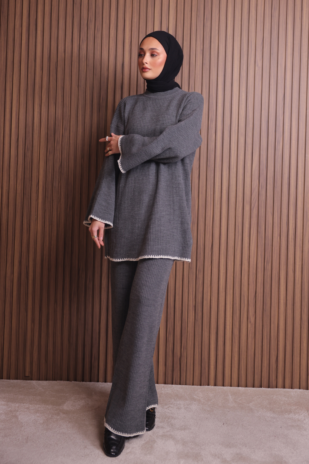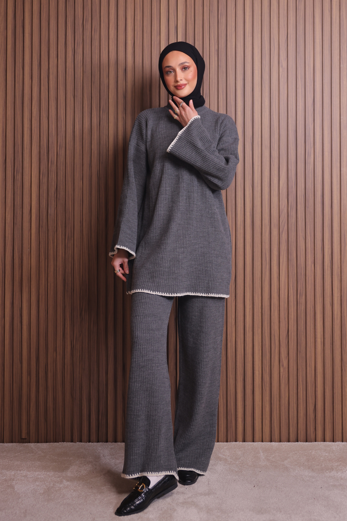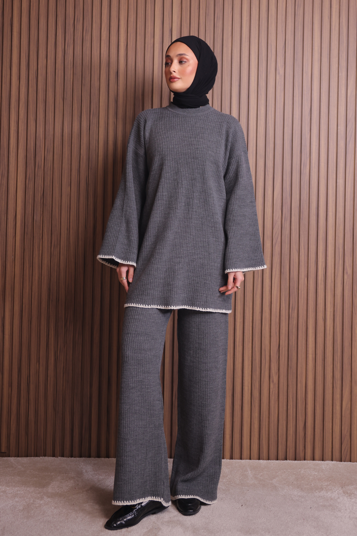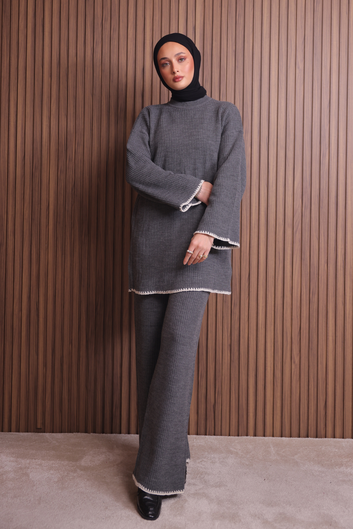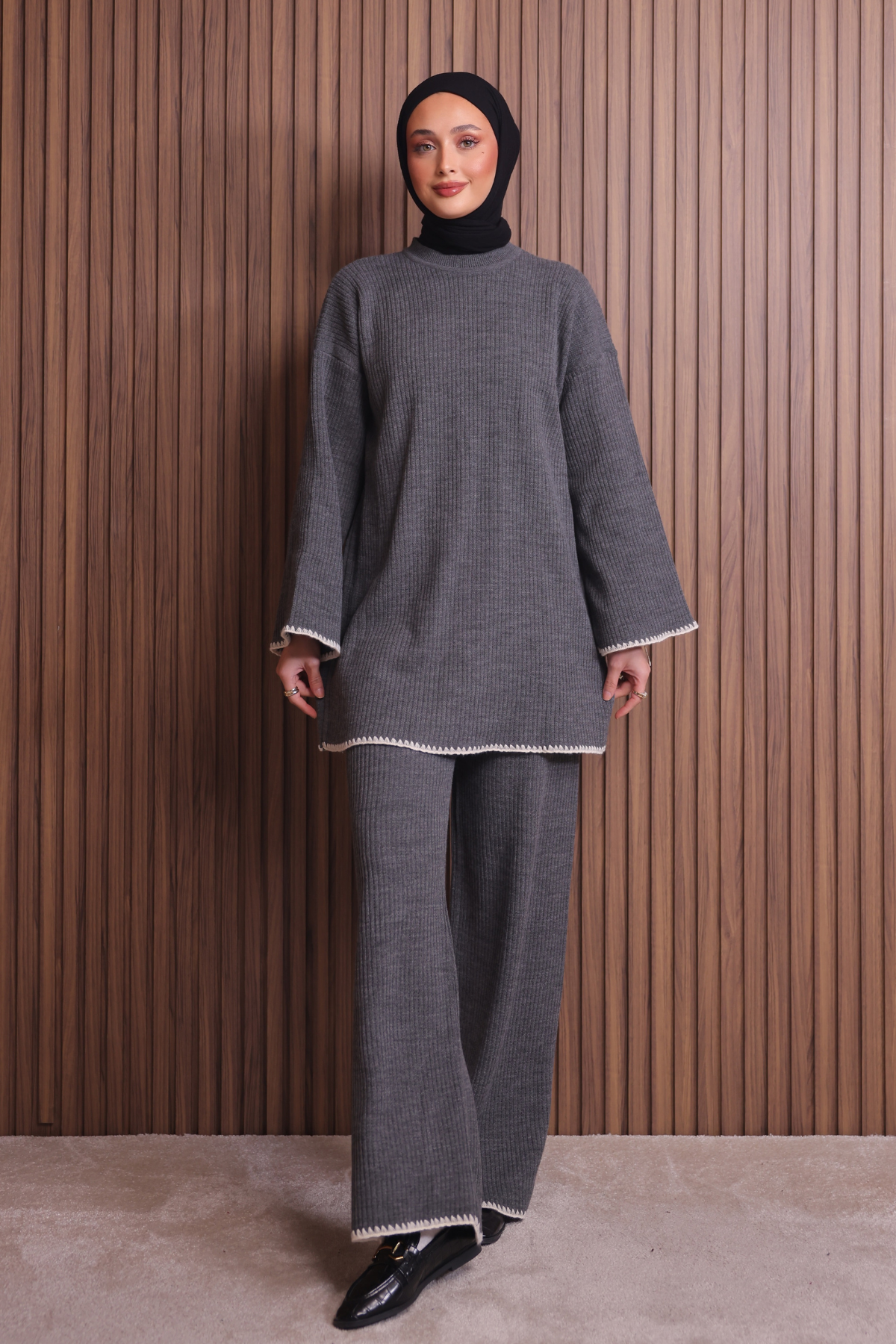 Balenbi Kadın Oversize Ribana Örgü İspanyol Kol Tesettür Triko Takım 1147