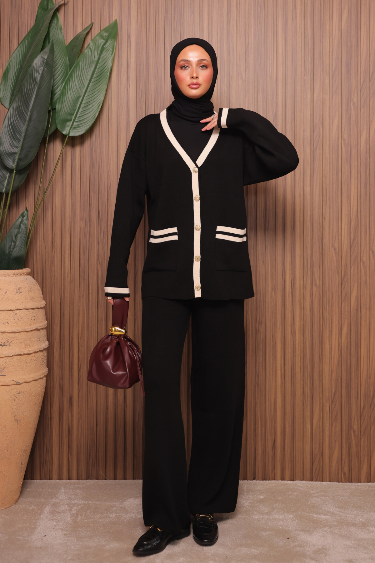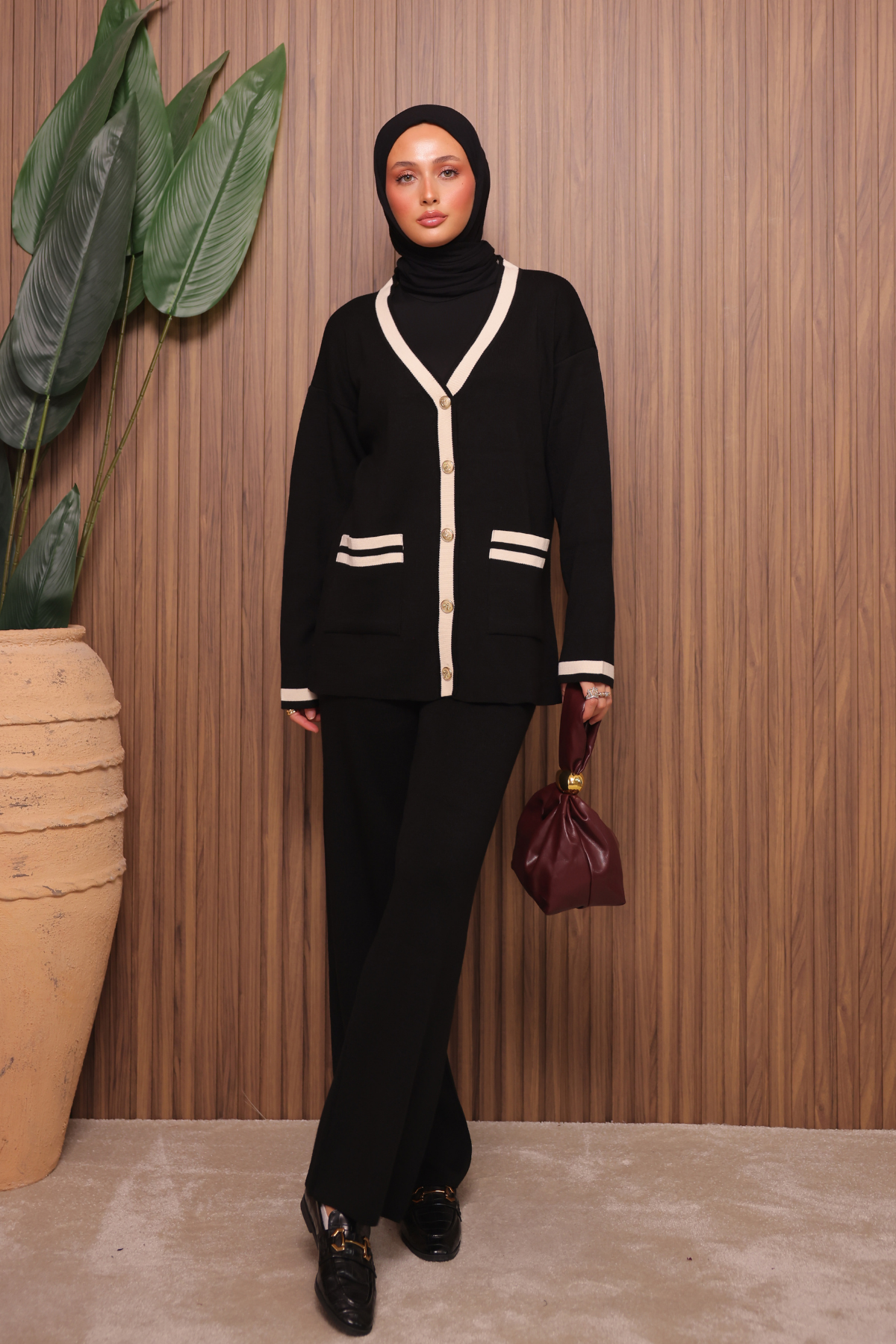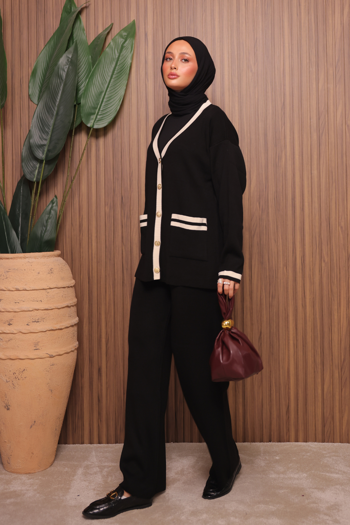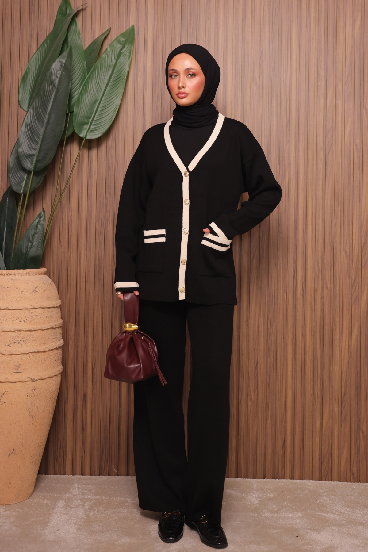 Balenbi Kadın Oversize Sık Örgü V Yaka Hırkalı Tesettür Triko Takım 1148