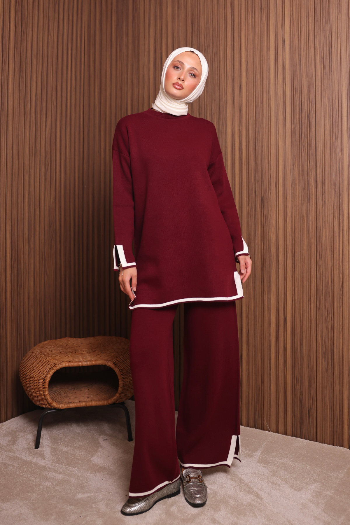 Balenbi Kadın Oversize Sık Örgü Yırtmaçlı Tesettür Triko Takım 1146 Standart - Bordo